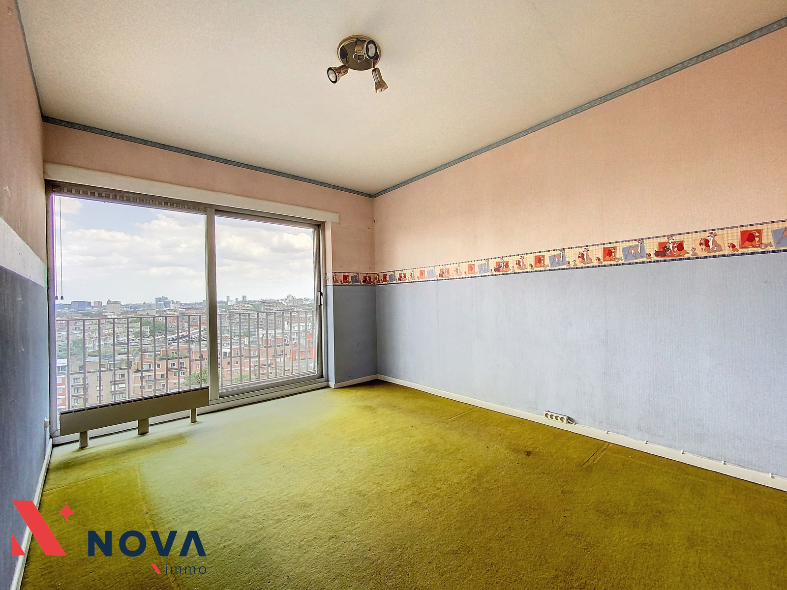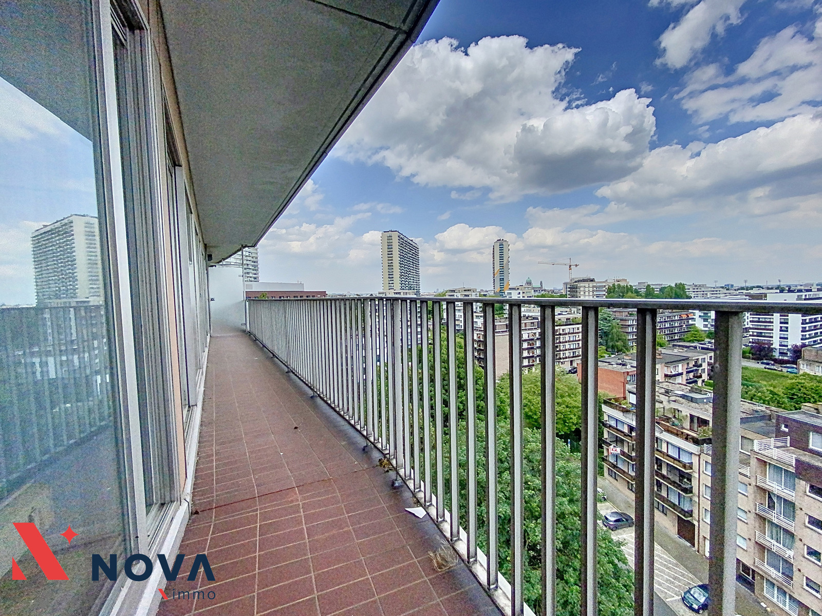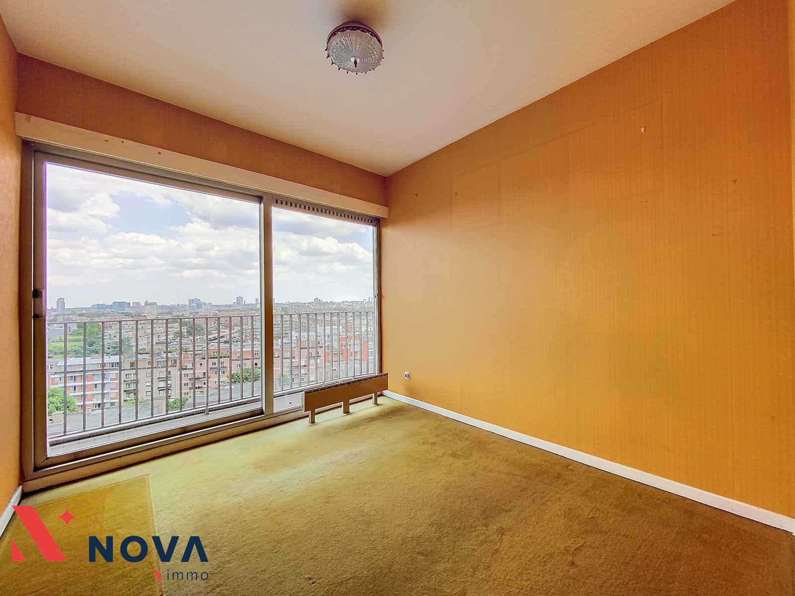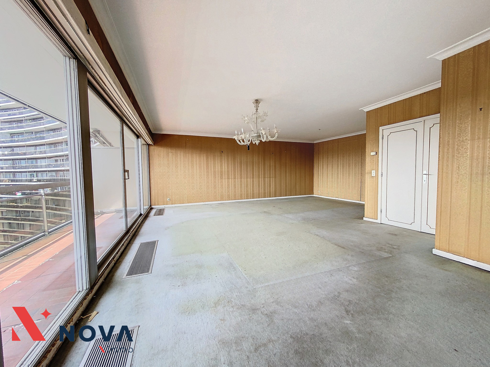 Visualisez ce bien en vidéo https://youtu.be/xiQqFGrAmWU. Situé au 9ème étage de la résidence Arc en Ciel, magnifique penthouse à rénover avec près de 80 m² de terrasse offrant une vue imprenable sur la ville de Bruxelles. Il se compose d’un hall d’entrée avec placards et wc, d’un lumineux séjour de 50 m² avec grandes baies donnant accès à la terrasse, une cuisine non équipée de 12m², un bureau de 16 m² avec entrée séparée par porte blindée pouvant servir pour une profession libérale (2 entrées distinctes), hall de nuit vers 4 chambres dont la plus grande dispose de sa propre salle de bains (14,12, 9 et 8 m²) ainsi qu’une salle de douche. Au sous sol : cave et possibilité d’acquérir un garage pour deux voitures(en plus du prix). Faire offre à partir de 275.000€ (garage en option). PEB G. Plus d’infos et visites au 067/85.67.67.