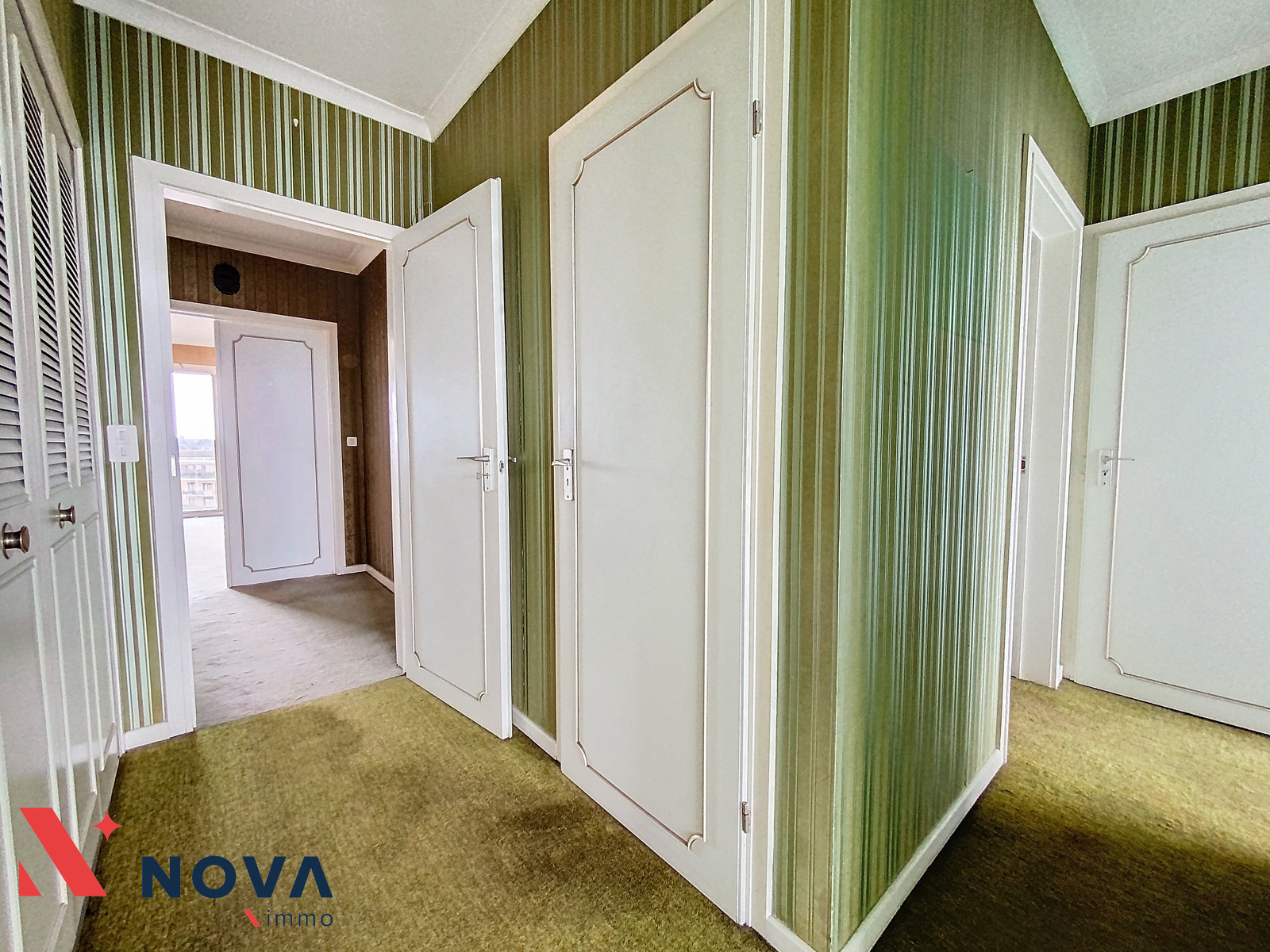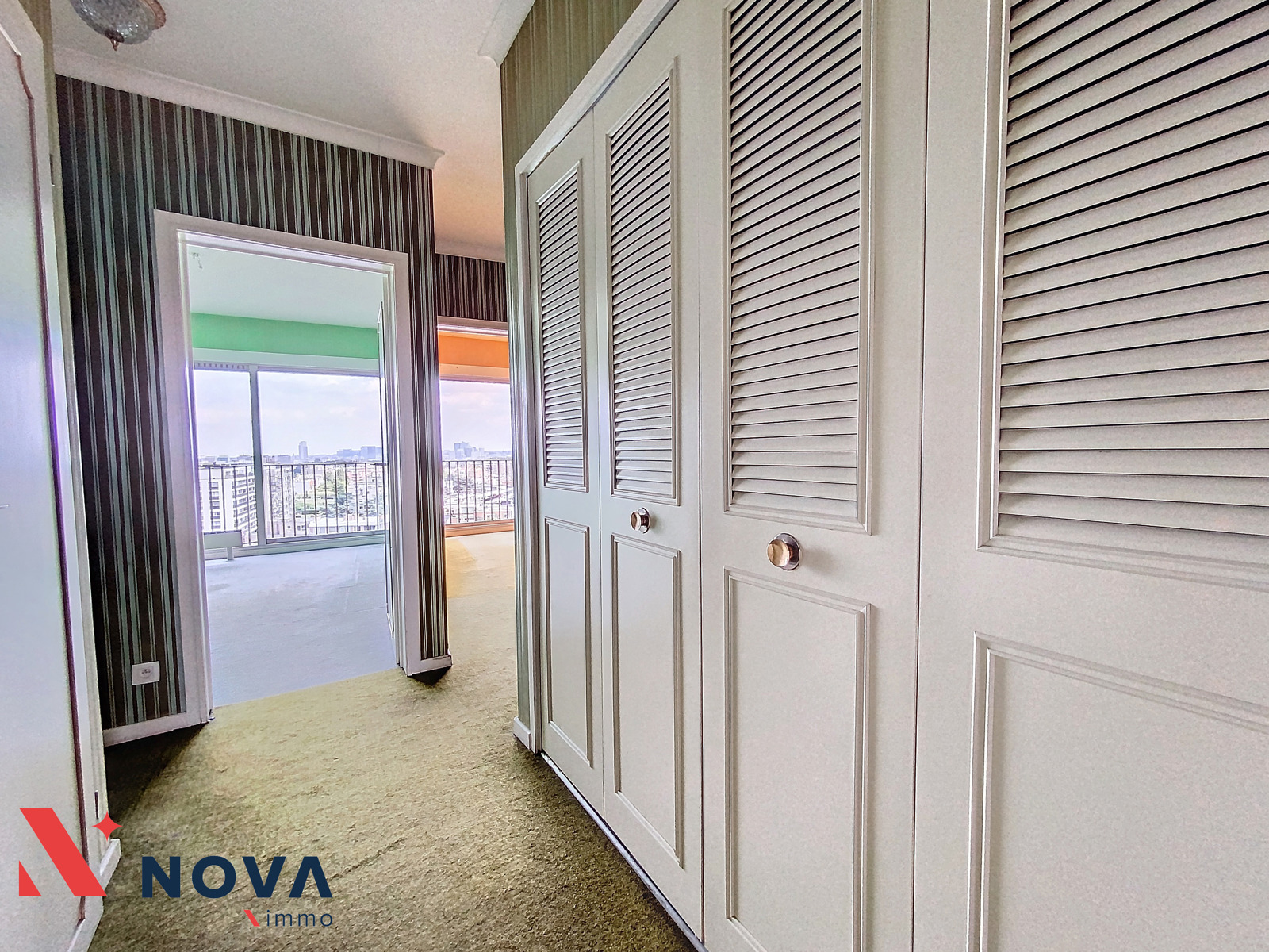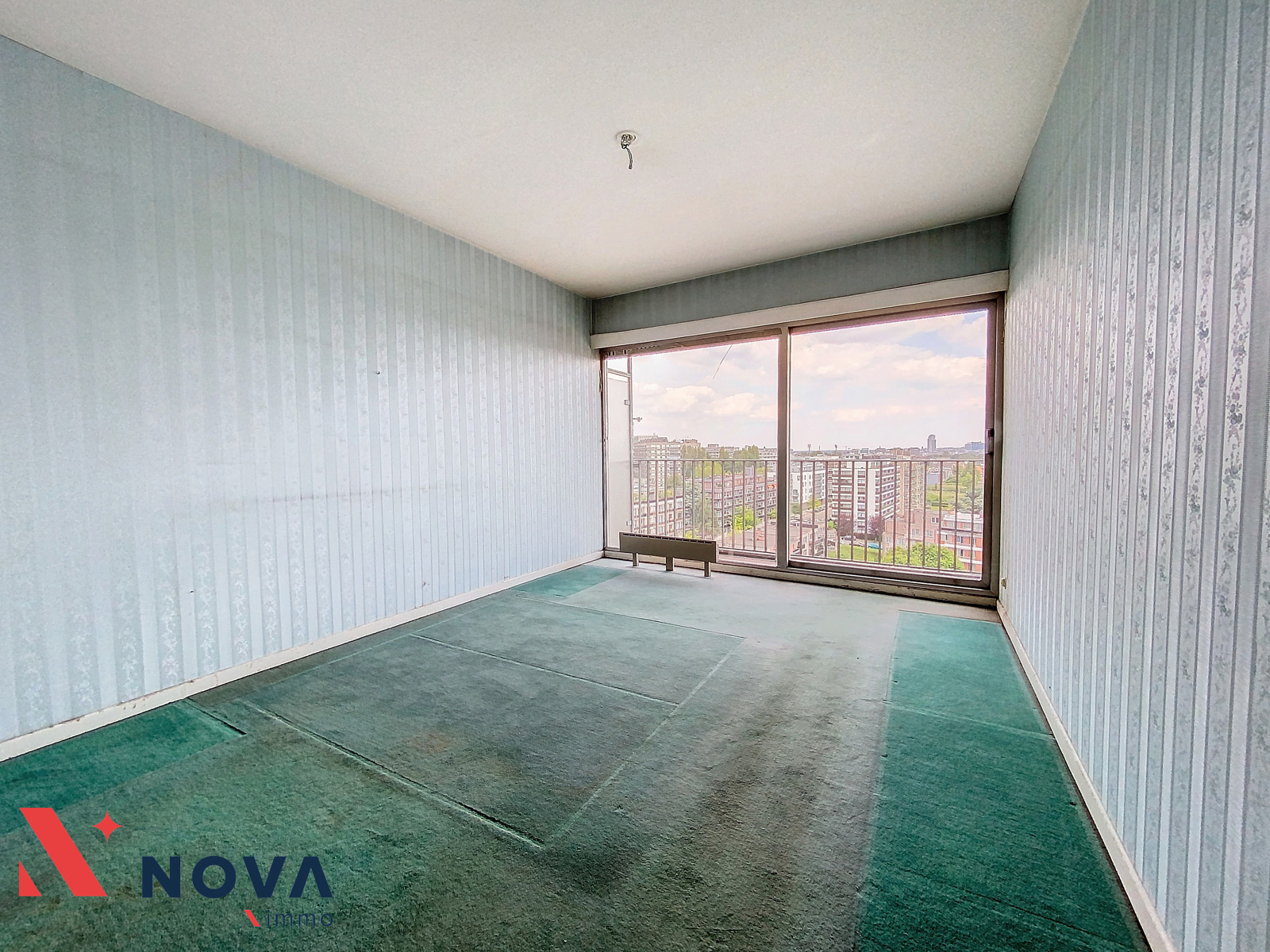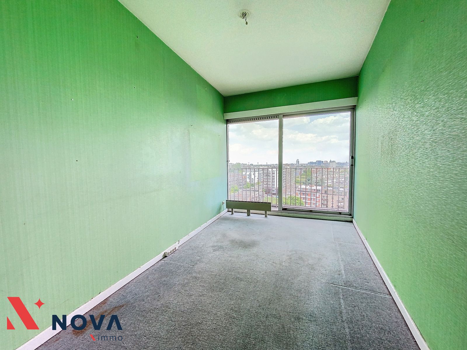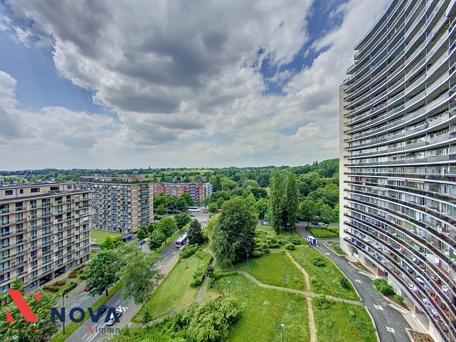 Visualisez ce bien en vidéo https://youtu.be/xiQqFGrAmWU. Situé au 9ème étage de la résidence Arc en Ciel, magnifique penthouse à rénover avec près de 80 m² de terrasse offrant une vue imprenable sur la ville de Bruxelles. Il se compose d’un hall d’entrée avec placards et wc, d’un lumineux séjour de 50 m² avec grandes baies donnant accès à la terrasse, une cuisine non équipée de 12m², un bureau de 16 m² avec entrée séparée par porte blindée pouvant servir pour une profession libérale (2 entrées distinctes), hall de nuit vers 4 chambres dont la plus grande dispose de sa propre salle de bains (14,12, 9 et 8 m²) ainsi qu’une salle de douche. Au sous sol : cave et possibilité d’acquérir un garage pour deux voitures(en plus du prix). Faire offre à partir de 275.000€ (garage en option). PEB G. Plus d’infos et visites au 067/85.67.67.