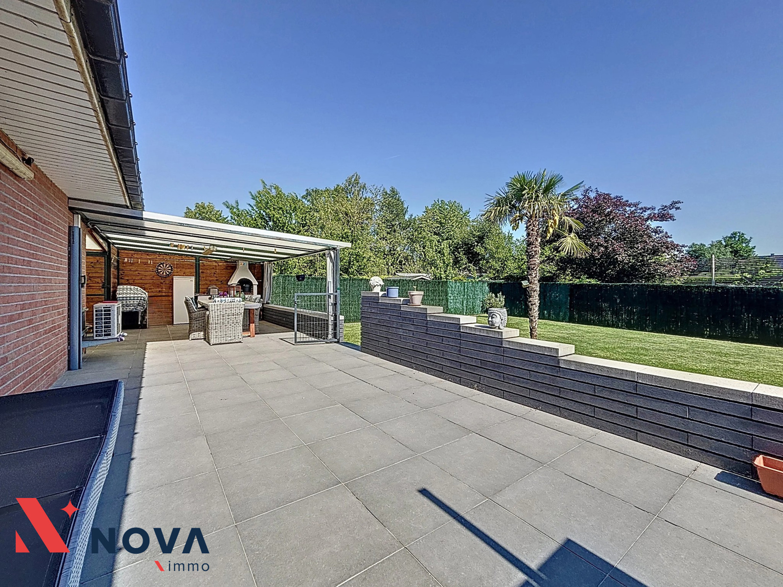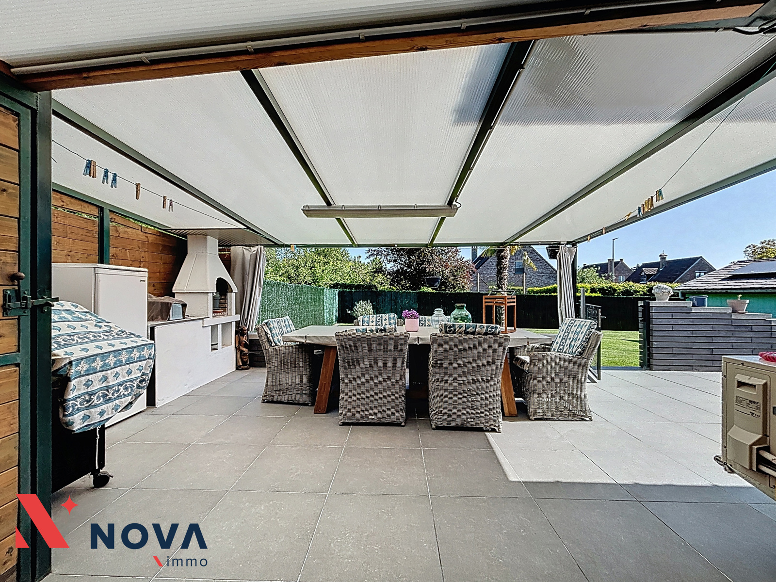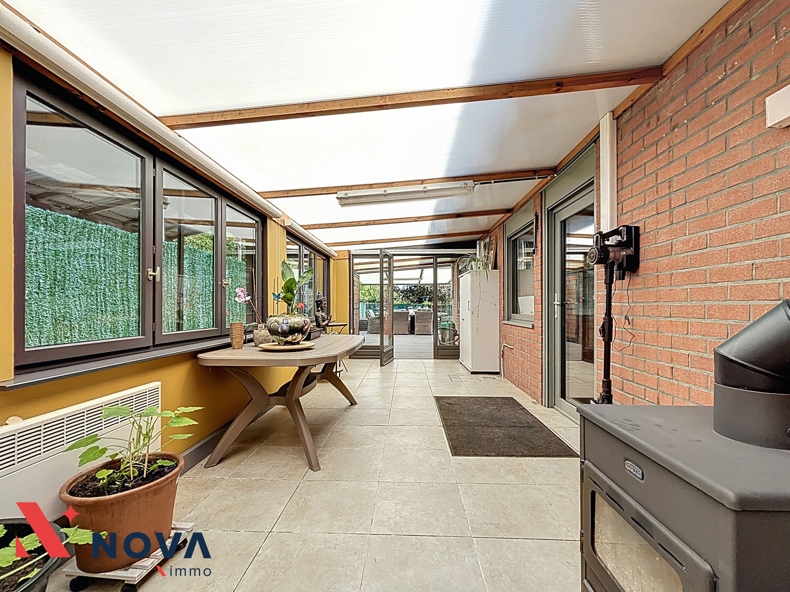 Située dans un quartier résidentiel très apprécié, au cœur du joli village de Saintes. Nova-Immo vous propose cette belle villa de plein pied sur plus de 8 ares offrant 3 chambres, une grande terrasse, un magnifique jardin et un garage avec parking privatif. Elle se compose d’un hall d’entrée avec Wc, lumineux séjour de 36m² avec grandes baies vitrées et feu à pellet, cuisine équipée ouverte de 10m², jolie véranda de 23m² donnant accès à la terrasse et au jardin. 3 chambres (11,8 et 8m²), une salle de douche, cellier, chaufferie, grenier de rangement. Double vitrage Pvc (2018) équipés de volets électriques. Electricité conforme. 15 panneaux solaires (faible consommation électrique). PEB C (215Kwh/m²/an). Vidéosurveillance. Prix: 399.000€. Plus d’infos et visites au 067/85.67.67.