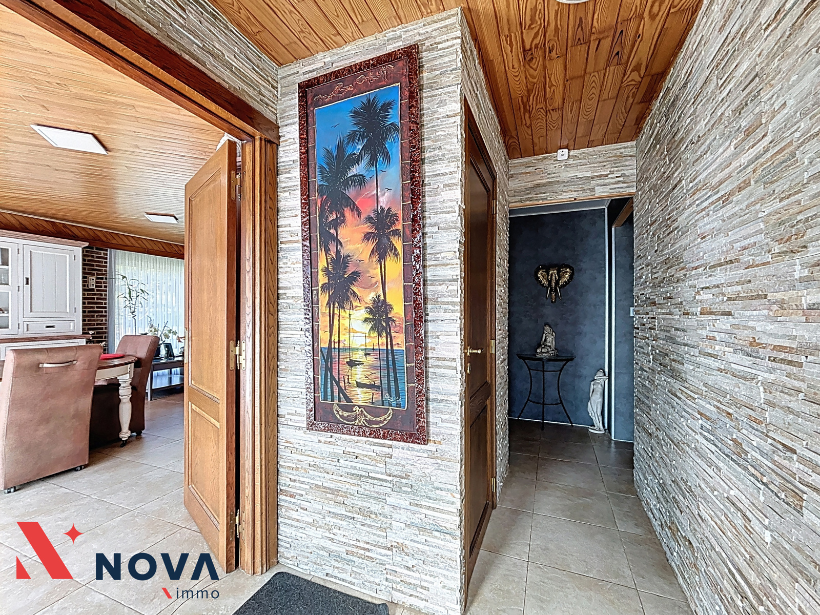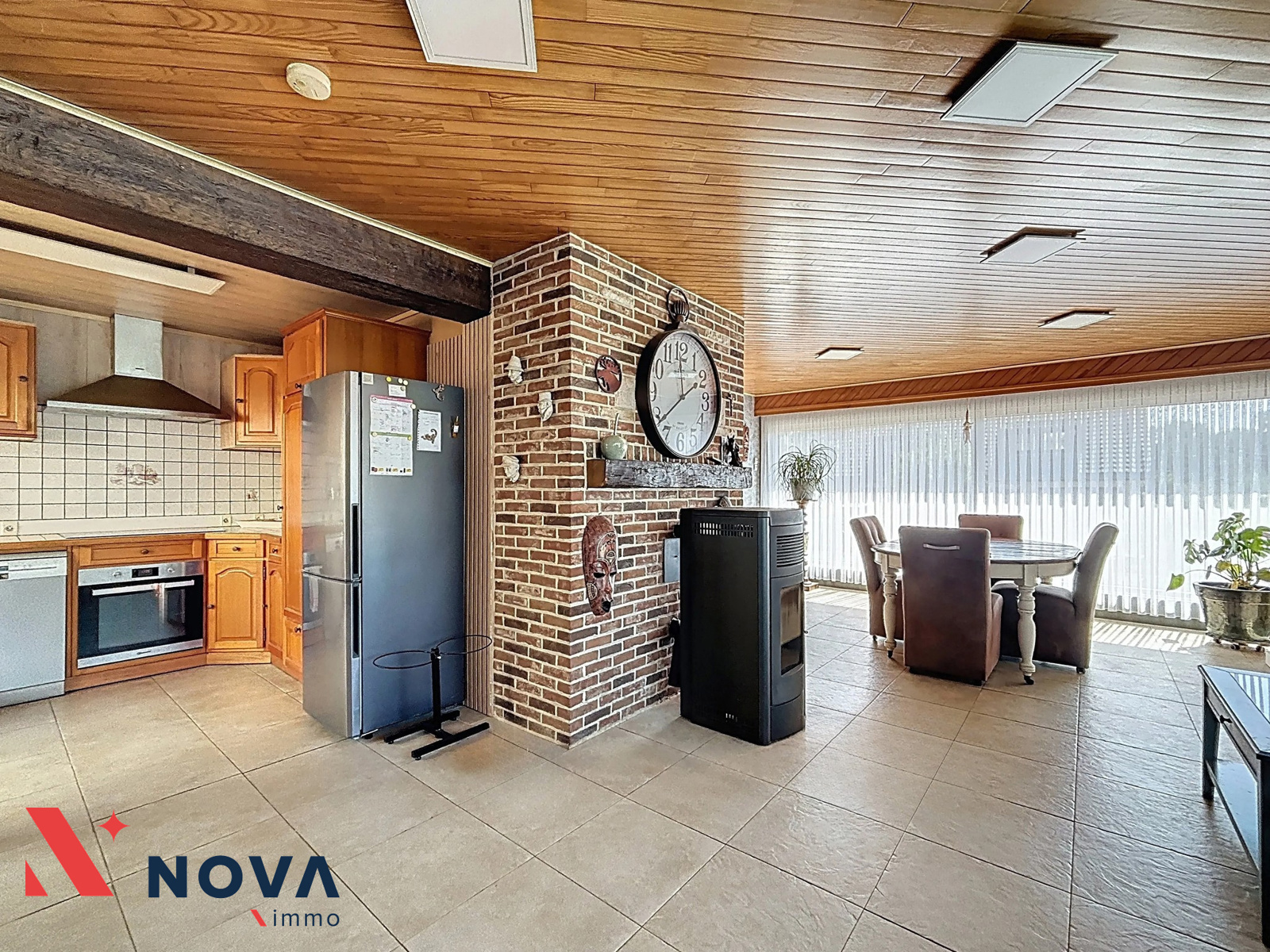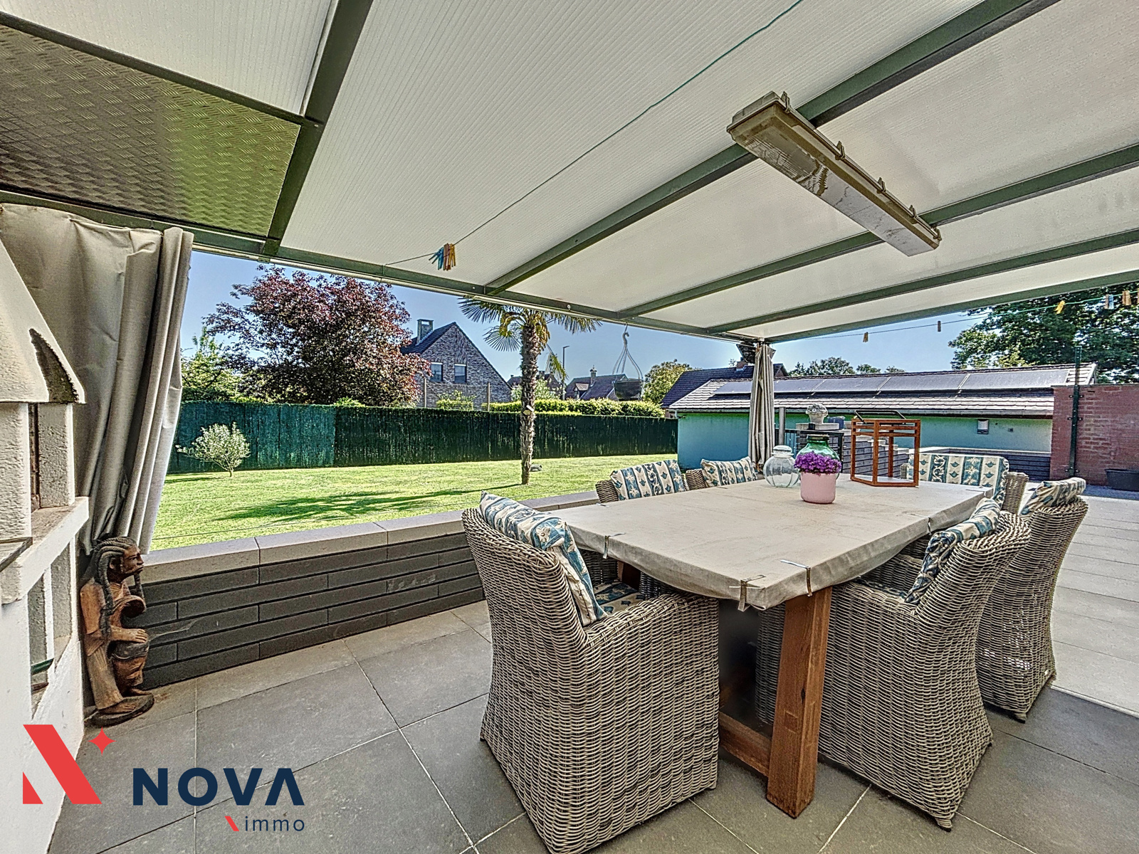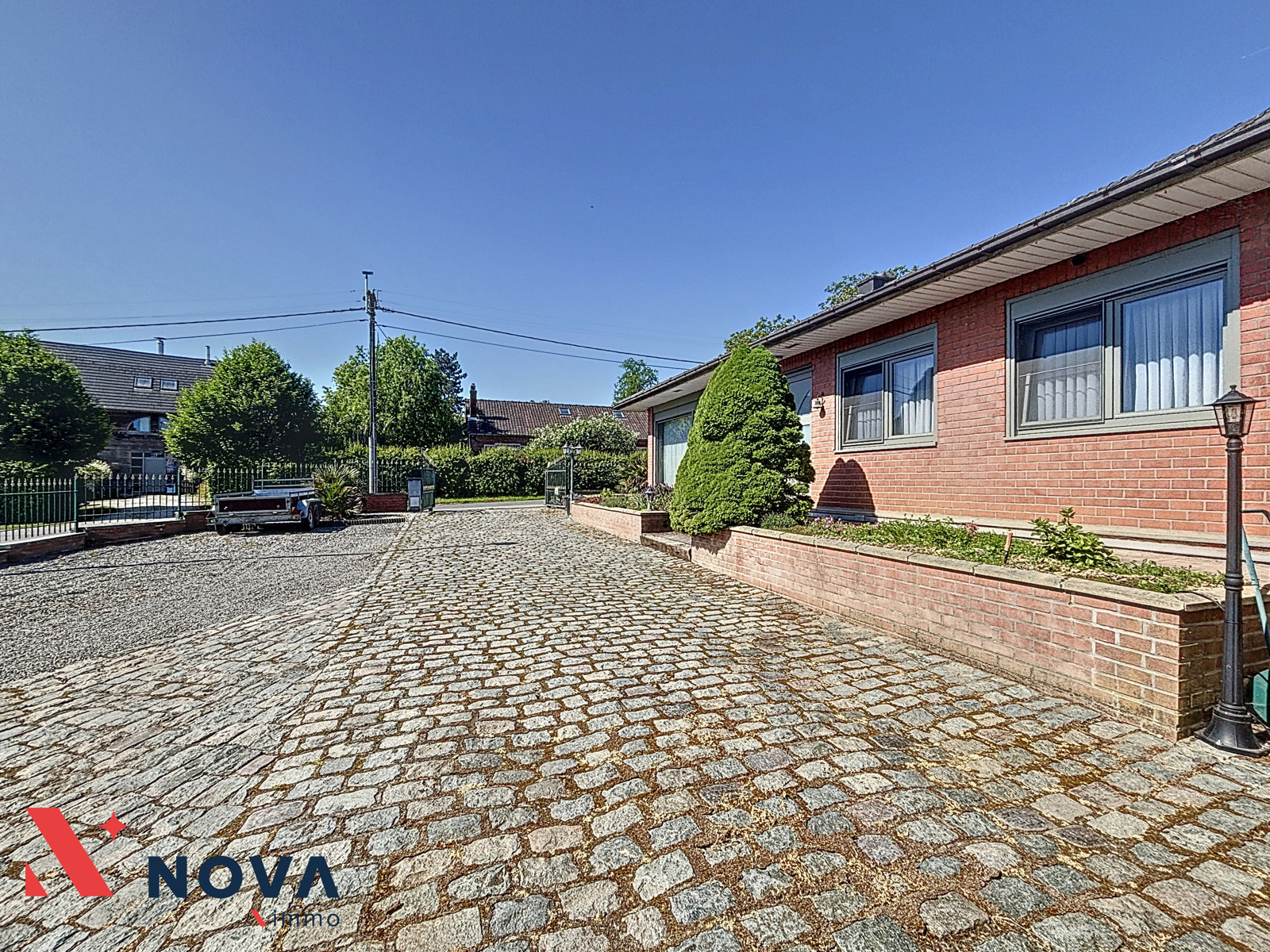 Située dans un quartier résidentiel très apprécié, au cœur du joli village de Saintes. Nova-Immo vous propose cette belle villa de plein pied sur plus de 8 ares offrant 3 chambres, une grande terrasse, un magnifique jardin et un garage avec parking privatif. Elle se compose d’un hall d’entrée avec Wc, lumineux séjour de 36m² avec grandes baies vitrées et feu à pellet, cuisine équipée ouverte de 10m², jolie véranda de 23m² donnant accès à la terrasse et au jardin. 3 chambres (11,8 et 8m²), une salle de douche, cellier, chaufferie, grenier de rangement. Double vitrage Pvc (2018) équipés de volets électriques. Electricité conforme. 15 panneaux solaires (faible consommation électrique). PEB C (215Kwh/m²/an). Vidéosurveillance. Prix: 399.000€. Plus d’infos et visites au 067/85.67.67.
