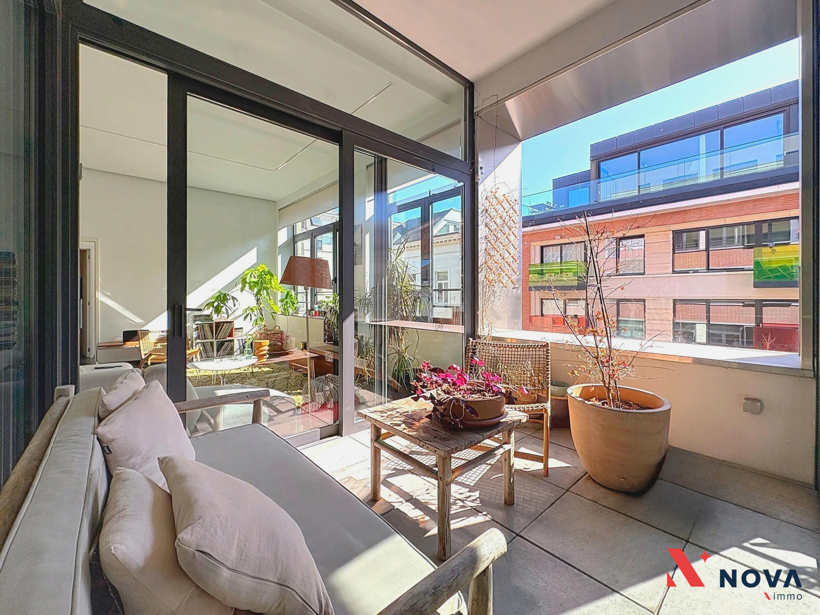 Dès l’entrée, un spacieux hall dessert une première chambre de ± 15 m² avec sa salle de douche privative. Le vaste séjour de ± 75 m², sublimé par une belle hauteur sous plafond (3,5m) et de grandes baies vitrées, bénéficie d’une lumière naturelle exceptionnelle. La cuisine américaine ouverte, entièrement équipée d’électroménagers haut de gamme prolonge cet espace. La seconde chambre de ± 16 m², dispose également d’une salle de bain attenante. L’atout indéniable de cet appartement : un magnifique patio intérieur, véritable extension naturelle du séjour créant une continuité élégante entre intérieur et extérieur.