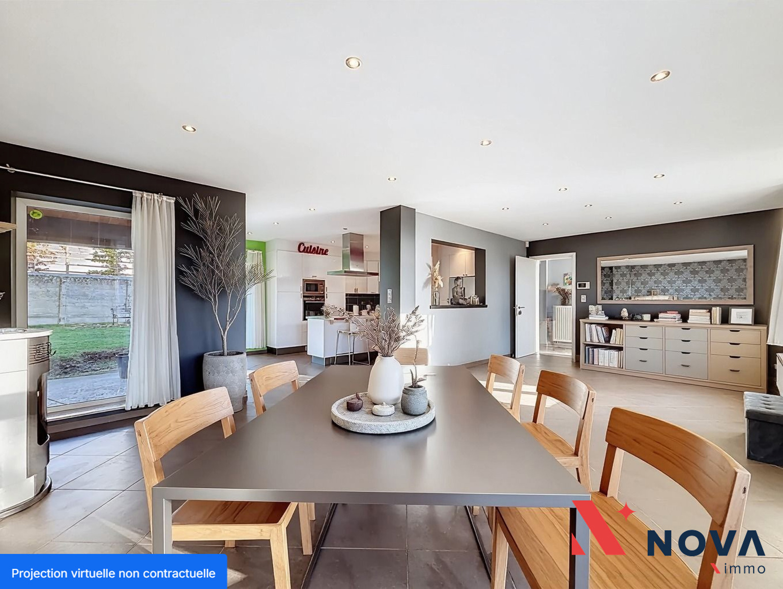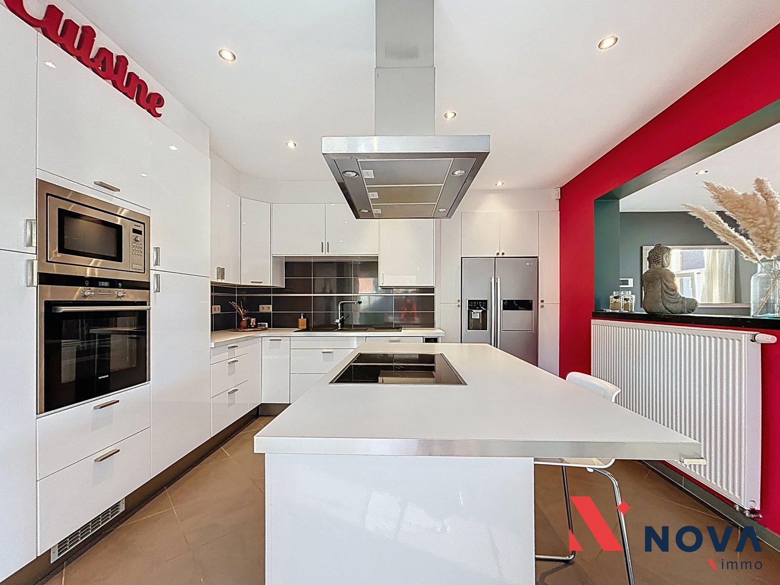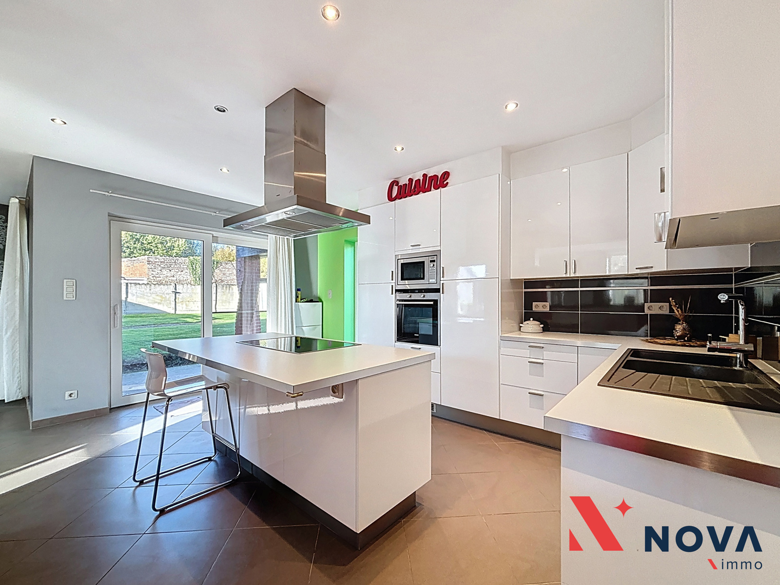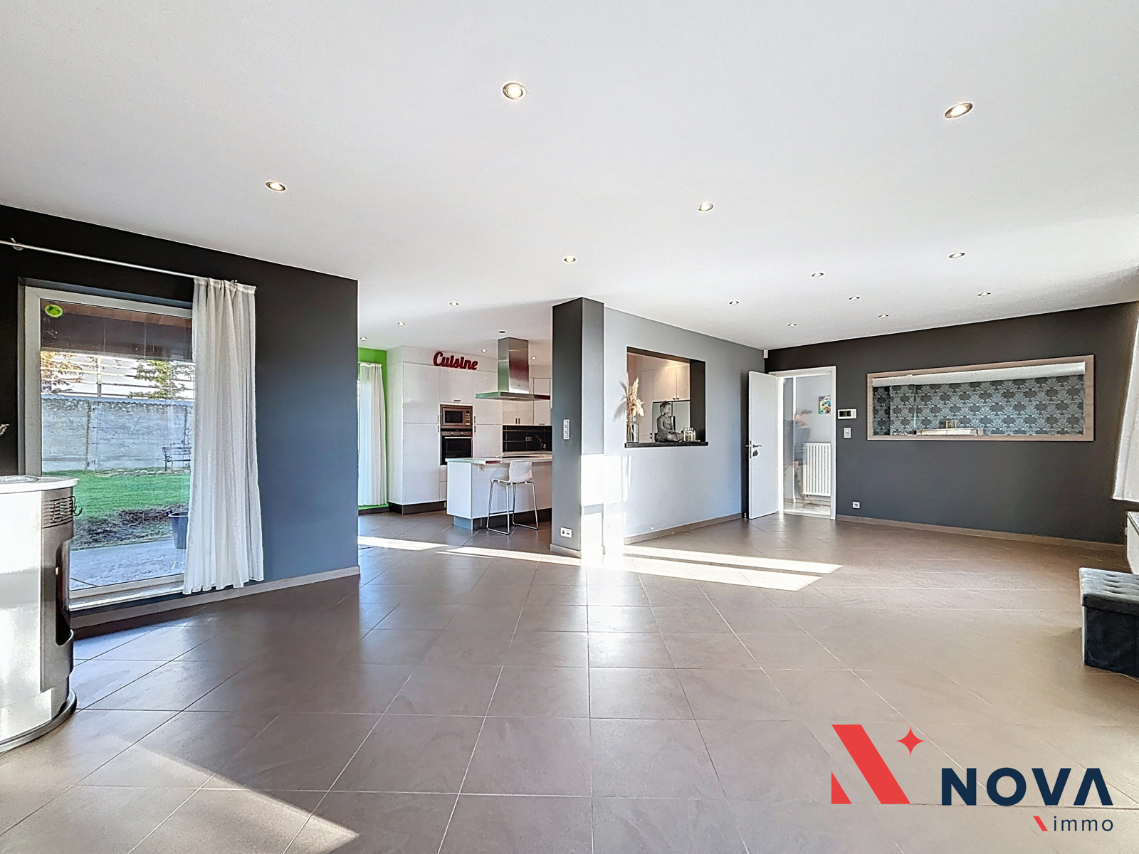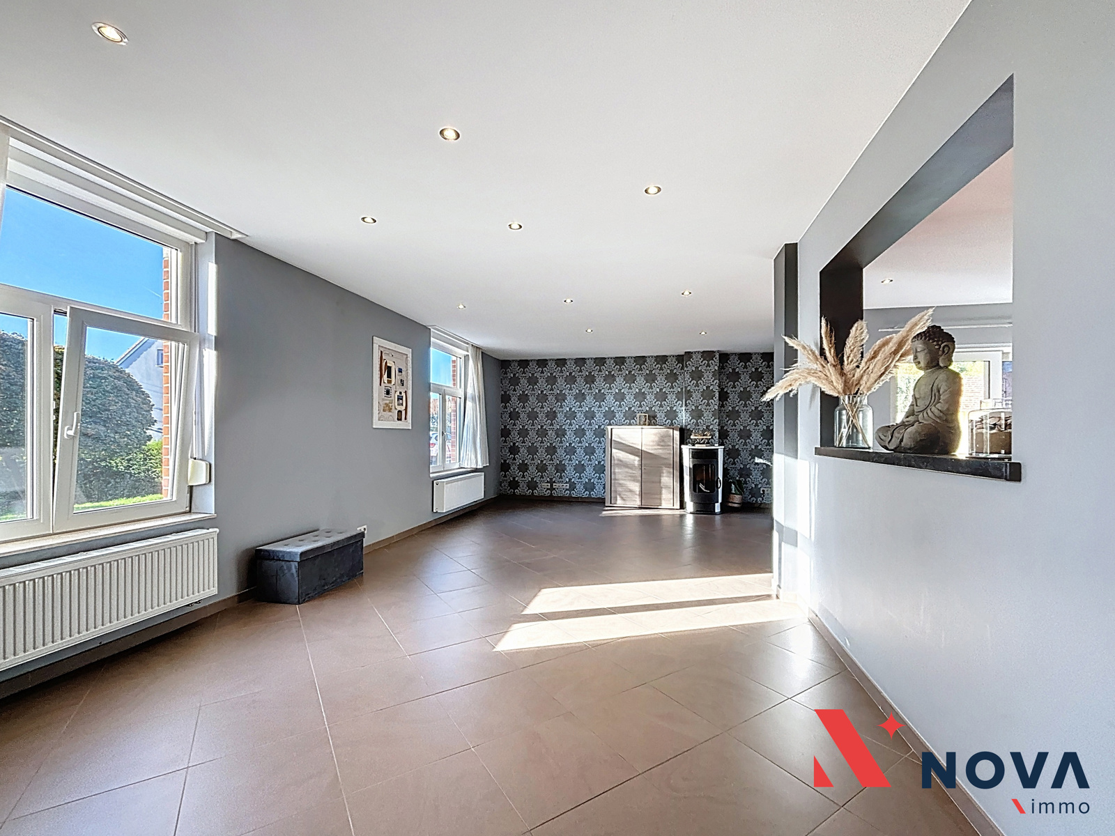 Spacieuse maison idéalement située à proximité des axes autoroutiers, des commerces et d’un arrêt de bus. Elle offre 4 chambres (poss. 5), un bureau au rez-de-chaussée parfait pour une profession libérale, un garage et un atelier à réhabiliter ainsi qu’un beau jardin. Elle se compose d’un hall d’entrée desservant un Wc invité, un joli bureau de 11m² , lumineux séjour de plus de 50 m² ouvert sur une cuisine hyper-équipée avec ilôt central et accès direct au jardin orienté SUD, ainsi qu’une buanderie. À l’étage, vous trouverez 4 chambres confortables et une grande salle de bains comprenant baignoire et douche. Un grenier aménageable au deuxième étage accessible via escalier. Cave en sous-sol. 18 panneaux photovoltaïques. Electricité conforme. La propriété dispose également d’un accès parking privé ainsi qu’un garage et un atelier (à réhabiliter). PEB C (194Kwh/m²/an). 420.000€ (ou meilleure offre). Plus d’infos et visites au 067/85.67.67.