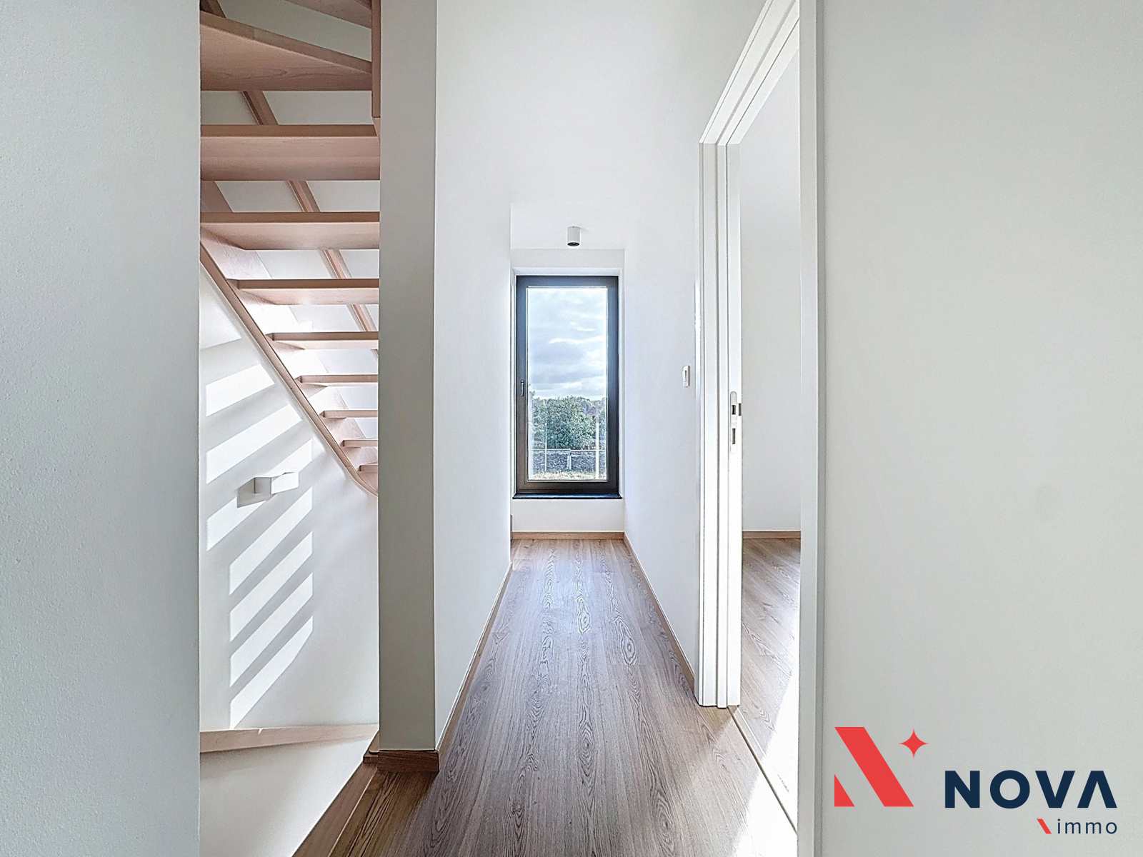 Située dans un cadre verdoyant et paisible, à deux pas du centre de Rebecq et à proximité immédiate de la E429, cette jolie maison contemporaine basse énergie, livrée clé sur porte, vous séduira par son confort et ses finitions de qualité. Elle se compose d’un hall d’entrée avec espace vestiaire et WC invités, d’un vaste et lumineux séjour de près de 40 m² avec grande baie vitrée donnant accès au jardin. À l’étage, un hall de nuit dessert 3 chambres confortables, une salle de bains équipée d’une baignoire et d’une douche à l’italienne, une buanderie séparée et un WC indépendant. Un escalier mène à un grenier aménageable de plus de 52 m² sous Velux, offrant la possibilité de créer deux chambres supplémentaires ou un espace polyvalent. Panneaux photovoltaïques et chauffage par le sol au rez-de-chaussée complètent les prestations. Vente sous régime TVA 6 % (sous conditions). Informations et visites? Contactez nous au 067/85.67.67.