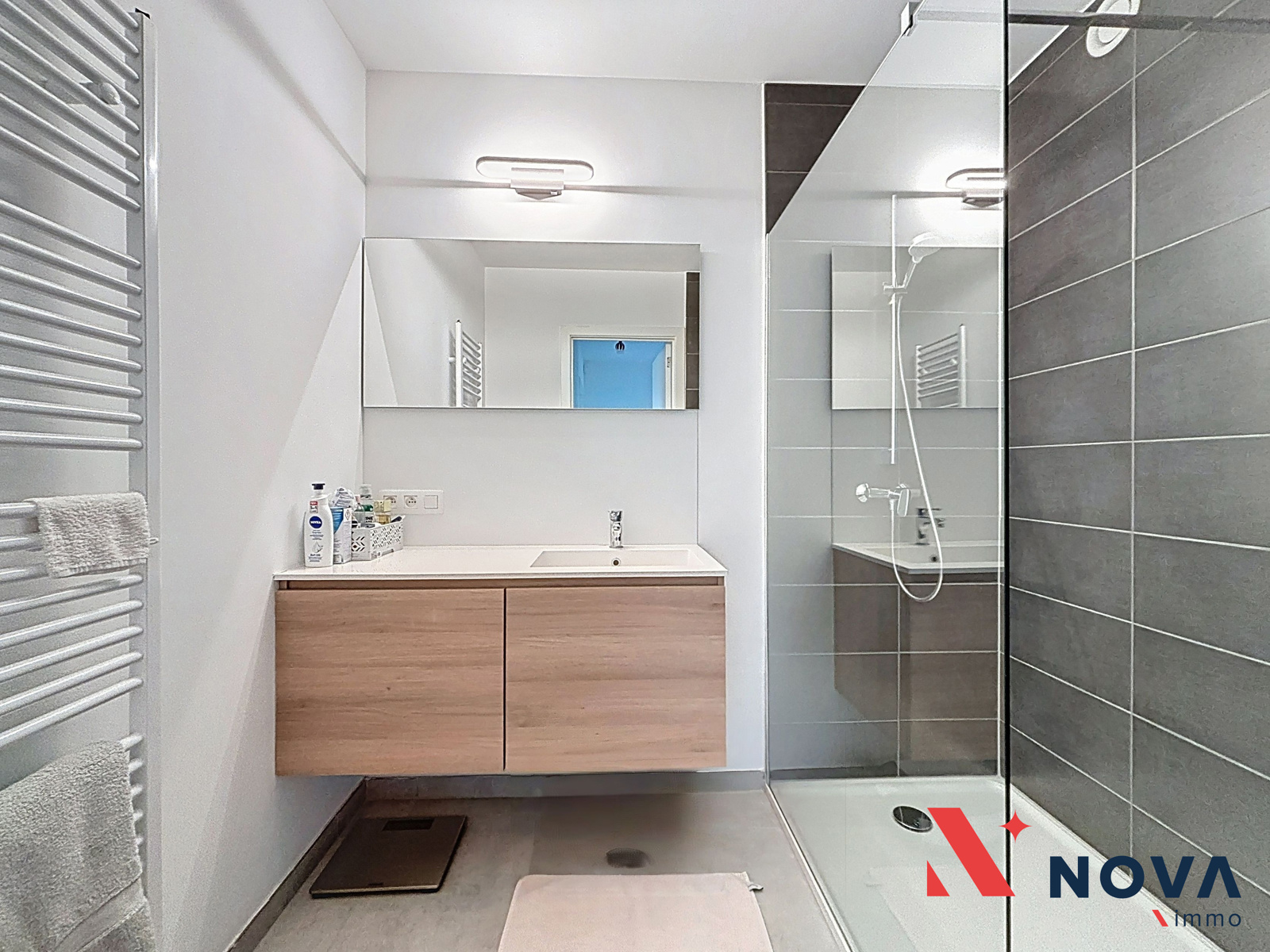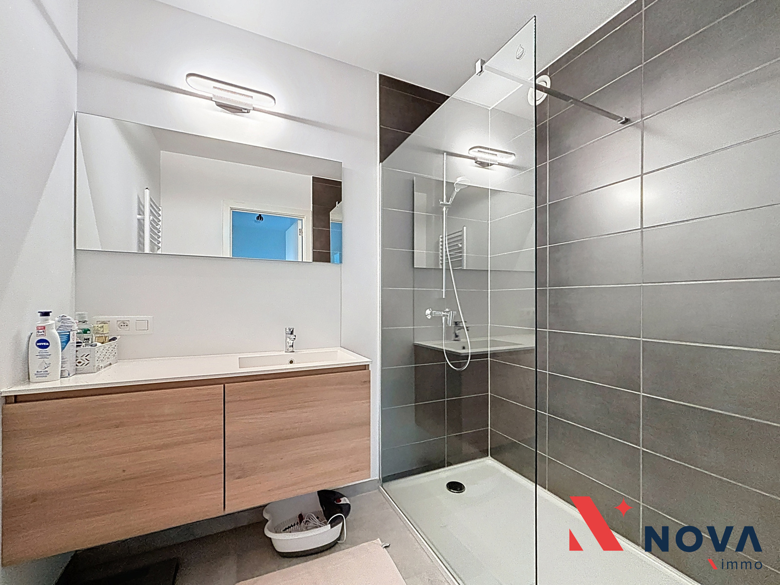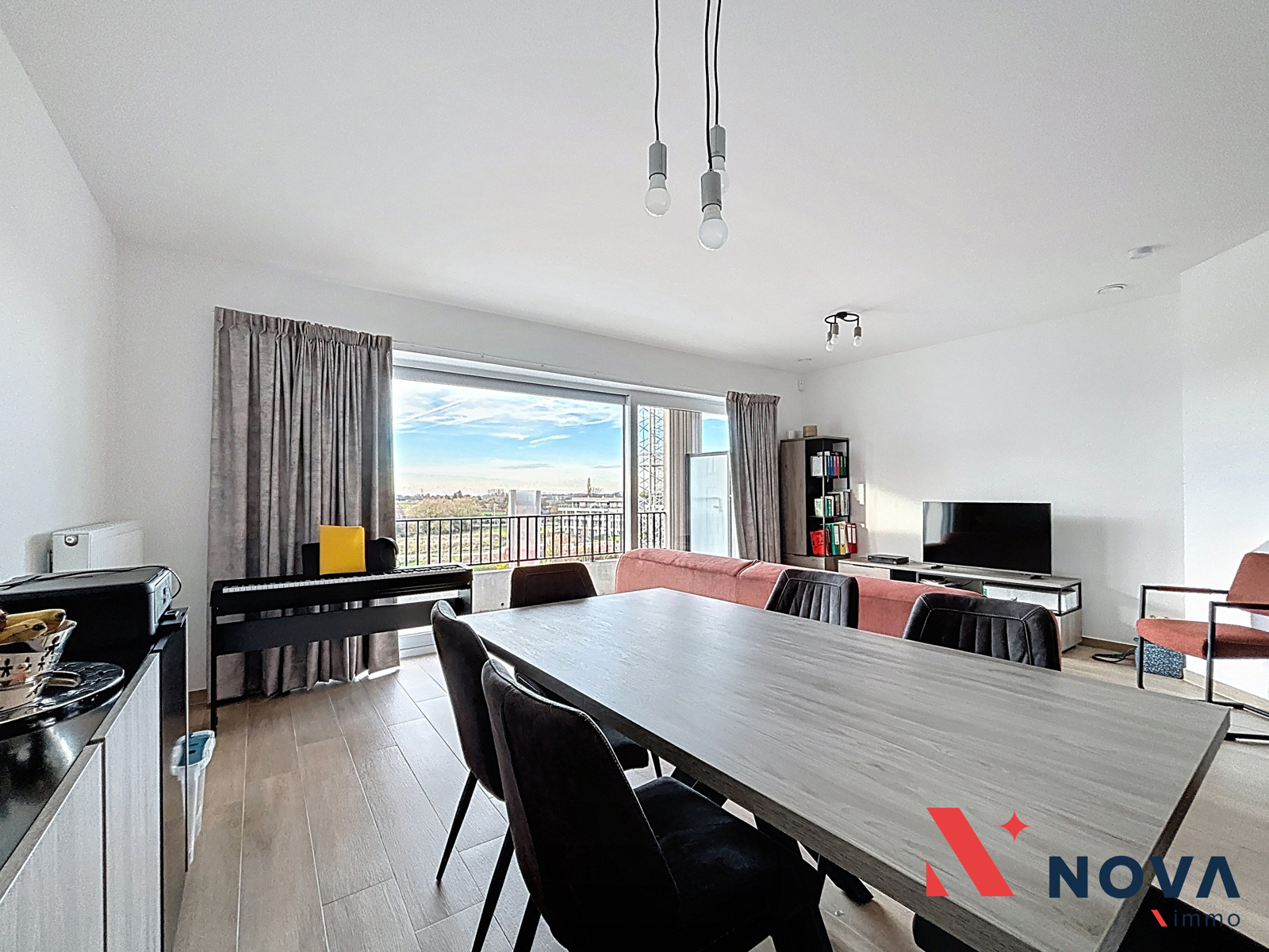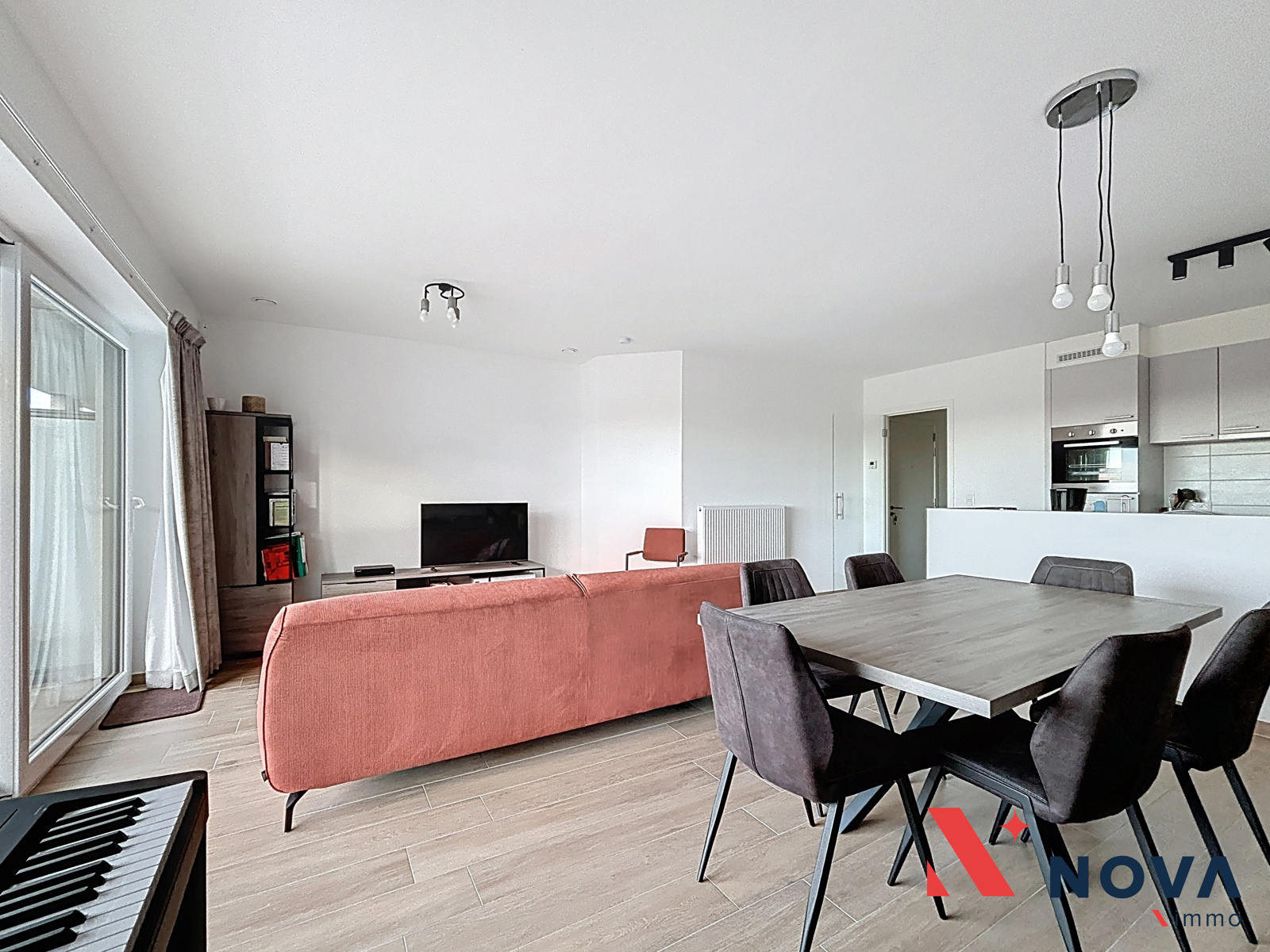 Disponible àpd 01/02/2026. Nova-Immo vous propose à la location cet agréable appartement (PEB A+) de deux chambres, situé au 2ᵉ étage d’une résidence moderne construite en 2022 et équipée d’un ascenseur. Il se compose d’un hall d’entrée ouvrant sur un lumineux et spacieux séjour avec cuisine toute équipée et buanderie attenante, grande terrasse à l’avant orientée sud-ouest. Le hall de nuit déssert 2 chambres confortables avec terrasse arrière, Un wc et une salle de douche. Le complexe résidentiel offre un cadre de vie agréable avec son parc, tout en bénéficiant de la proximité d’un supermarché et du centre. Cave + parking sécurisé en sous-sol. Loyer : 910€ + 90€ de provision pour charges. Plus d’infos et visites au 067 85 67 67.