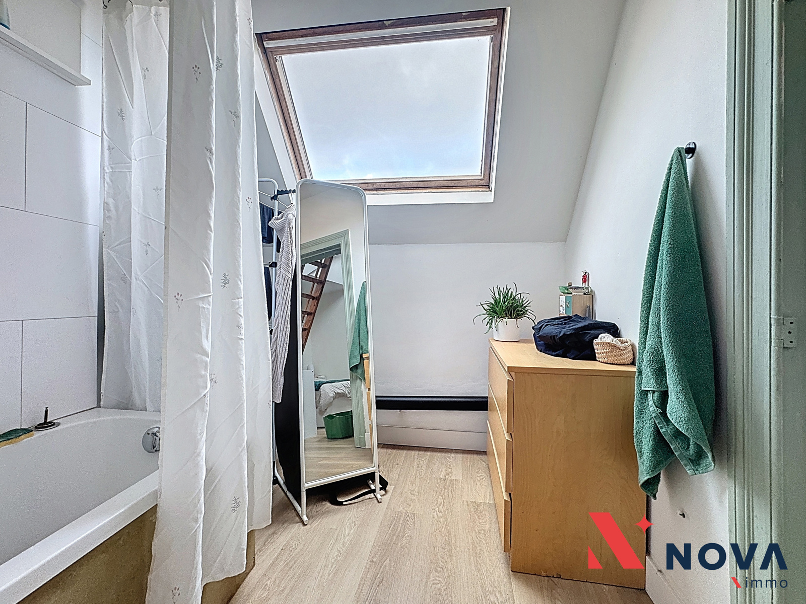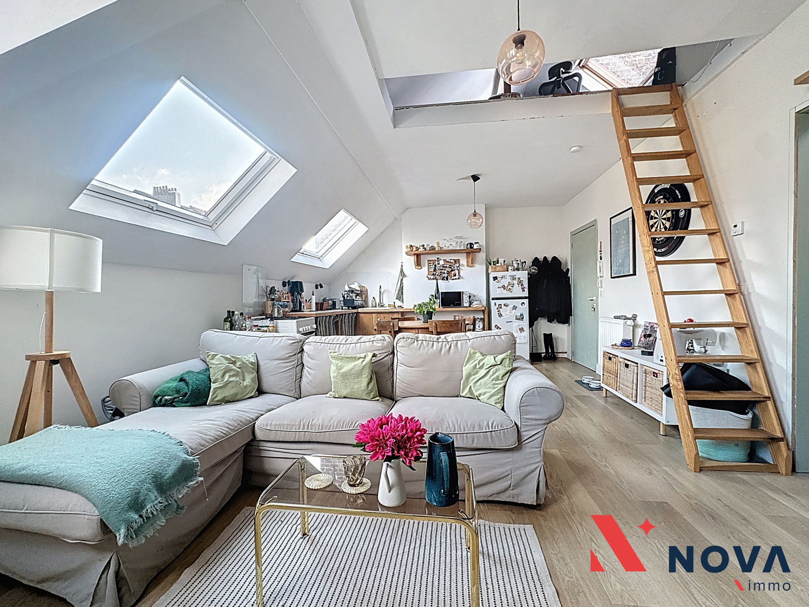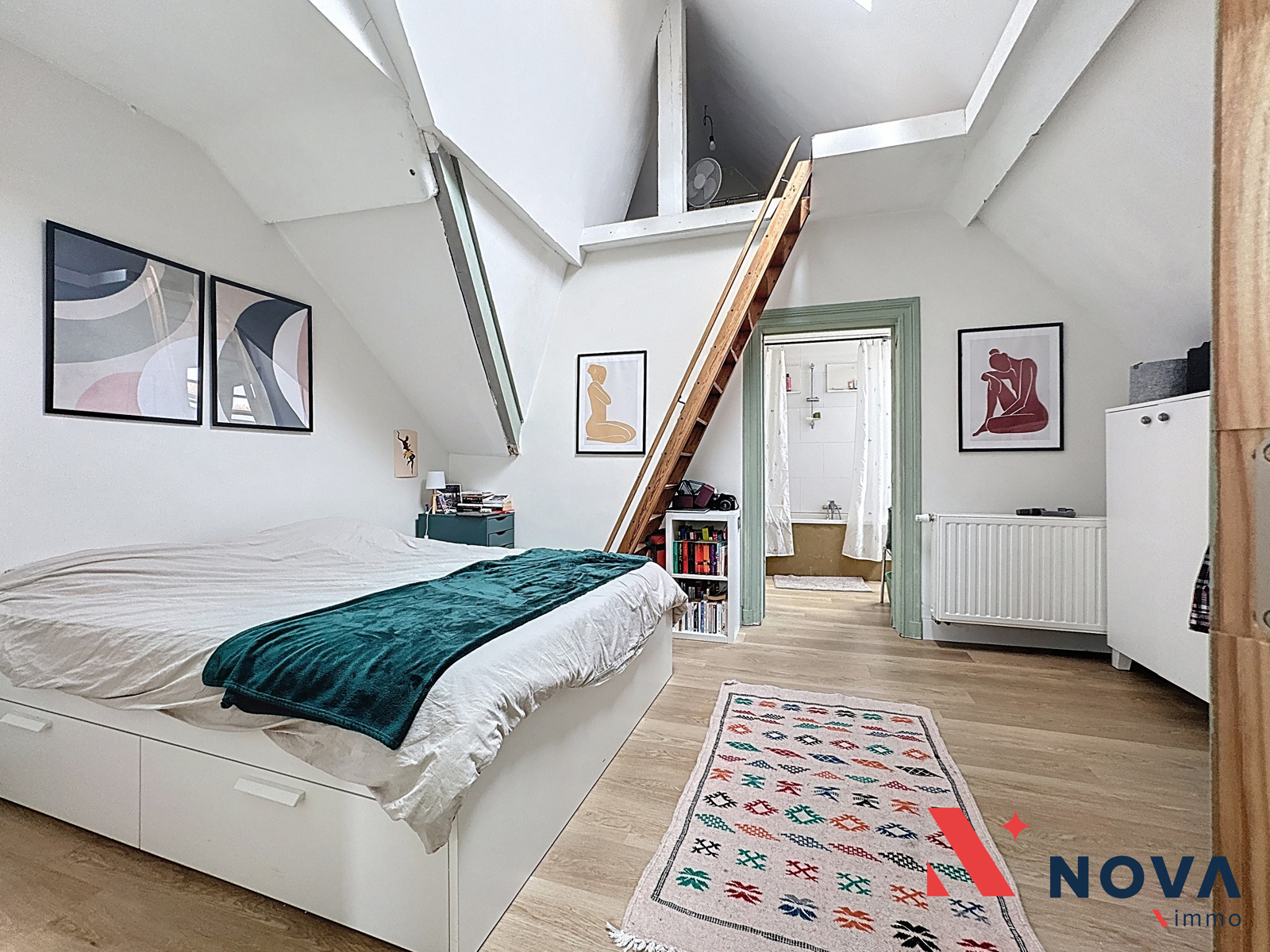 Nova-Immo vous présent ce bel appartement plein de charme, situé dans une rue calme de Forest, à deux pas du parc de Forest, du Parvis de Saint-Gilles, des commerces, transports et toutes les commodités du quartier. Le bien offre un séjour lumineux de 30 m² avec cuisine américaine, une chambre de 16 m² avec mezzanine, une salle de bain spacieuse de 9 m², ainsi qu’un bureau de 8 m² sous combles, parfait pour le télétravail ou chambre d’amis. À l’entresol, WC séparé et buanderie. L’appartement dispose de châssis double vitrage, d’un chauffage central, et affiche un PEB E – 245 kWh/m².an. Très faible charges. Prix 215.000€ ou meilleure offre. Informations et visites au 067/85.67.67.