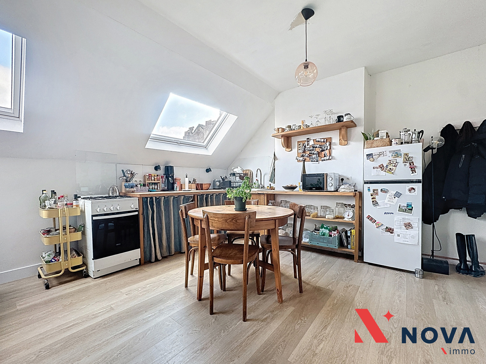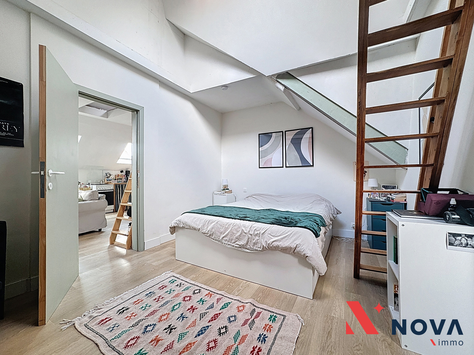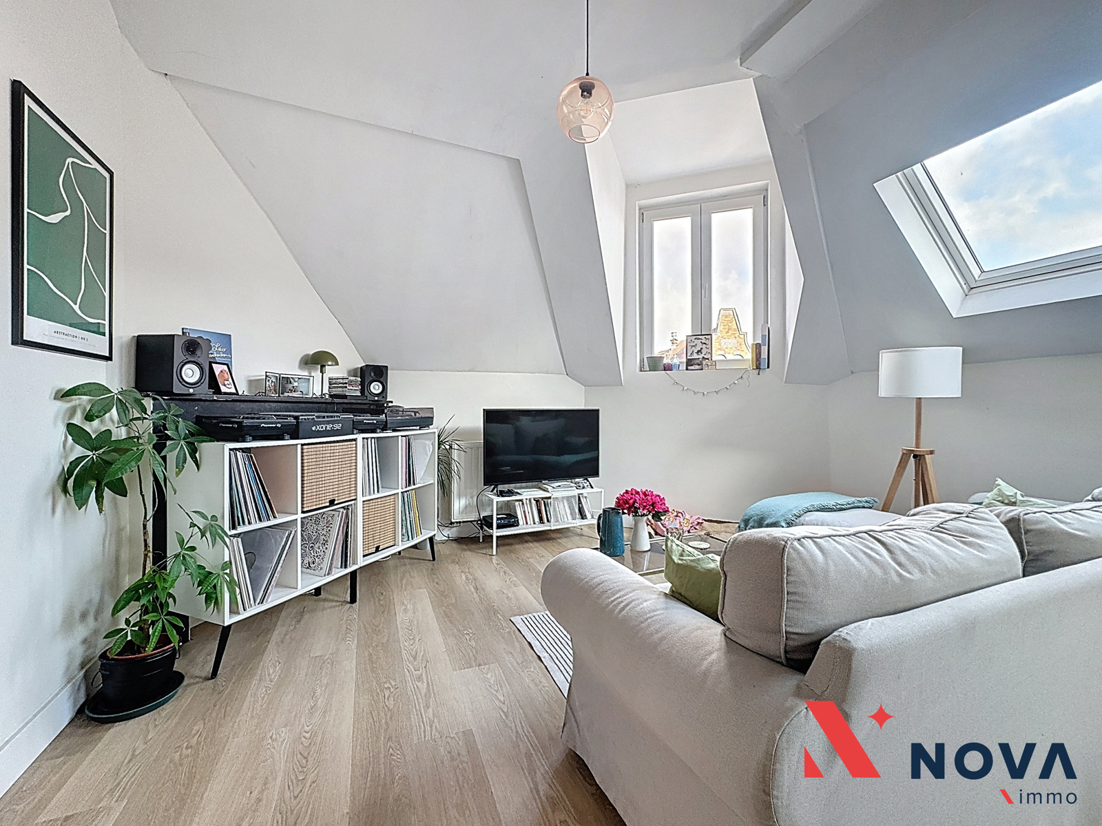 Nova-Immo vous présent ce bel appartement plein de charme, situé dans une rue calme de Forest, à deux pas du parc de Forest, du Parvis de Saint-Gilles, des commerces, transports et toutes les commodités du quartier. Le bien offre un séjour lumineux de 30 m² avec cuisine américaine, une chambre de 16 m² avec mezzanine, une salle de bain spacieuse de 9 m², ainsi qu’un bureau de 8 m² sous combles, parfait pour le télétravail ou chambre d’amis. À l’entresol, WC séparé et buanderie. L’appartement dispose de châssis double vitrage, d’un chauffage central, et affiche un PEB E – 245 kWh/m².an. Très faible charges. Prix 215.000€ ou meilleure offre. Informations et visites au 067/85.67.67.