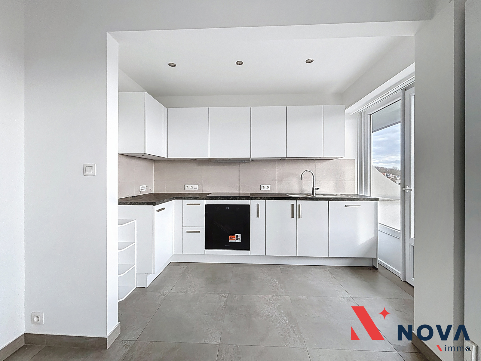 Idéalement situé en bordure de parcs et à proximité des transports. Lumineux appartement 1 chambre entièrement rénové avec terrasse offrant une magnifique vue panoramique sur la ville et les parcs avoisinants. Situé au 6ᵉ étage d’une résidence bien tenue (avec ascenseur), il se compose d’un dégagement à l’entrée avec placard encastré, lumineux séjour avec cuisine ouverte moderne et ouvrant sur la spacieuse terrasse, une chambre et une salle de bain avec Wc. PEB C. Loyer : 1.000€ + 180€ de provision pour charges (communs, chauffage, eau chaude). Plus d’infos et visites au 067/85.67.67.
