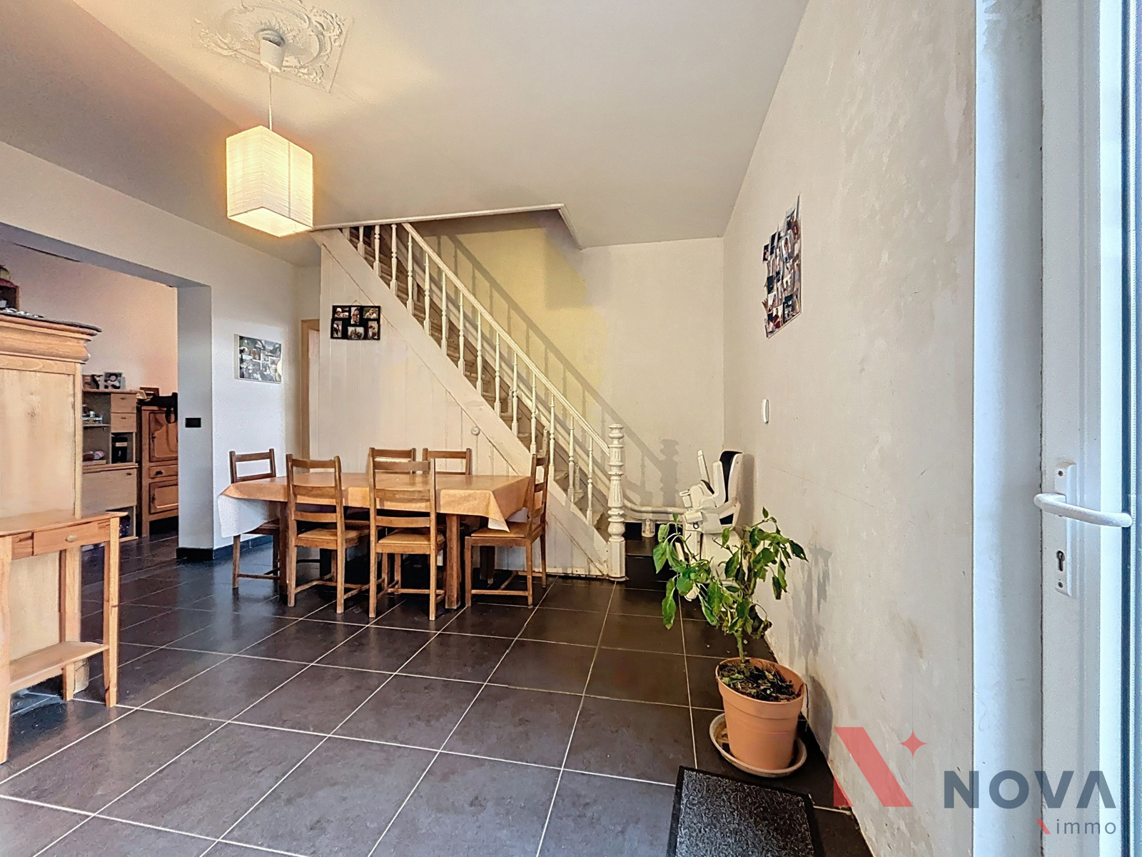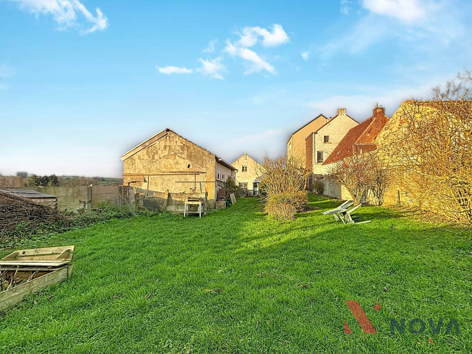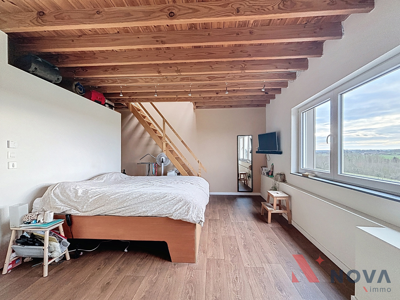 Située dans un cadre verdoyant, charmante maison offrant cinq chambres, un jardin avec vue sur la campagne environnante et un grand garage. Elle se compose d’un vaste hall d’entrée menant à la salle à manger de 17 m² et au salon équipé d’une cassette à bois. La cuisine, entièrement équipée, dispose d’une baie vitrée donnant sur la terrasse et le jardin. Une chaufferie et un WC complètent le rez-de-chaussée. À l’étage, le hall de nuit dessert deux chambres, une buanderie et une salle de bain. Le deuxième étage accueille trois chambres, dont une suite parentale avec salle de bain ouverte et mezzanine idéale pour un bureau ou une salle de sport. La maison bénéficie également d’une annexe de 60 m² avec demande de permis d’urbanisme en attente pour l’agrandissement du rez-de-chaussée, d’une cave, d’un chauffage par le sol, de panneaux photovoltaïques et de panneaux solaires. Peb B! Faire offre à partir de 330.000€. Informations et visites au 067/85.67.67.