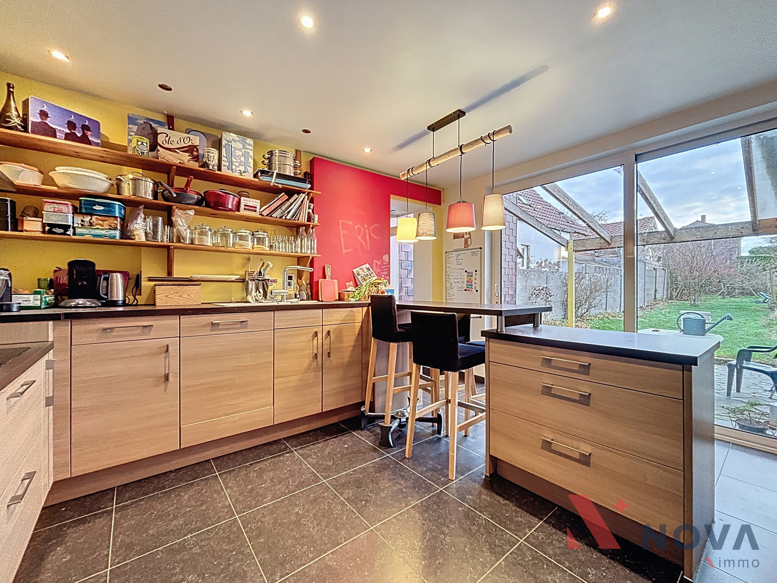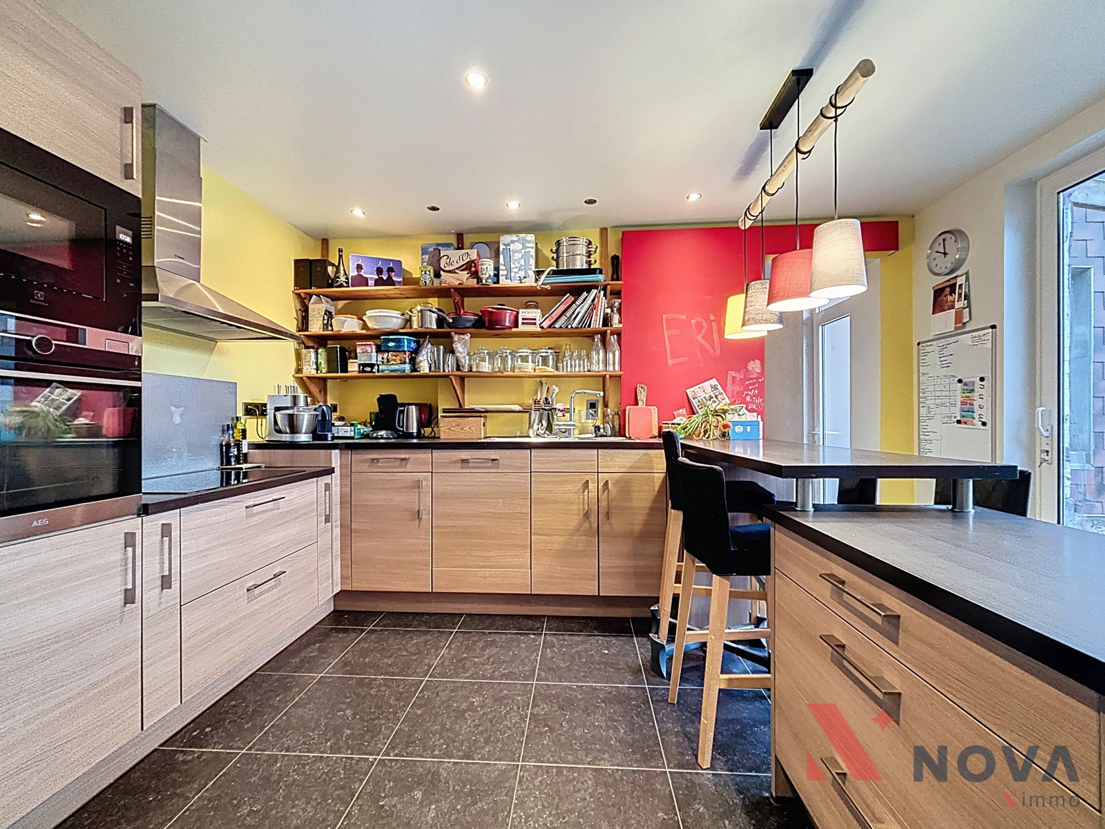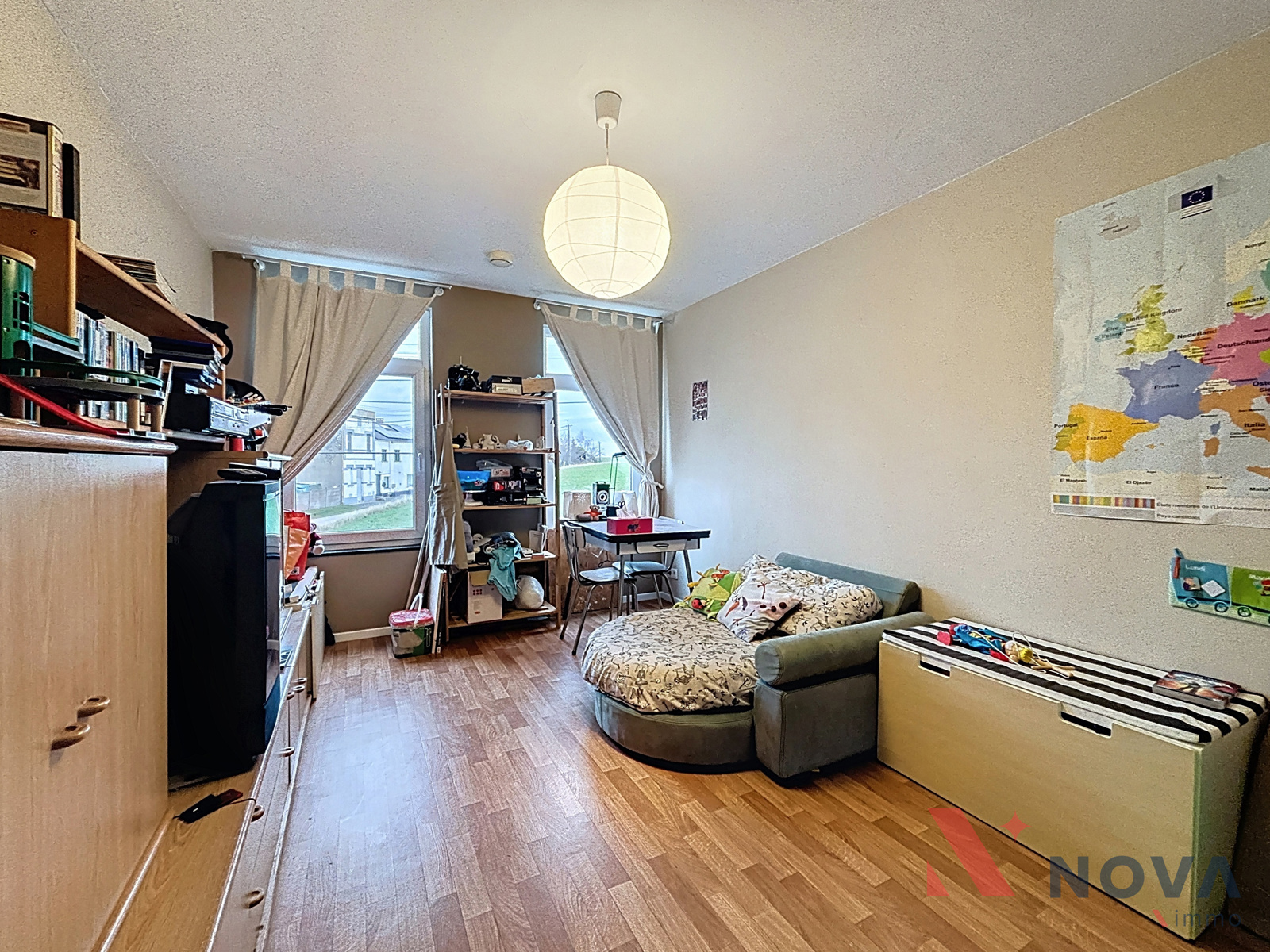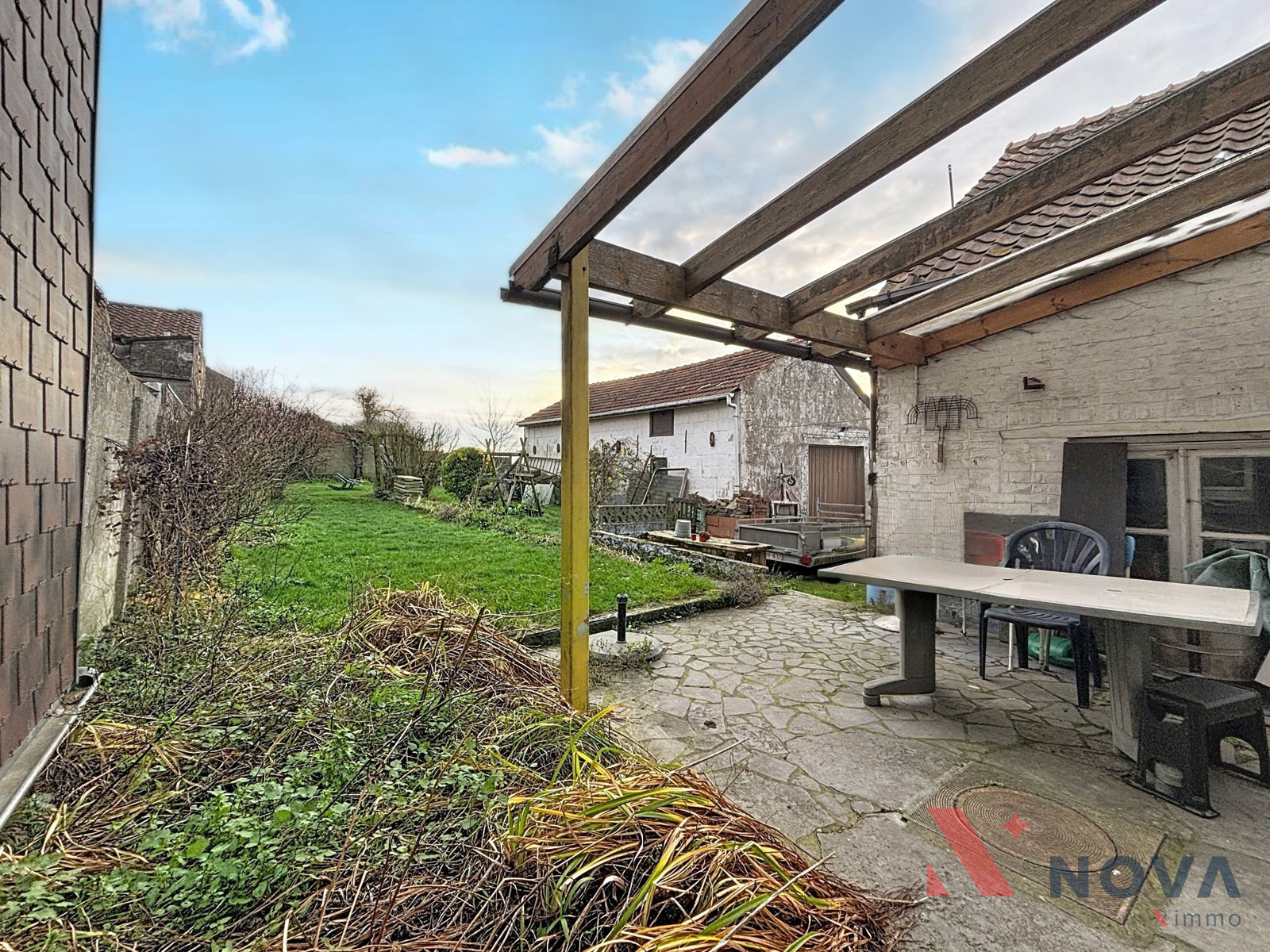 Située dans un cadre verdoyant, charmante maison offrant cinq chambres, un jardin avec vue sur la campagne environnante et un grand garage. Elle se compose d’un vaste hall d’entrée menant à la salle à manger de 17 m² et au salon équipé d’une cassette à bois. La cuisine, entièrement équipée, dispose d’une baie vitrée donnant sur la terrasse et le jardin. Une chaufferie et un WC complètent le rez-de-chaussée. À l’étage, le hall de nuit dessert deux chambres, une buanderie et une salle de bain. Le deuxième étage accueille trois chambres, dont une suite parentale avec salle de bain ouverte et mezzanine idéale pour un bureau ou une salle de sport. La maison bénéficie également d’une annexe de 60 m² avec demande de permis d’urbanisme en attente pour l’agrandissement du rez-de-chaussée, d’une cave, d’un chauffage par le sol, de panneaux photovoltaïques et de panneaux solaires. Peb B! Faire offre à partir de 330.000€. Informations et visites au 067/85.67.67.