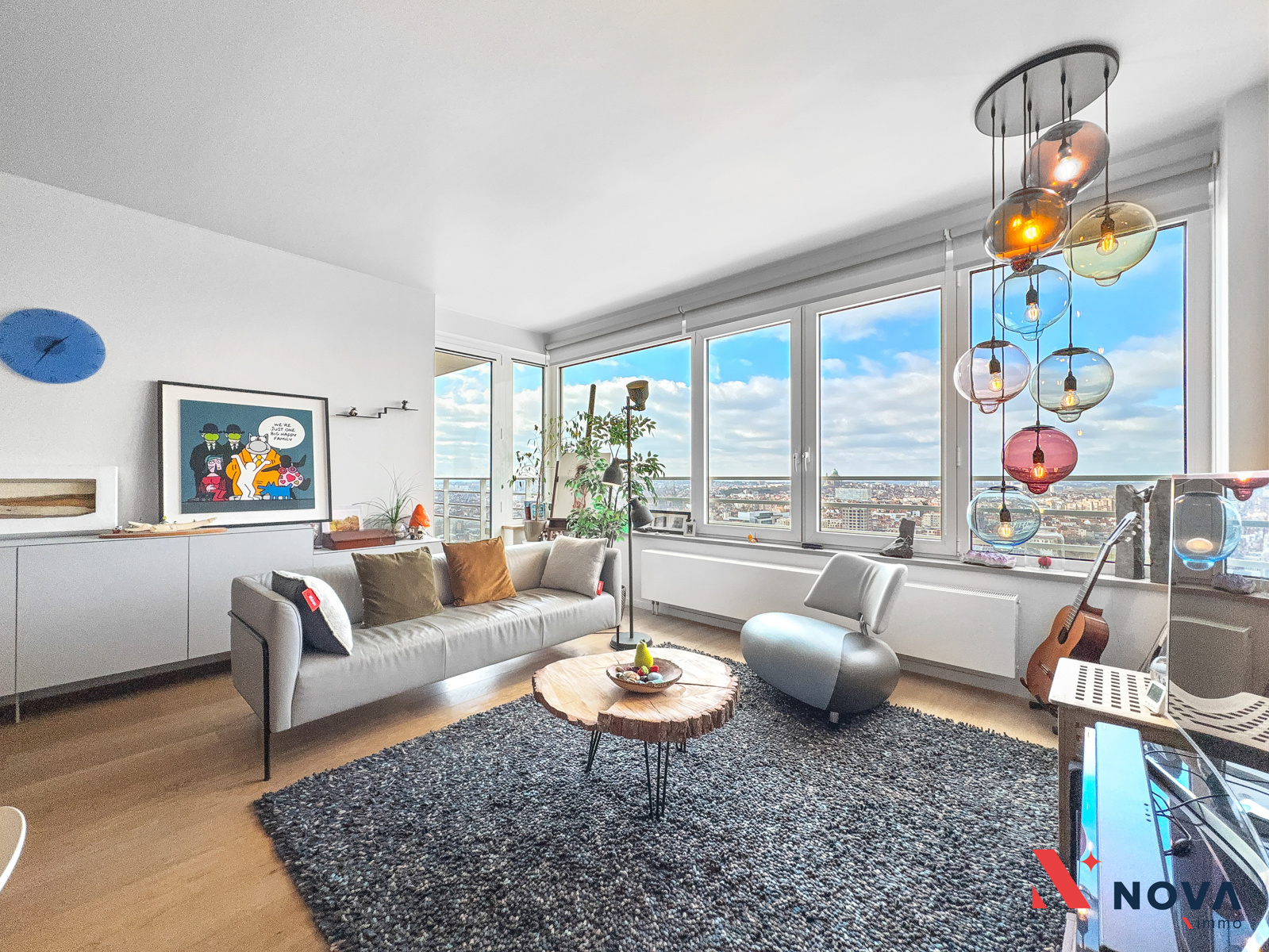 Situé au 24ᵉ étage de la prestigieuse résidence Up-site, la plus haute tour résidentielle de Bruxelles construite en 2014, cet appartement 2 chambres de ±106 m² (terrasse comprise) offre une vue panoramique remarquable orientée ouest, face au site de Tour & Taxis et du canal, à proximité du futur musée Centre Pompidou.