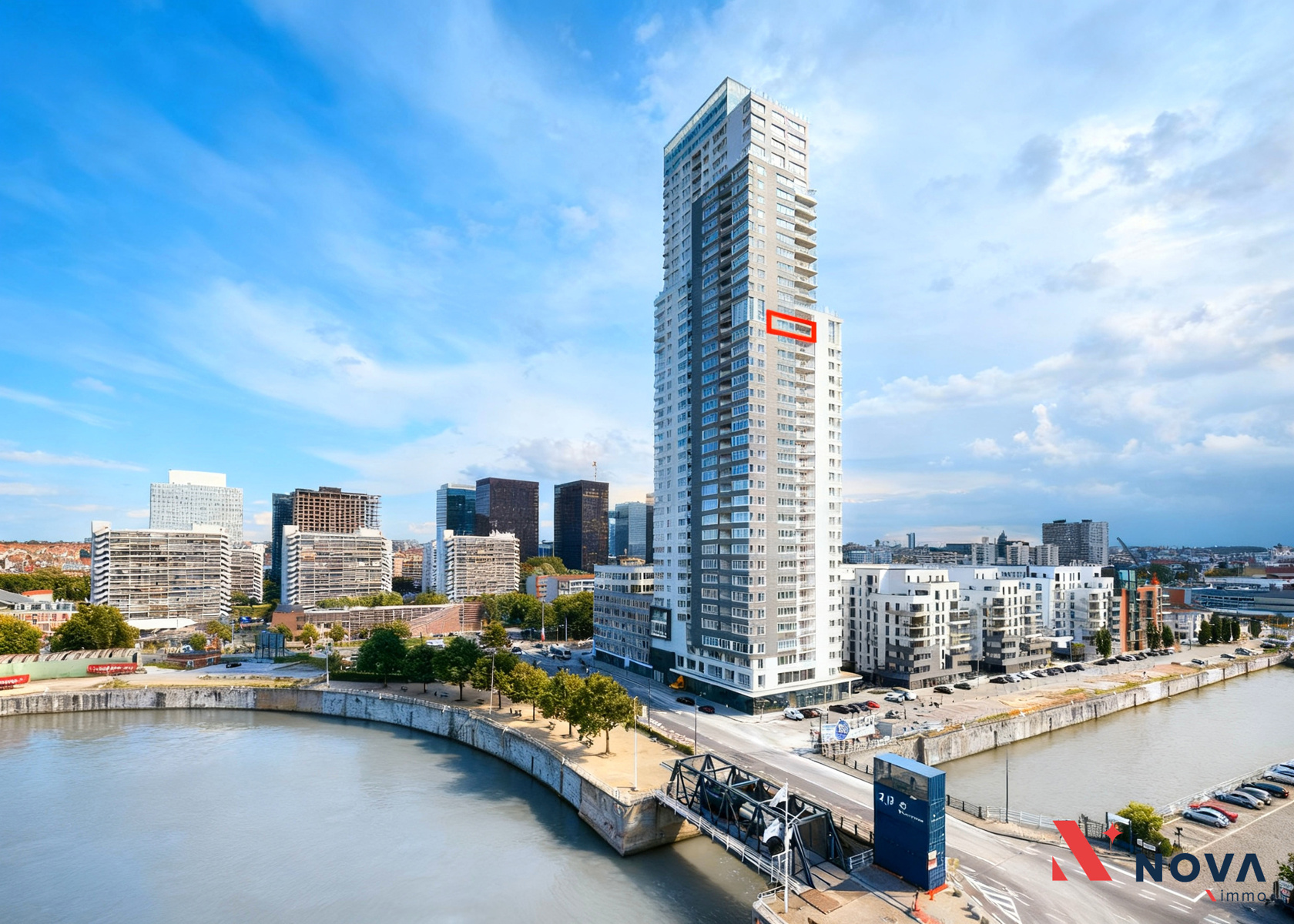 Situé au 24ᵉ étage de la prestigieuse résidence Up-site, la plus haute tour résidentielle de Bruxelles construite en 2014, cet appartement 2 chambres de ±106 m² (terrasse comprise) offre une vue panoramique remarquable orientée ouest, face au site de Tour & Taxis et du canal, à proximité du futur musée Centre Pompidou.