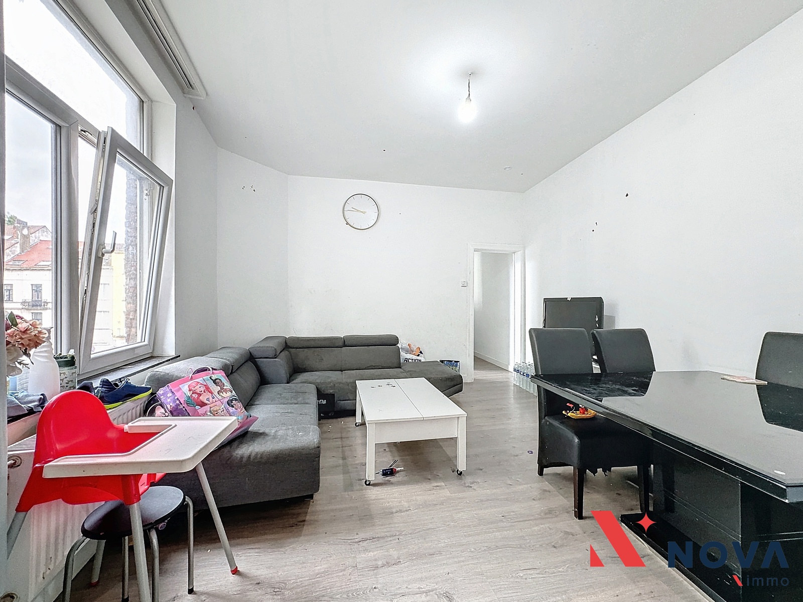 Lumineux appartement au 2em étage d’une petite copropriété. L’appartement se compose d’un hall d’entrée, un spacieux salon, une cuisine équipée, une salle à manger (actuellement utilisée comme chambre) un hall de nuit 2chambres de 19m² et 14m². une salle de douche. au sous-sol cave privative. Visites et informations au 067/85.67.67.