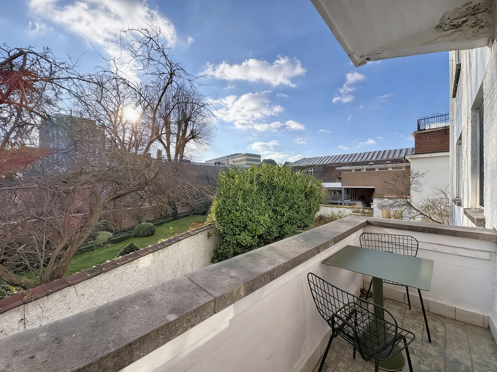 Situé dans le très recherché quartier du Châtelain, à proximité immédiate du parc Tenbosch, cet appartement 2 chambres rénové de ±107 m² (selon PEB) se trouve au 1er étage d’un immeuble de standing avec sa façade en pierre bleue, construit en 1985.