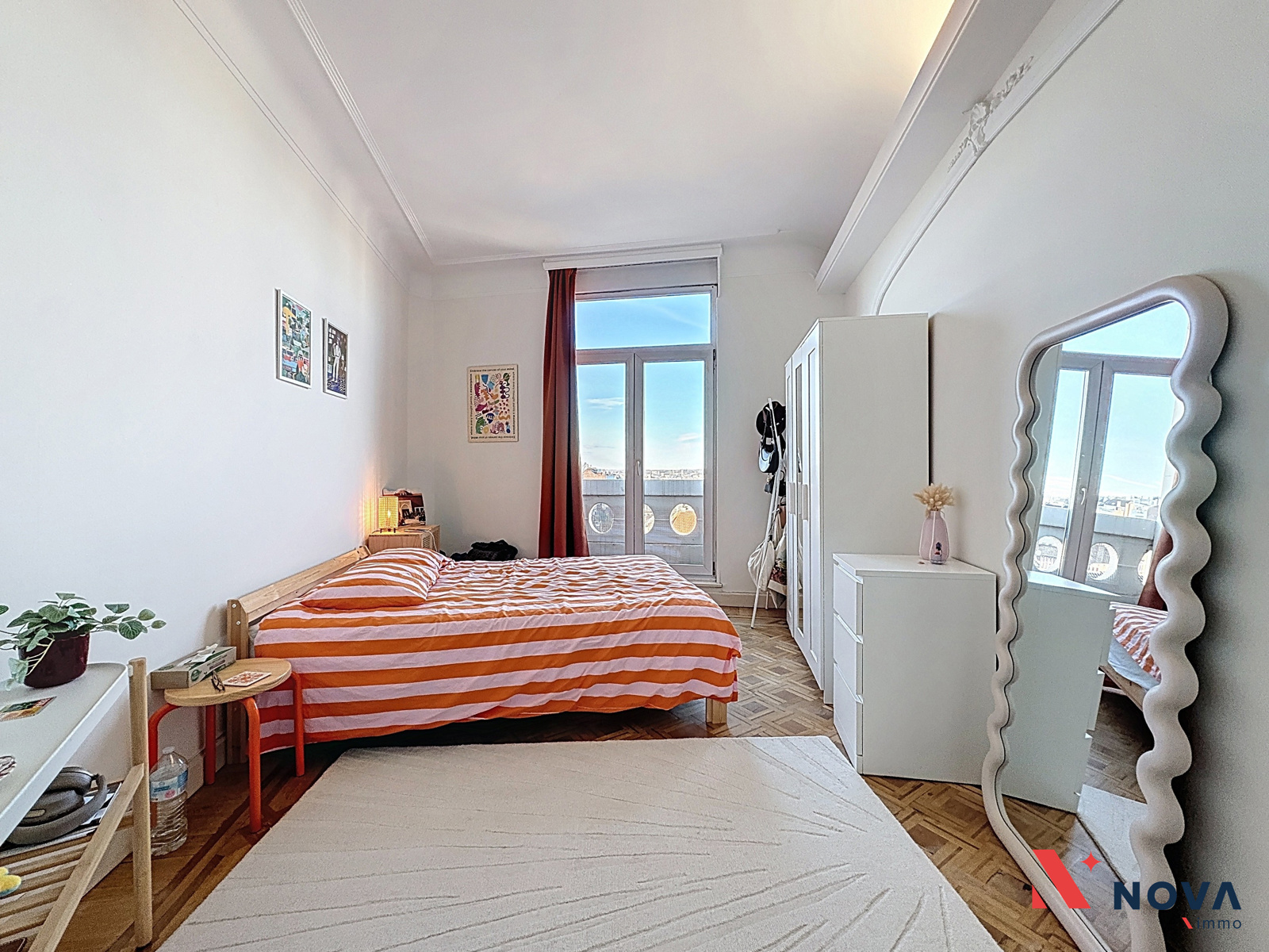Situé dans le haut de Saint-Gilles, au sein d’un immeuble de style Beaux-Arts érigé en 1925 et inscrit à l’inventaire du patrimoine architectural bruxellois, cet appartement de ±120 m² prend place au 7ᵉ et dernier étage et bénéficie d’une vue panoramique sur Bruxelles.