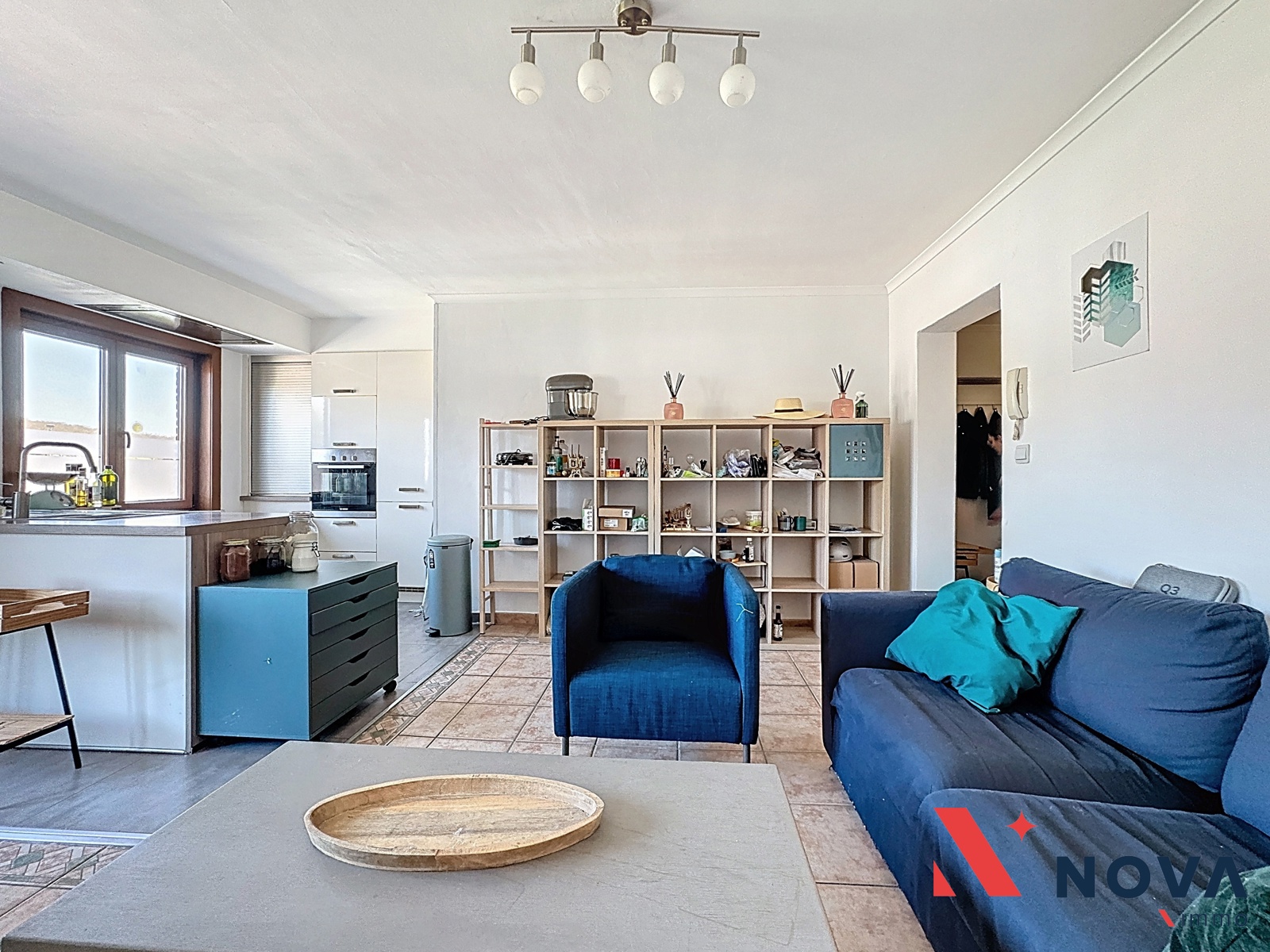 SOUS OPTION ! OFFRE ACCEPTEE ! Lumineux appartement offrant 2 belles chambres ainsi qu’un vaste grenier de 43 m² aménageable selon vos envies, ou idéal pour créer un second logement (sous réserve d’autorisation)! L’appartement se compose d’un hall d’entrée de 5 m², d’un lumineux séjour de 25 m² et d’une cuisine récente entièrement équipée. Côté nuit, deux chambres confortables de 14 et 10 m², ainsi qu’une jolie salle de bain récemment rénovée. Le grand grenier accessible via les communs et offrant un bel espace de 43 m² sous velux, représente un véritable atout : extension du logement, studio indépendant, bureau… les possibilités sont nombreuses ! PEB C. Faire offre à partir de 185.000€. Visites et informations au 067/85.67.67.