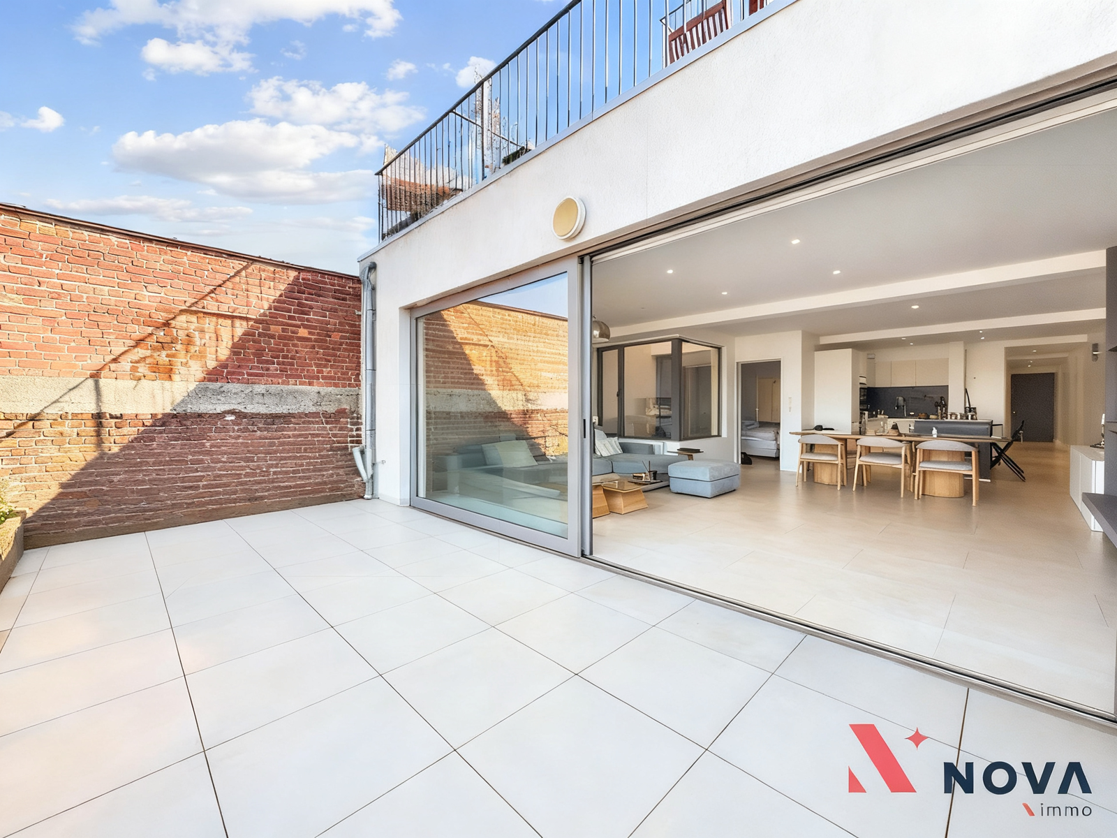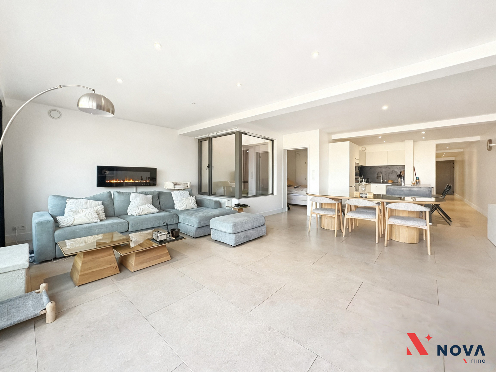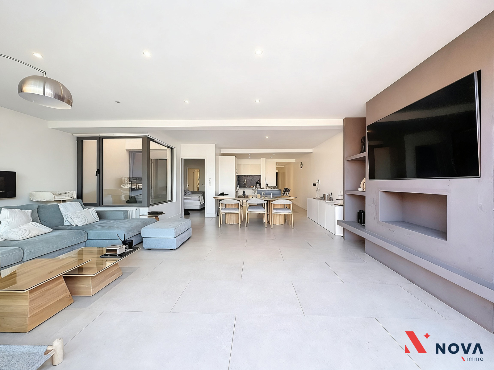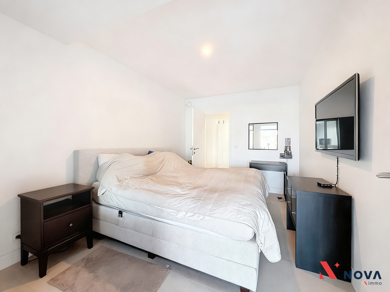 L’appartement s’ouvre sur un hall d’entrée lumineux menant vers un vaste séjour de ±50 m², offrant de superbes volumes et une ambiance moderne. L’espace de vie comprend une cuisine américaine entièrement équipée avec îlot central, ainsi qu’un patio intérieur apportant une belle luminosité. Depuis le séjour, accès direct à une première chambre de ±13 m² avec salle de douche attenante. Dans le prolongement, une spacieuse terrasse de ±30 m² orientée ouest permet de profiter pleinement d’un agréable espace extérieur. Le hall de nuit dessert deux autres chambres de ±13 m² et ±10 m², une salle de bain avec baignoire, double vasque et douche italienne en marbre, ainsi qu’une buanderie indépendante et un WC séparé.