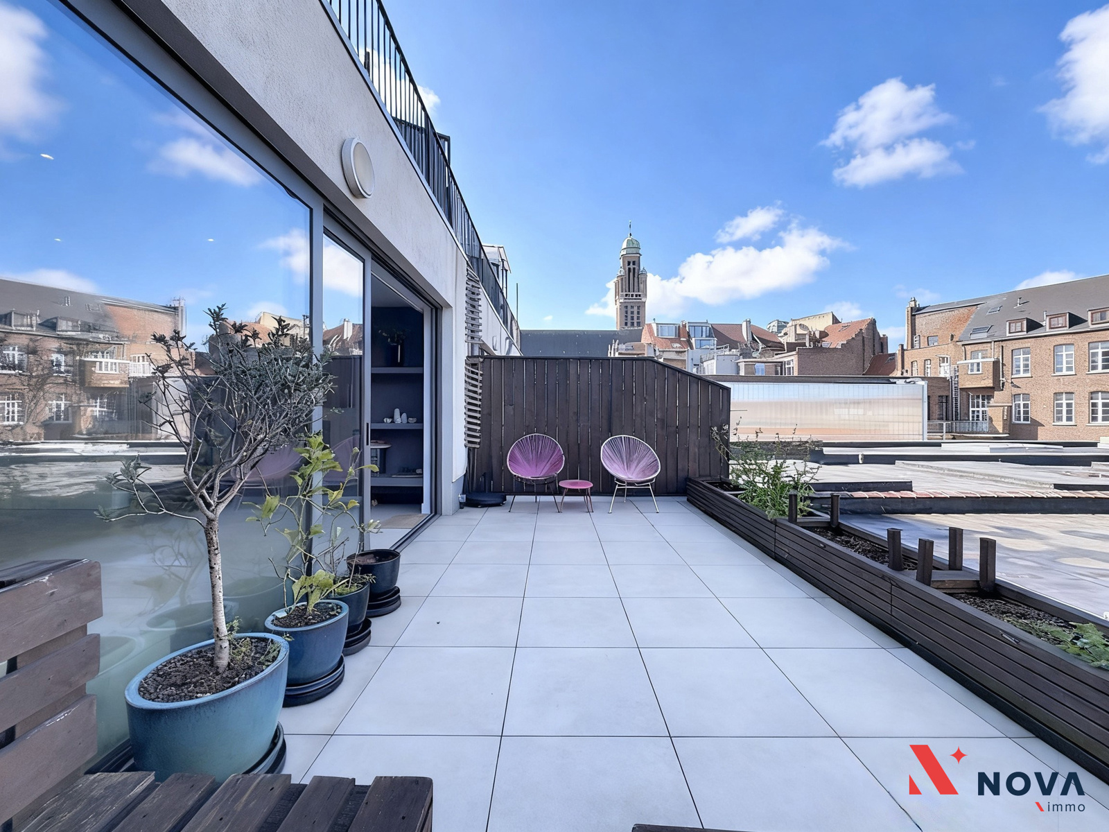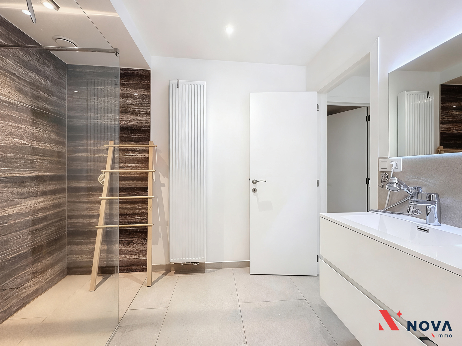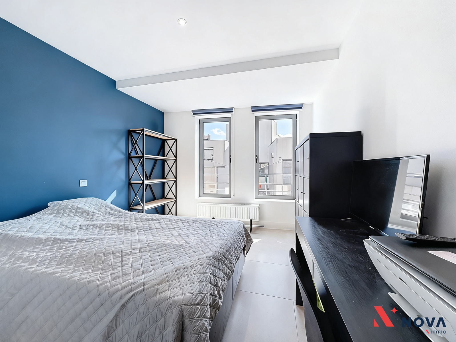 L’appartement s’ouvre sur un hall d’entrée lumineux menant vers un vaste séjour de ±50 m², offrant de superbes volumes et une ambiance moderne. L’espace de vie comprend une cuisine américaine entièrement équipée avec îlot central, ainsi qu’un patio intérieur apportant une belle luminosité. Depuis le séjour, accès direct à une première chambre de ±13 m² avec salle de douche attenante. Dans le prolongement, une spacieuse terrasse de ±30 m² orientée ouest permet de profiter pleinement d’un agréable espace extérieur. Le hall de nuit dessert deux autres chambres de ±13 m² et ±10 m², une salle de bain avec baignoire, double vasque et douche italienne en marbre, ainsi qu’une buanderie indépendante et un WC séparé.
