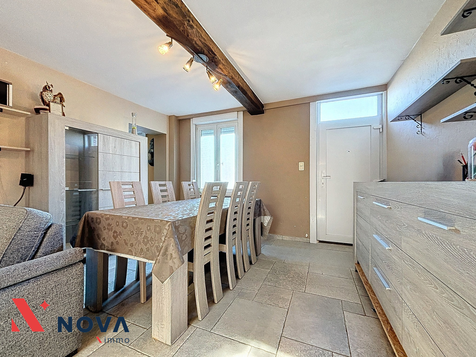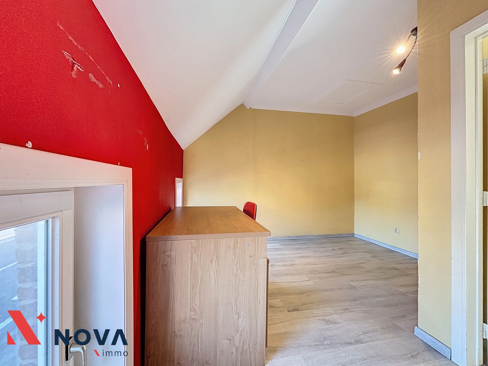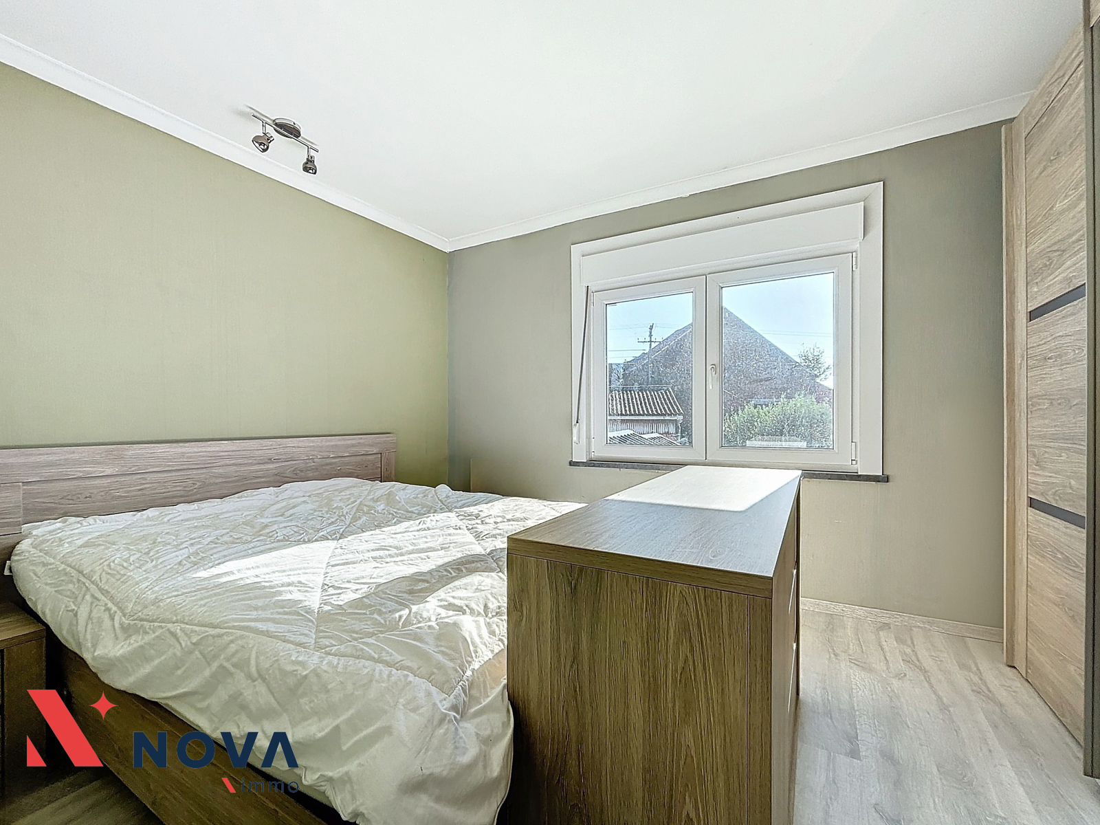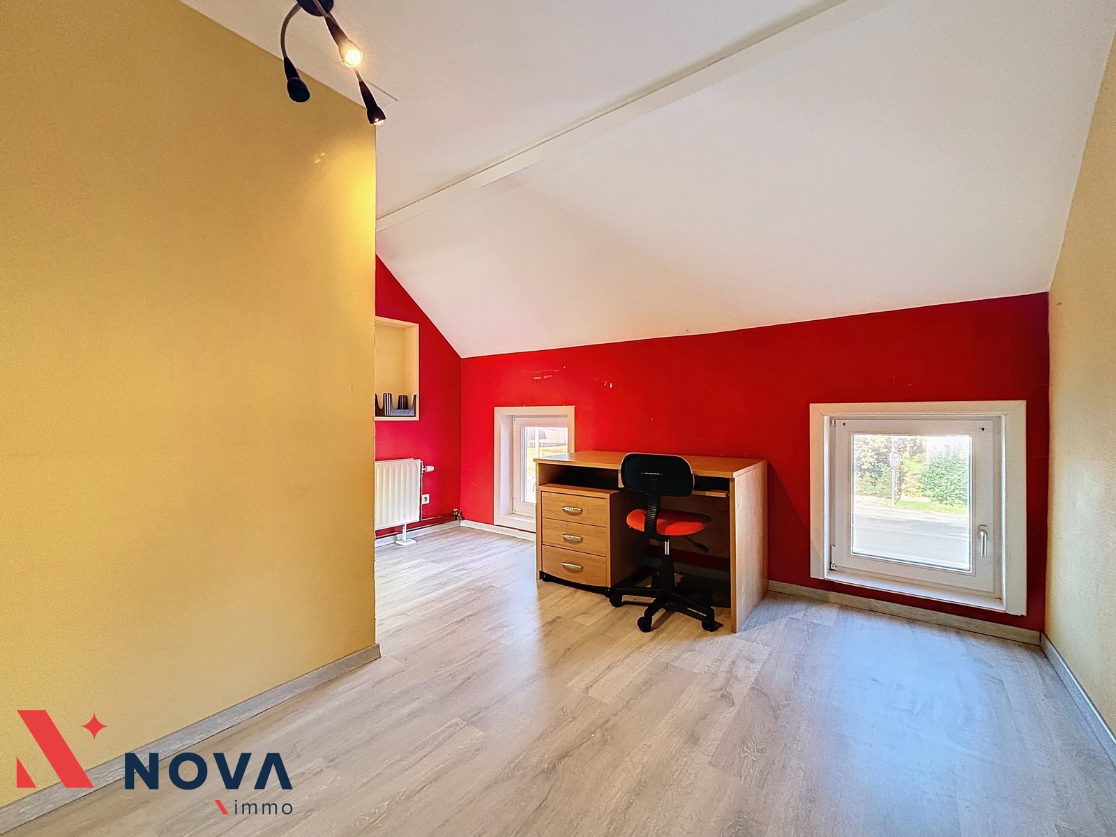 Nova-Immo vous propose cette jolie maison 3 chambres, en très bon état, proposant 3 chambres, un bureau et un beau jardin plein sud. Celle-ci se compose d’un séjour de 25m², une cuisine équipée de 15m² ouvrant sur la terrasse et le jardin. Un wc séparé et une salle de bain avec coin buanderie. Le rez de chaussée dispose d’un beau bureau de 18m². A l’étage 3 belles chambres de 12,10 et 9 m². local chaufferie et chalet de jardin. Une place privative à l’arrière de la maison. Peb D. Faire offre à partir de 220.000€. Visites et informations au 067/85.67.67.