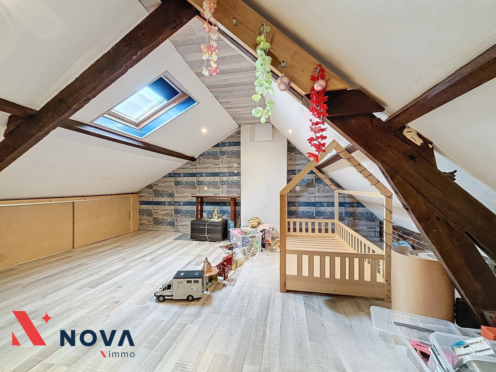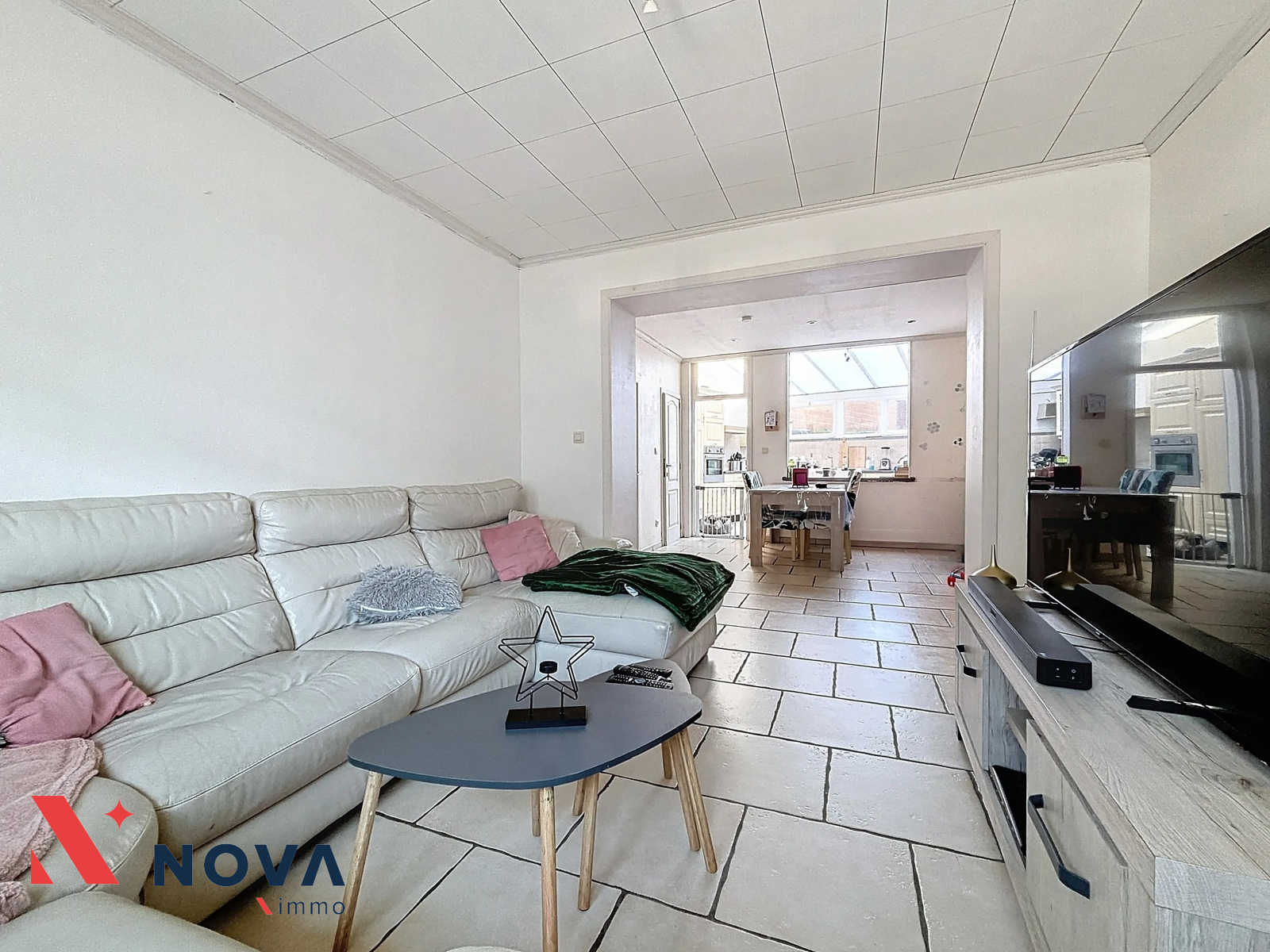 Nova-Immo vous propose cette charmante maison 3 chambres avec jardin, idéalement située. Celle-ci se compose d’un hall d’entrée vers l’agréable séjour de 28 m², spacieuse cuisine semi-ouverte tout équipée de 15 m² et donnant un accès direct au grand jardin. Une buanderie avec WC. Au premier étage, deux belles chambres de 16 m² et 13 m², dont une dispose de sa propre salle de douche. Le dernier étage accueille une magnifique chambre de 20 m² aménagée sous combles. La maison est équipée d’un poêle à pellets (chauffage électrique à l’étage), de châssis double vitrage et de volets. PEB : D – 282 kWh/m²/an. Une maison idéale pour une famille ou un premier achat ! Faire offre à partir de 165.000€. Plus d’infos au 067/85.67.67.