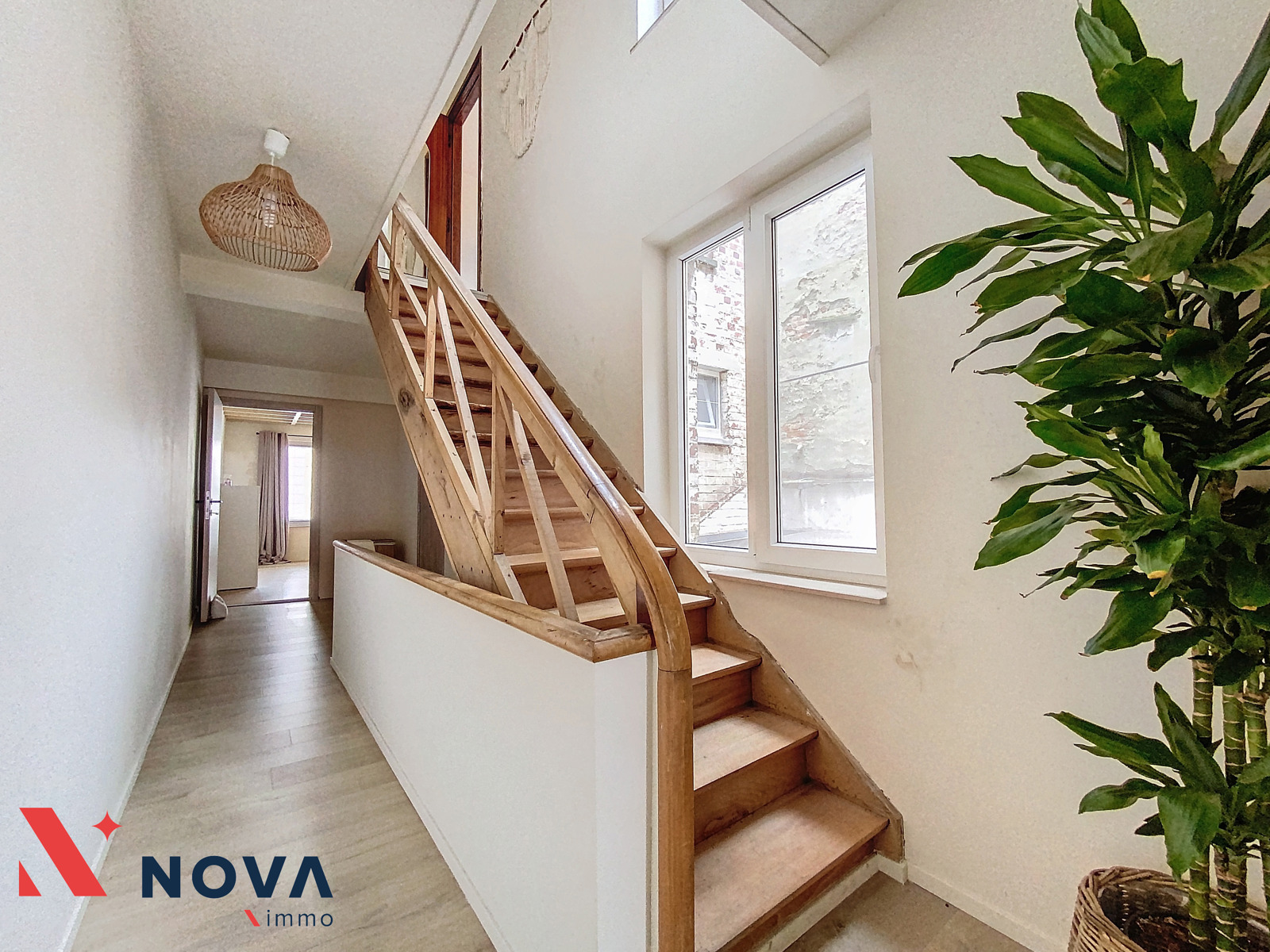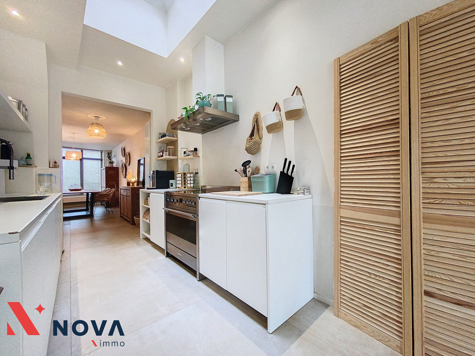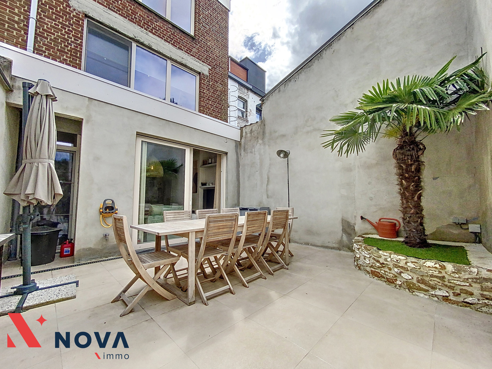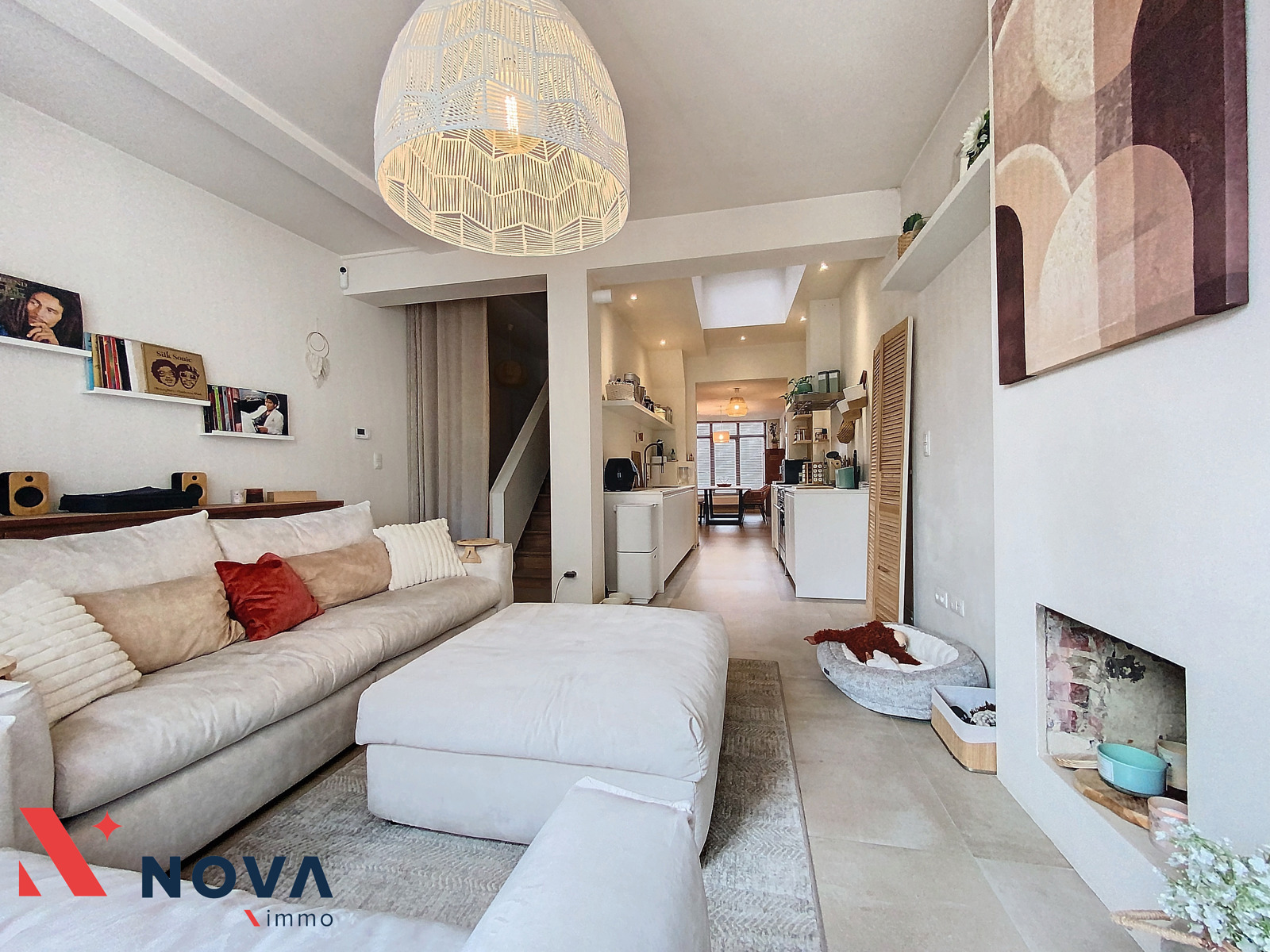 ** SOUS OFFRE ** Visualisez ce bien en vidéo https://youtu.be/O1IibGxg2tM. Nova-immo vous présente cette jolie maison 4 chambres avec jardin entièrement rénovée avec gout ! Un véritable havre de paix situé à quelques minutes à pieds du centre et de la gare. La maison se compose d’une jolie salle à manger de 30 m² avec placards encastrés sur mesure, d’une cuisine moderne toute équipée de 9 m², lumineux salon de 20 m² ouvrant sur la grande terrasse et le jardin. Wc séparé. A l’étage, vaste hall de nuit avec deux belles chambres de 17 et 14m² ainsi qu’une salle de bains équipée d’un meuble évier, wc et baignoire. A l’étage supérieur, un bureau de 6m² et deux autres chambres de 16 et 15m² dont une donnant accès à un espace de rangement au grenier avec escalier fixe. Cave. Cc gaz, double vitrage, électricité conforme. PEB C (185Kwh/m²/an). Plus d’infos et visites au 067/85.67.67.