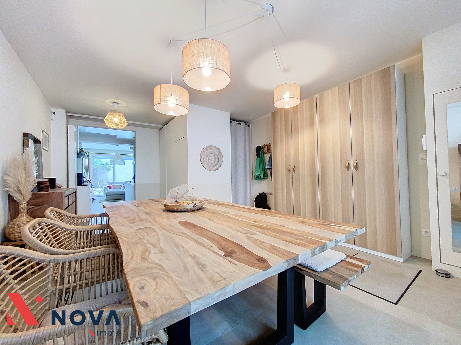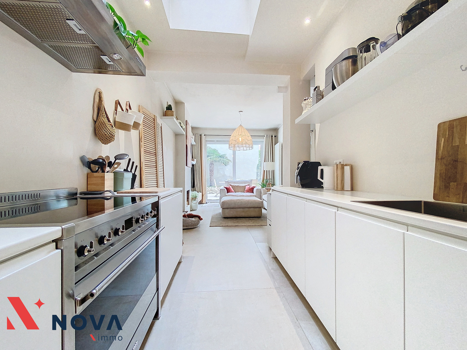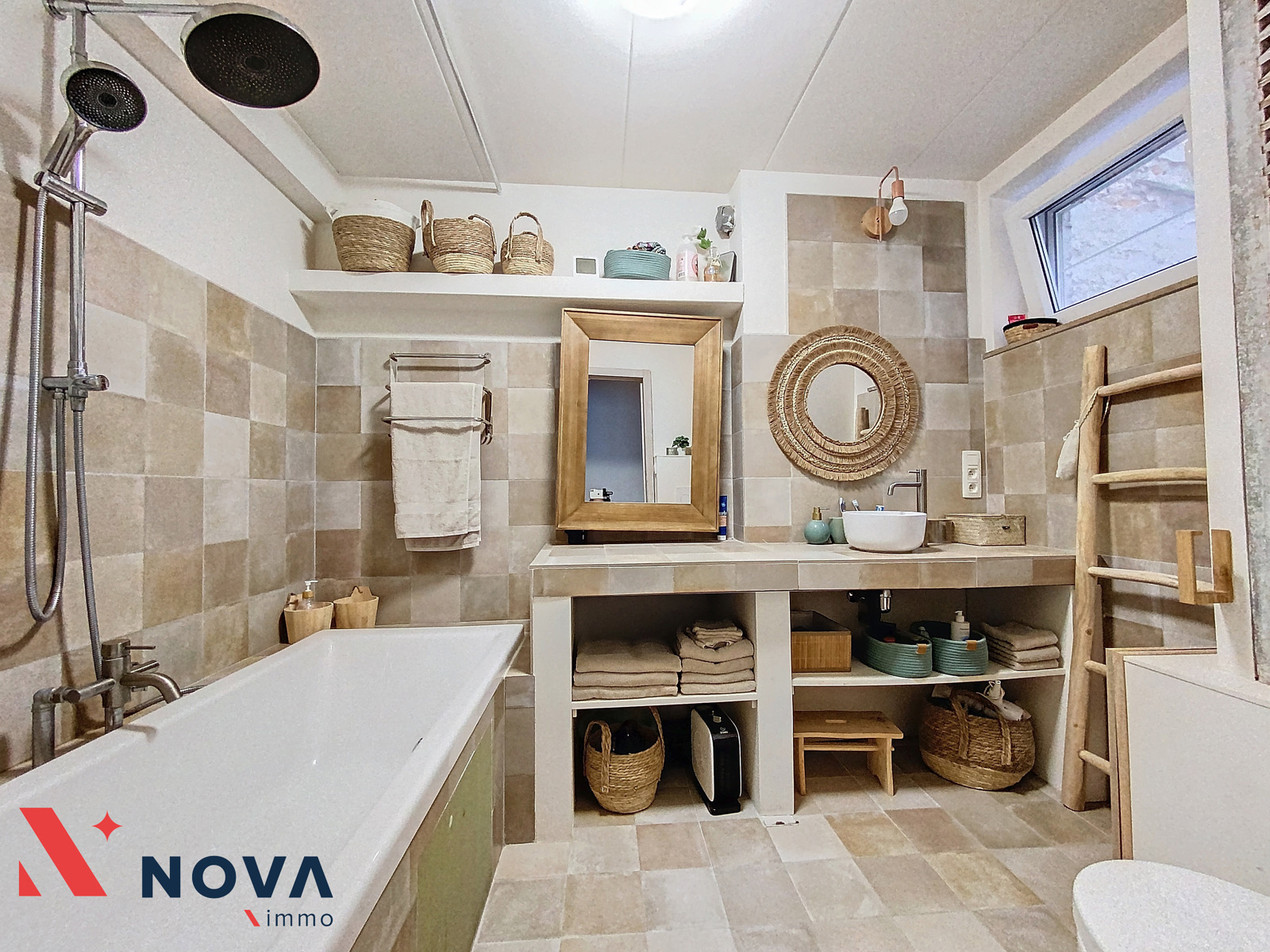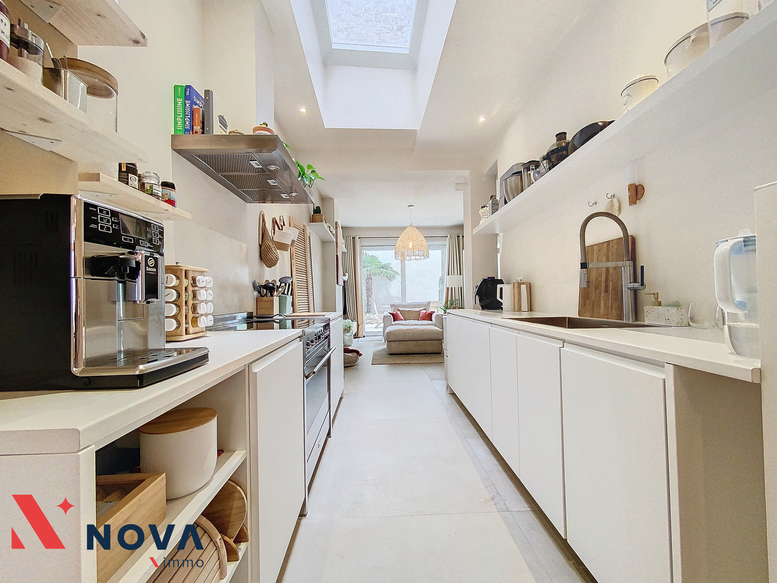 ** SOUS OFFRE ** Visualisez ce bien en vidéo https://youtu.be/O1IibGxg2tM. Nova-immo vous présente cette jolie maison 4 chambres avec jardin entièrement rénovée avec gout ! Un véritable havre de paix situé à quelques minutes à pieds du centre et de la gare. La maison se compose d’une jolie salle à manger de 30 m² avec placards encastrés sur mesure, d’une cuisine moderne toute équipée de 9 m², lumineux salon de 20 m² ouvrant sur la grande terrasse et le jardin. Wc séparé. A l’étage, vaste hall de nuit avec deux belles chambres de 17 et 14m² ainsi qu’une salle de bains équipée d’un meuble évier, wc et baignoire. A l’étage supérieur, un bureau de 6m² et deux autres chambres de 16 et 15m² dont une donnant accès à un espace de rangement au grenier avec escalier fixe. Cave. Cc gaz, double vitrage, électricité conforme. PEB C (185Kwh/m²/an). Plus d’infos et visites au 067/85.67.67.