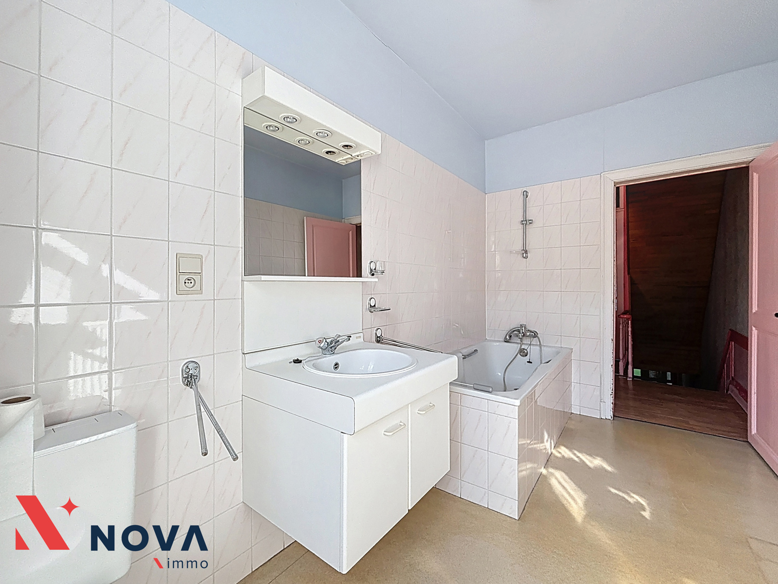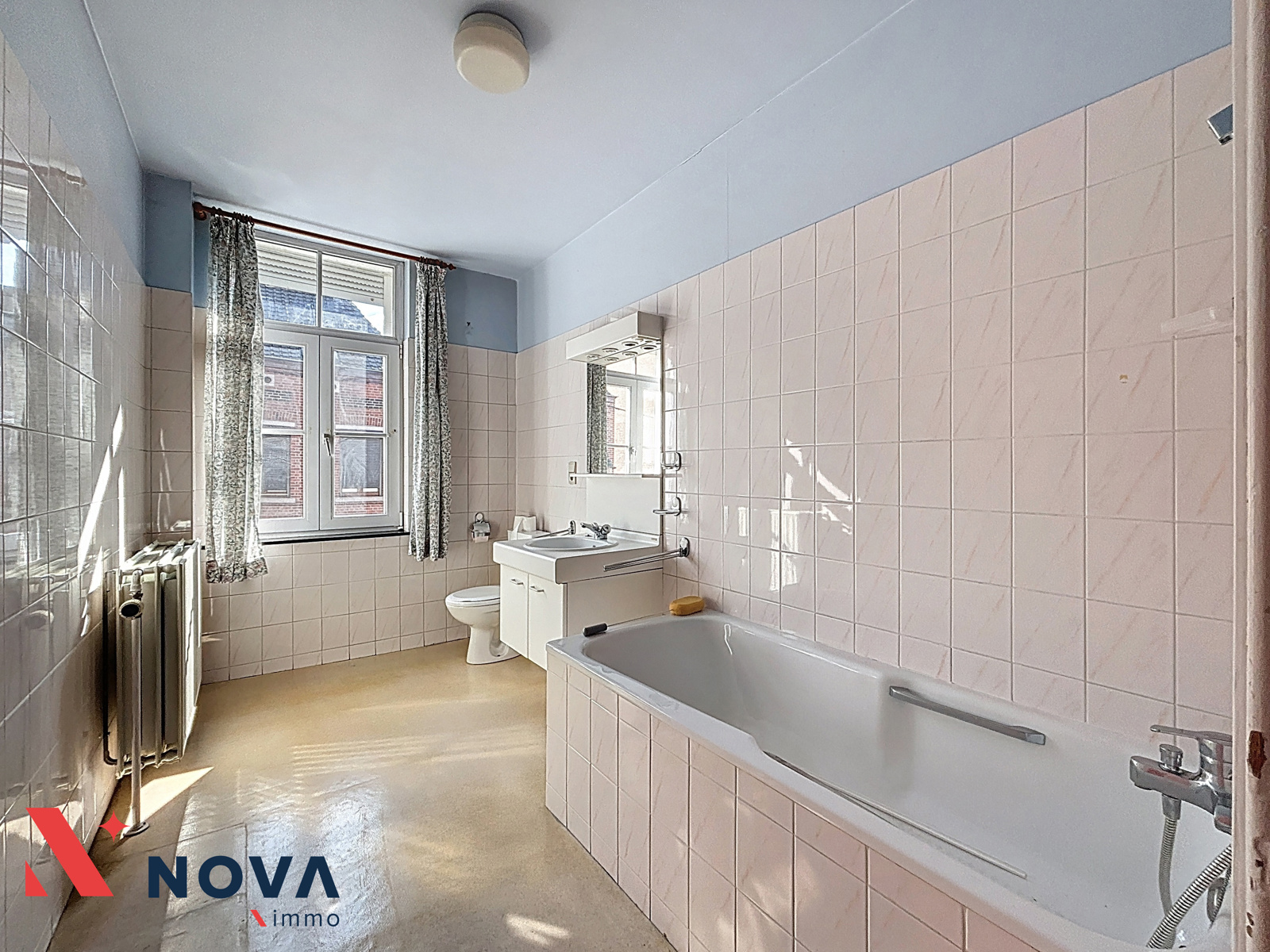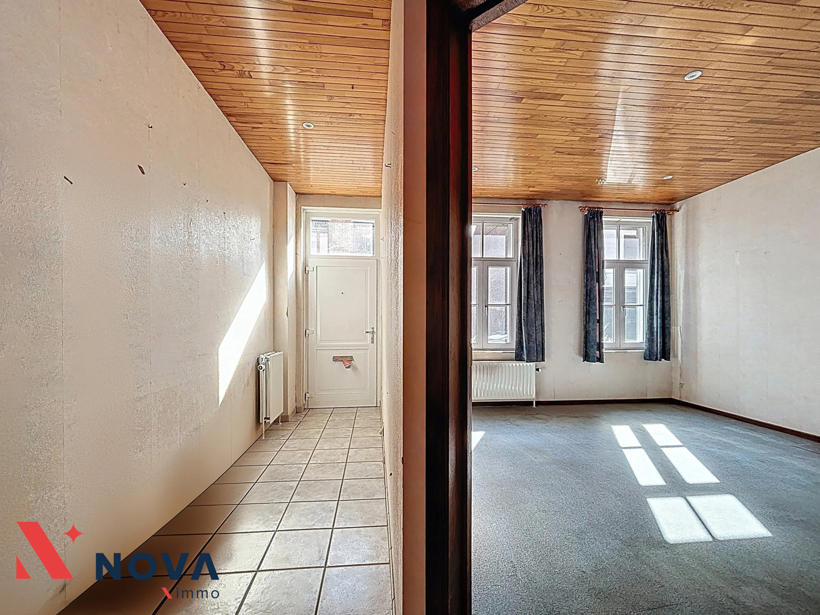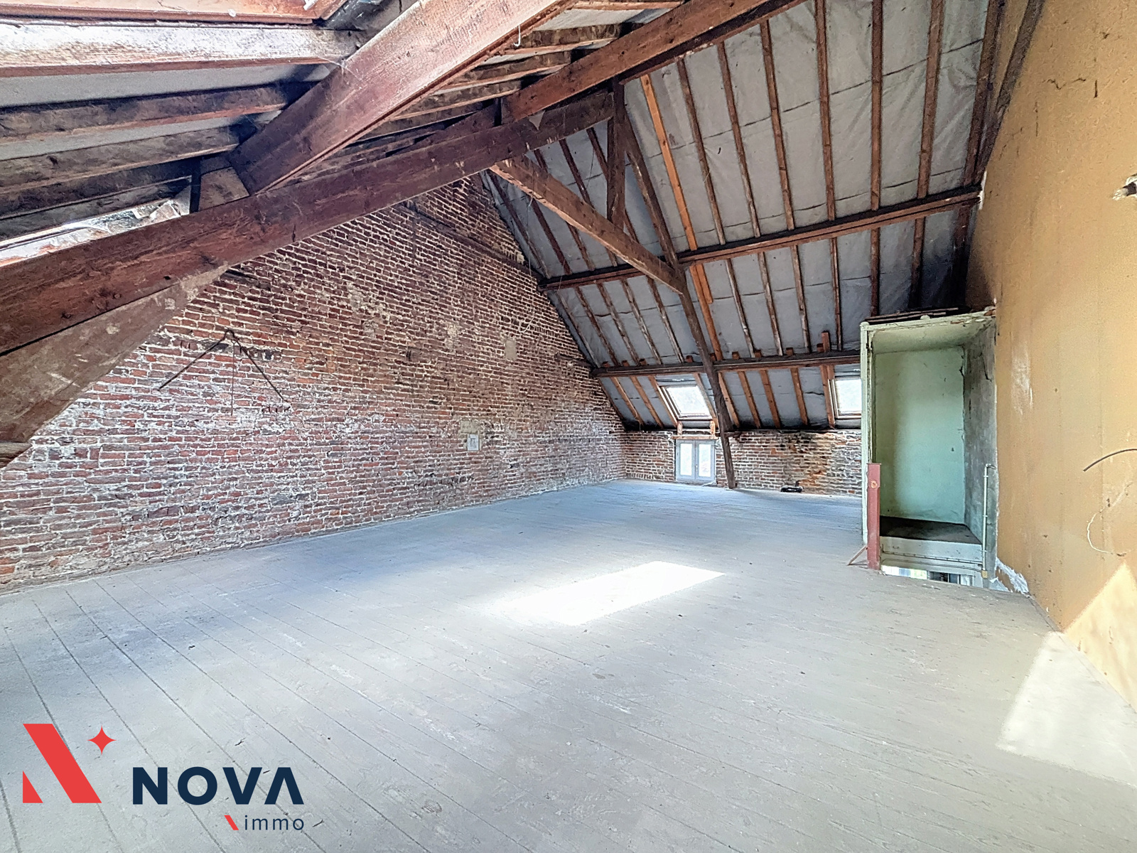 Située au cœur du centre de Rebecq, Nova-Immo vous propose cette spacieuse maison avec jardin (possibilité profession libérale). Elle se compose d’un vaste hall d’entrée, d’un salon de 20 m², salle à manger de 15 m², lumineux séjour arrière de 23 m² avec baie vitrée donnant accès au joli jardin. Cuisine semi-équipée de 13 m², wc séparé et salle de douche. A l’étage, deux belles chambres de 16 et 17 m², une salle de bains équipée d’un meuble évier, wc et baignoire et un bureau de 9 m² vers le grenier facilement aménageable en 3 chambres supplémentaires. Double vitrage Pvc. Chaudière gaz récente. Grande cave. PEB E (418Kwh/m²/an). Faire offre à partir de 250.000€. Plus d’infos et visite au 067/85.67.67.