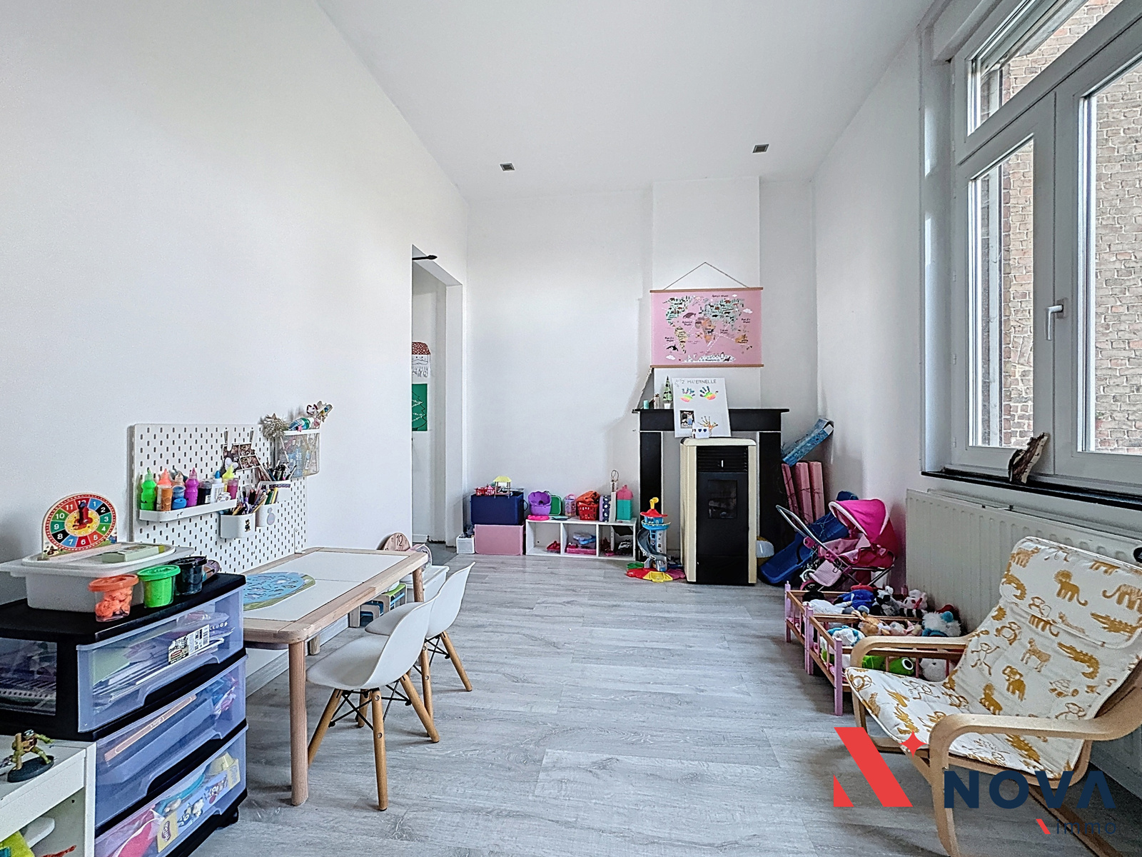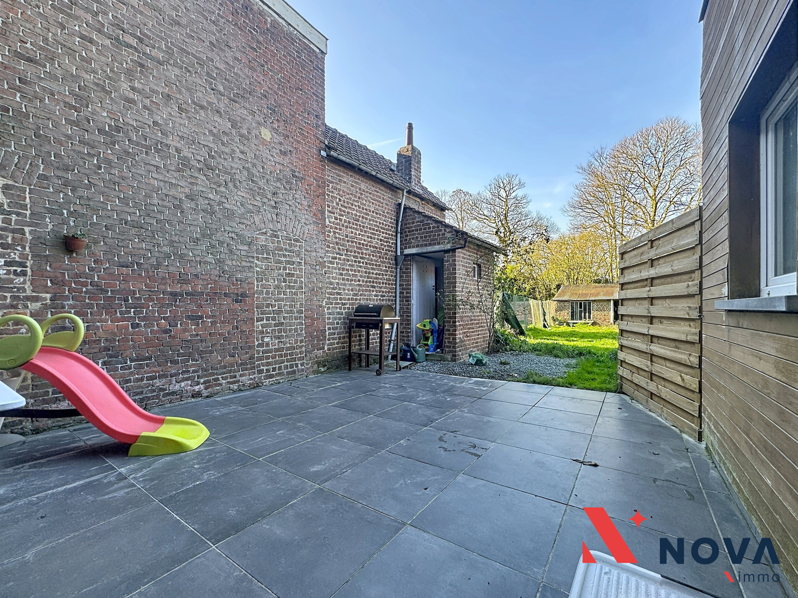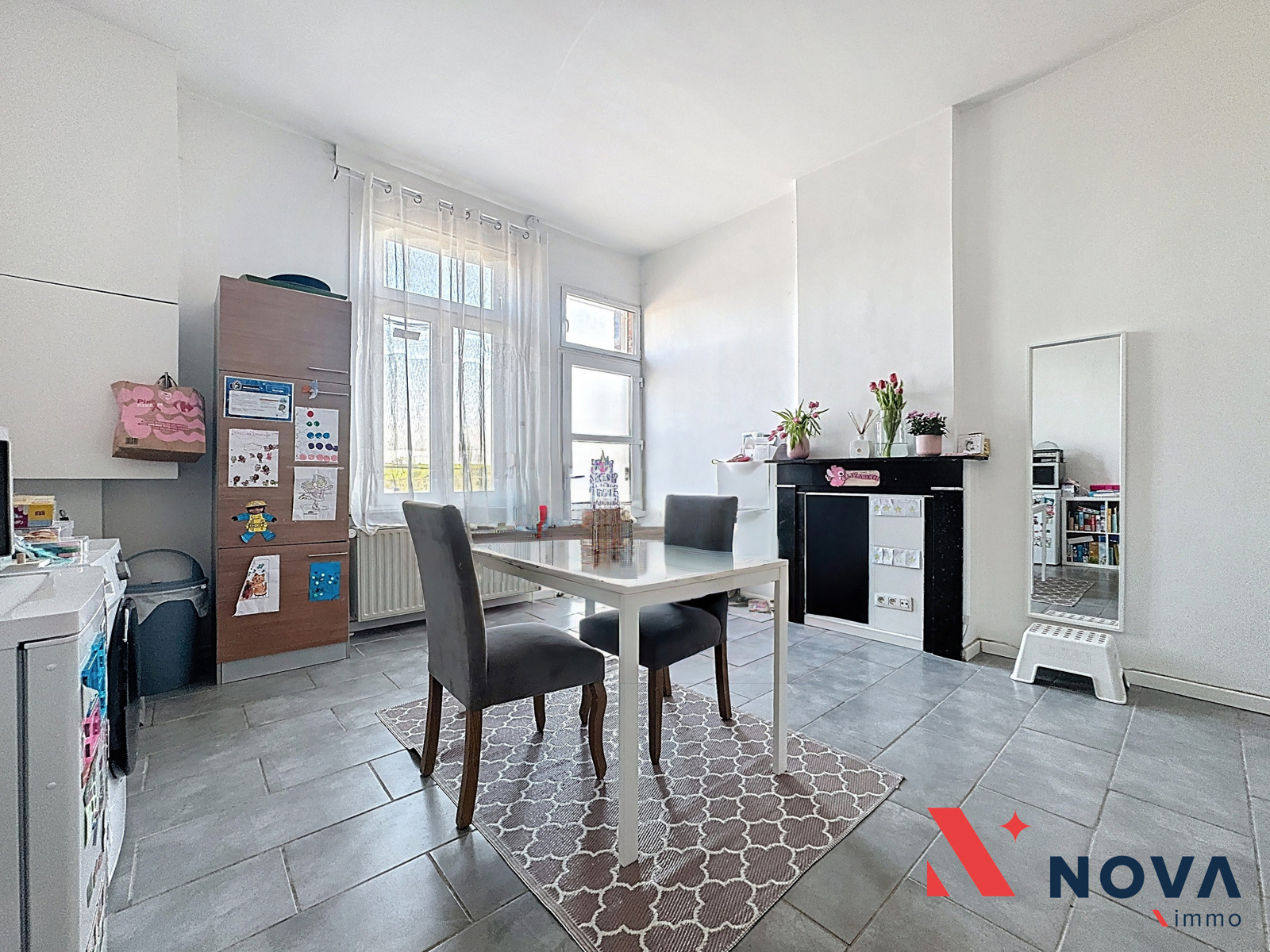 Lumineuse maison proposant 1chambre avec grenier aménageable de 25m², une terrasse et un jardin avec remise. La maison se compose d’une pièce séjour avec cuisine américaine de 20m², un salon de 12m² avec poêle à pellet ouvrant sur la terrasse et le jardin. A l’étage, hall de nuit ouvrant sur une grande chambre de 20m² ainsi qu’une salle de douche à l’Italienne avec wc attenant. Grenier aménageable, cave. Cc mazout. Belle remise de 20m². Parking aisé. Peb F 467kwh/m²/an. Installation électrique conforme. Châssis double vitrage. Faire offre à partir de 180.000€. Information et visites au 067/85.67.67.