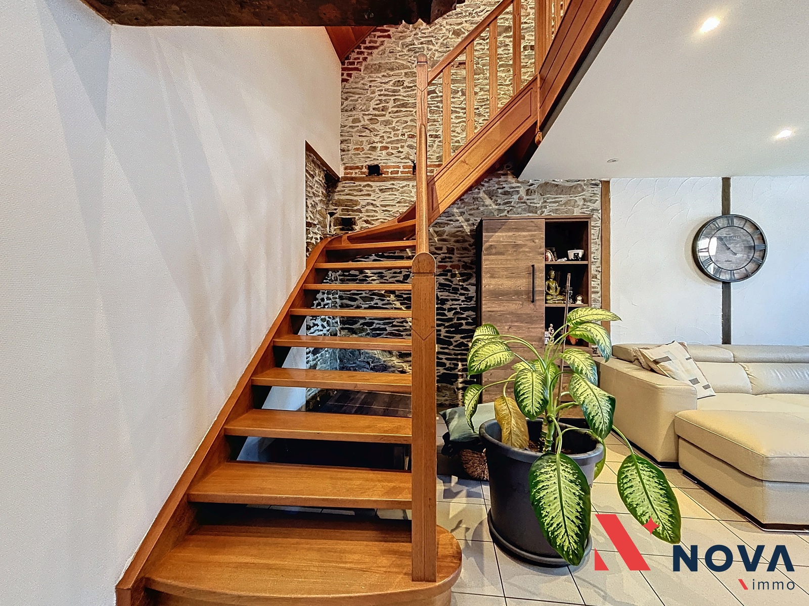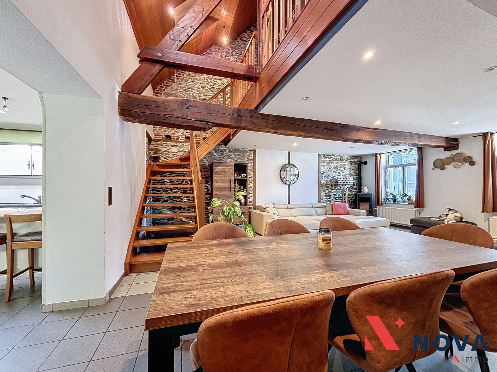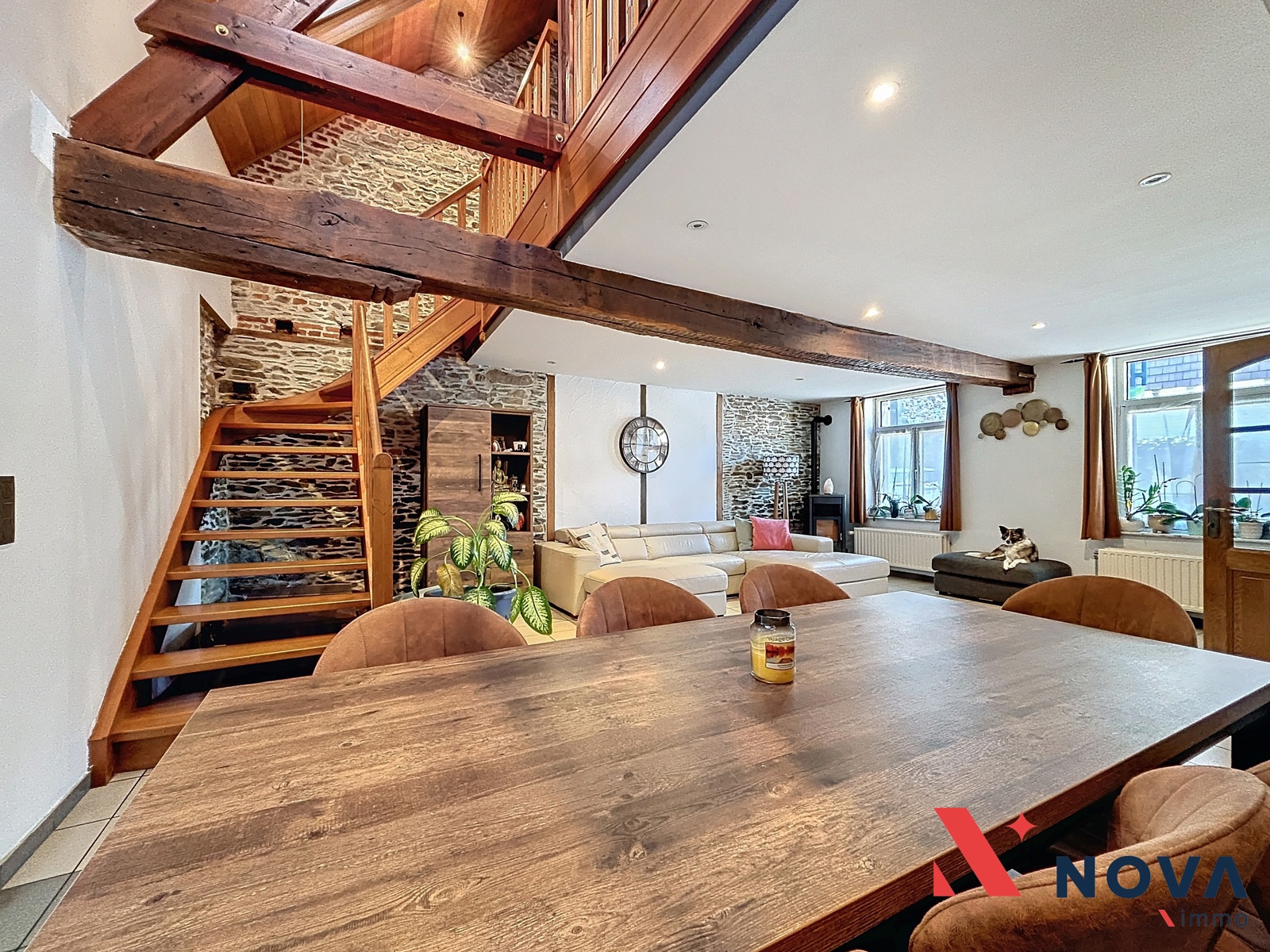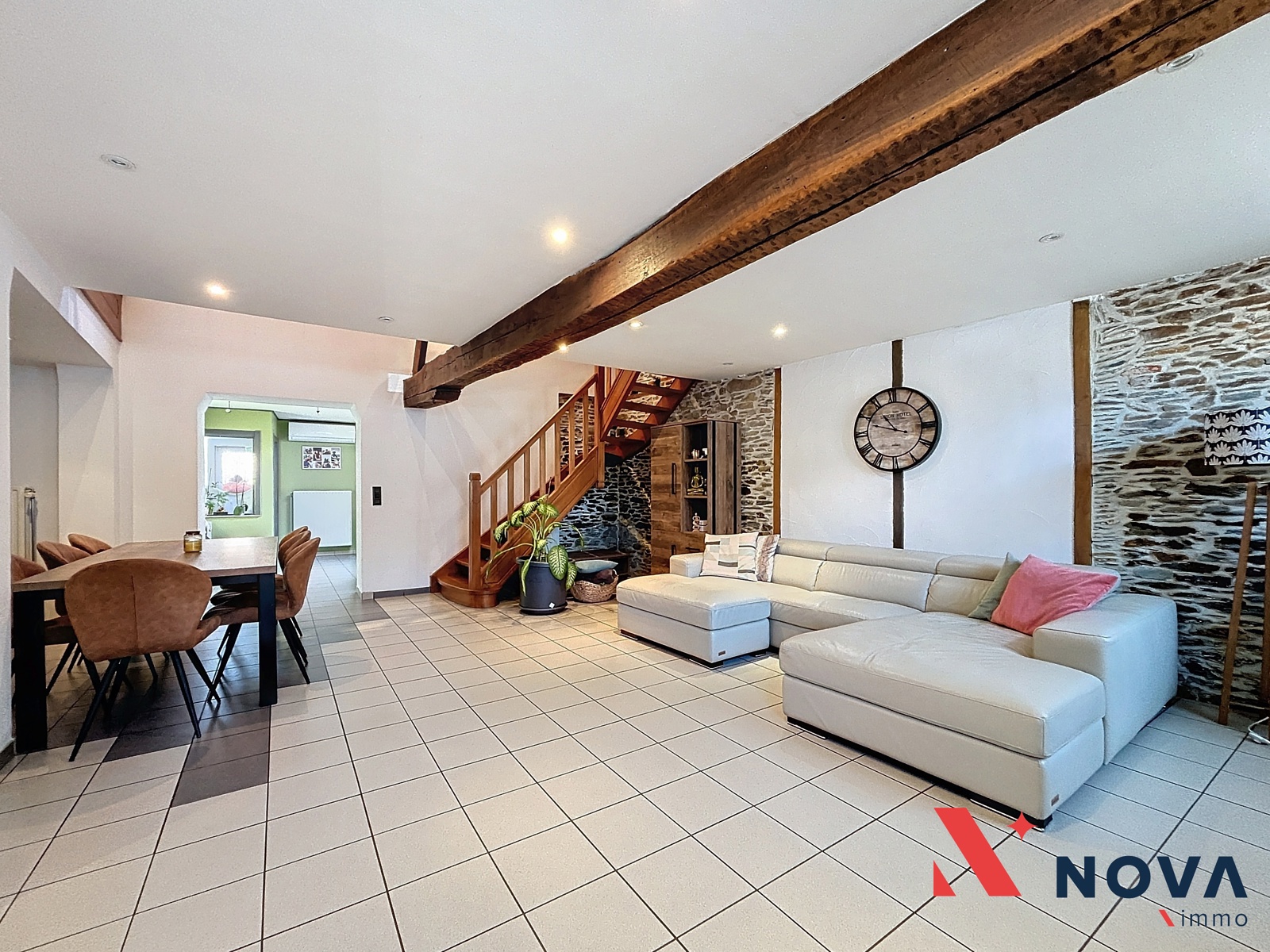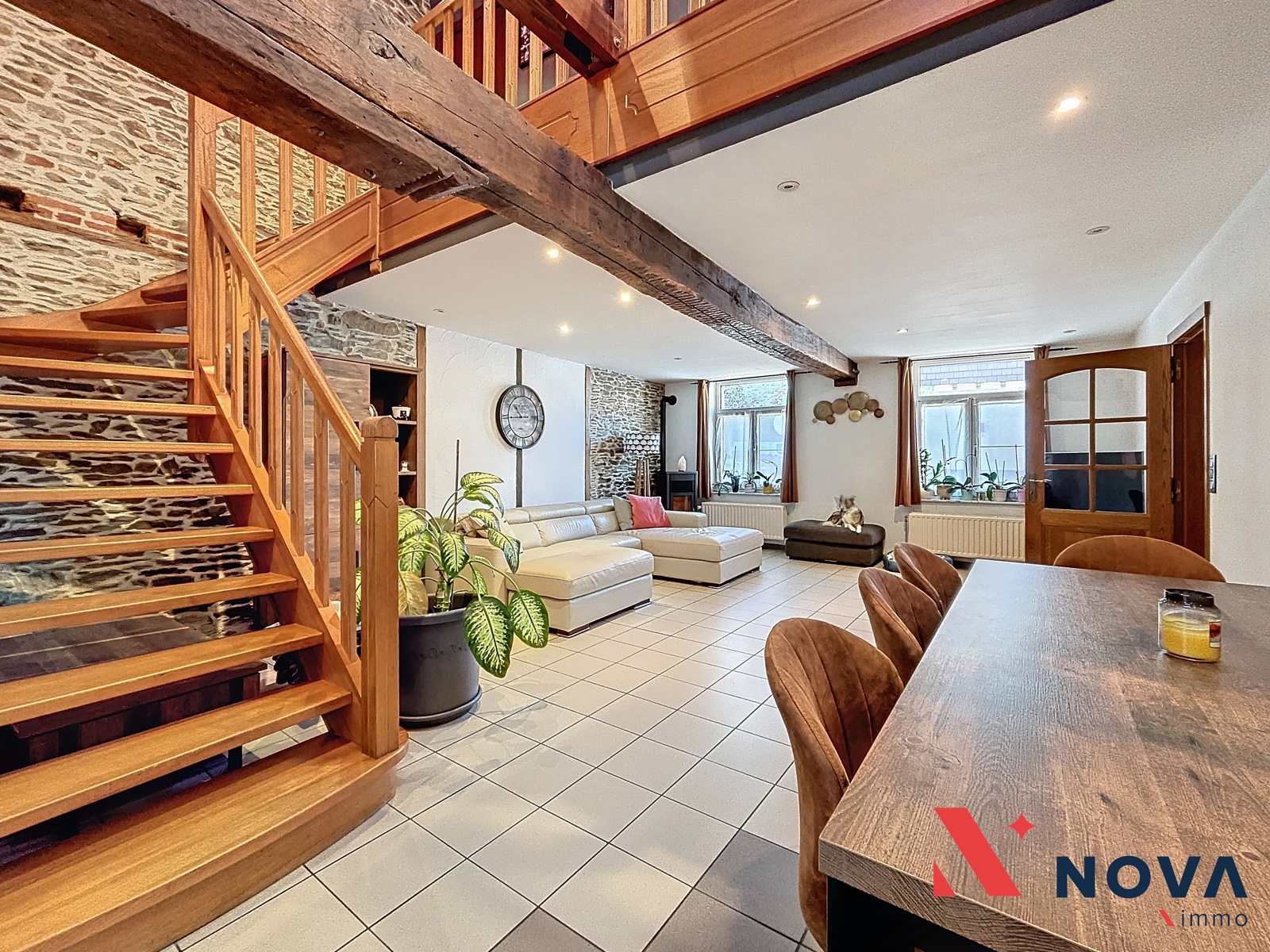 Saintes – Charmante maison villageoise de caractère offrant 4 chambres, un grand garage et un joli extérieur. Située au cœur du village, cette belle maison pleine de cachet vous séduira par ses volumes généreux et ses prestations de qualité. Au rez-de-chaussée, vous découvrirez un hall d’entrée avec wc séparé et accès direct au garage, un spacieux séjour avec feu à pellets de plus de 40 m² ouvrant sur une jolie cuisine équipée et conviviale de 20 m². Un second hall mène vers la grande terrasse ensoleillée et la buanderie. À l’étage, un hall de nuit dessert quatre belles chambres de 19, 14, 14 et 8 m², ainsi qu’une salle de douche récente et une salle de bain supplémentaire équipée d’une baignoire, d’un meuble évier et d’un wc. Panneaux photovoltaïques. PEB : D. Faire offre à partir de 335.000 €. Pour plus d’informations ou organiser une visite : 067/85.67.67