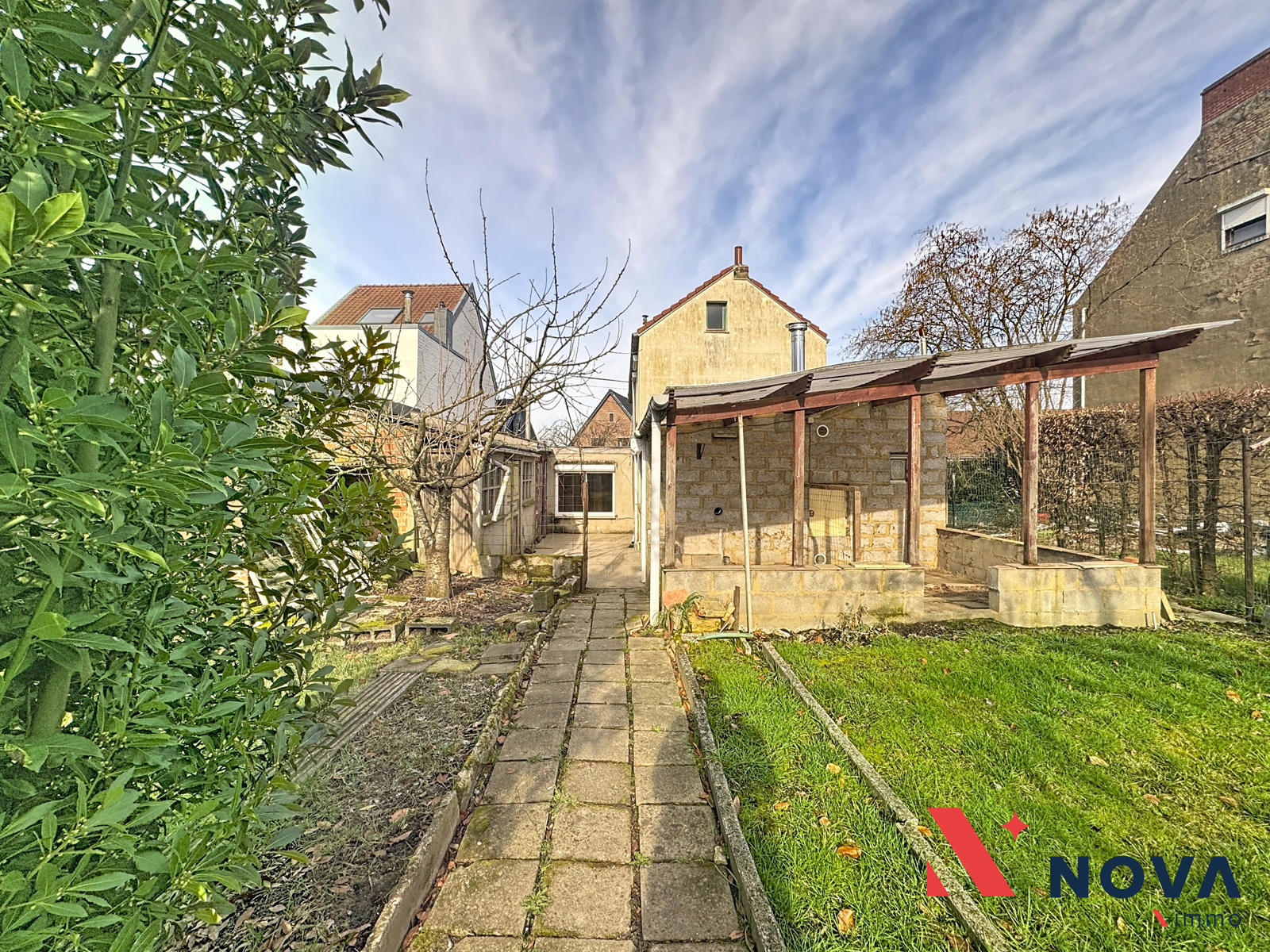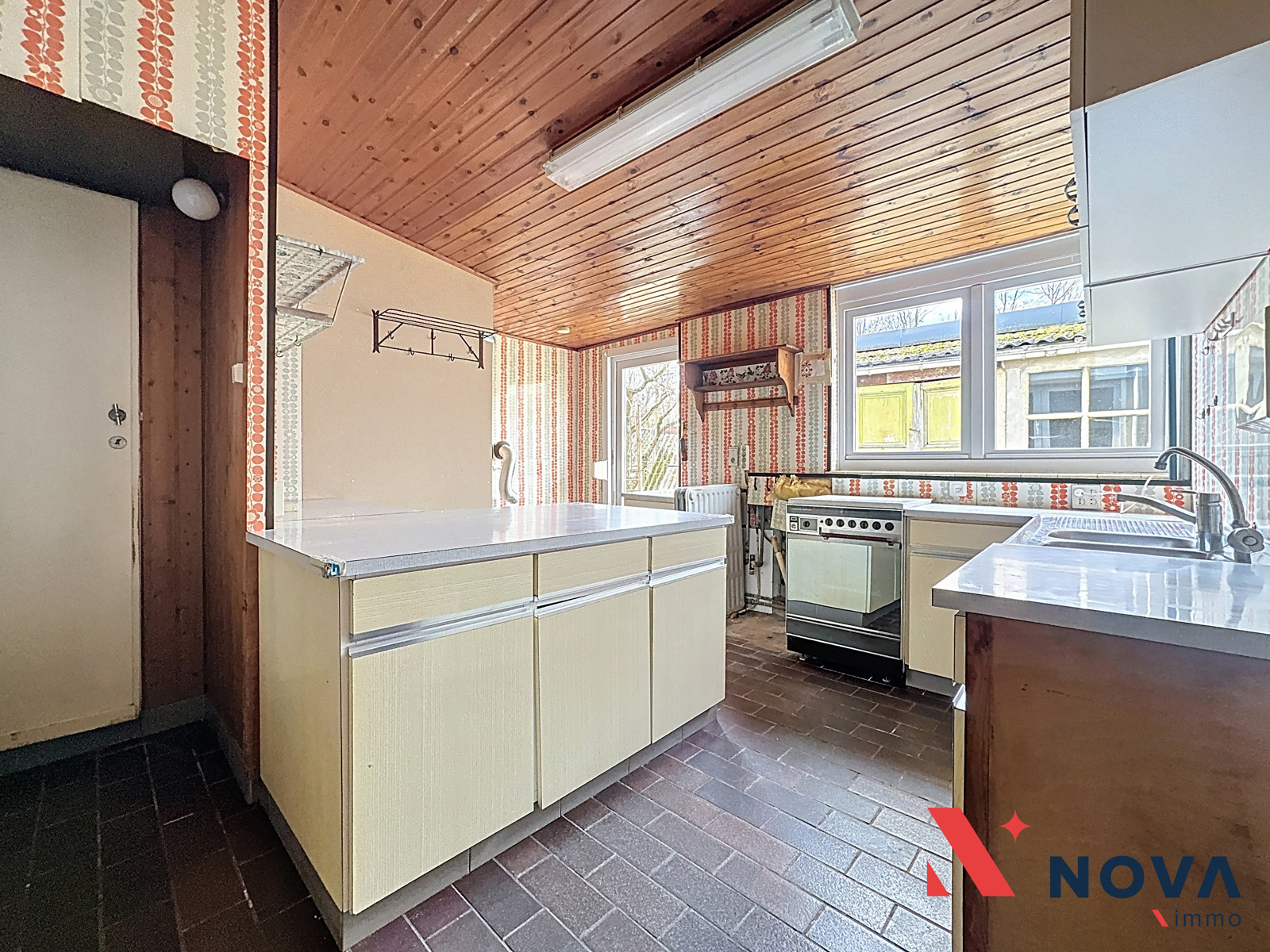 Située dans un beau quartier résidentiel de Clabecq, cette maison 3 façades à rénover offre un beau potentiel et se compose au rez-de-chaussée d’un hall d’entrée ouvrant sur un séjour lumineux de 24 m², une salle à manger de 14 m² et une cuisine donnant accès à la terrasse et au magnifique jardin orienté plein sud. Un bureau complète également le rez-de-chaussée. À l’étage, le hall de nuit dessert deux chambres de 13 m² et 14 m² ainsi qu’une salle de bain. La maison dispose d’un grenier non aménageable, d’une cave et d’un vaste garage avec atelier de 45 m², idéal pour un indépendant ou un passionné de bricolage. Chauffage central au gaz avec chaudière récente. PEB G – 621 kWh/m²/an. Faire offre à partir de 210.000€. Informations et visites au 067/85.67.67.