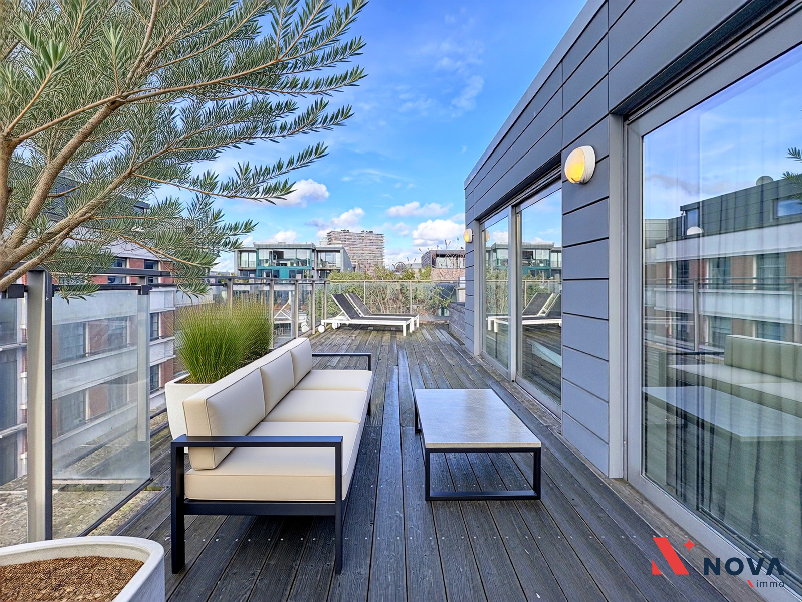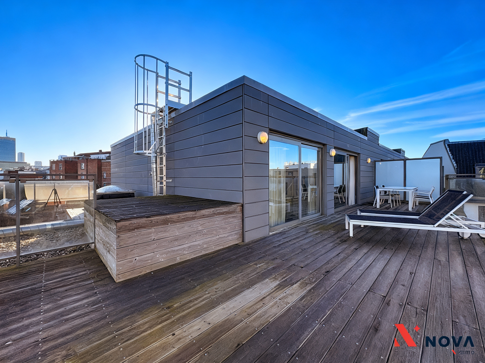 Magnifique penthouse de ±102 m², situé au dernier étage d’une copropriété contemporaine construite en 2012 et signée par l’architecte Marc Corbiau, bénéficiant d’une localisation privilégiée, à proximité immédiate du quartier Dansaert, de la place Sainte-Catherine et de la Grand-Place.