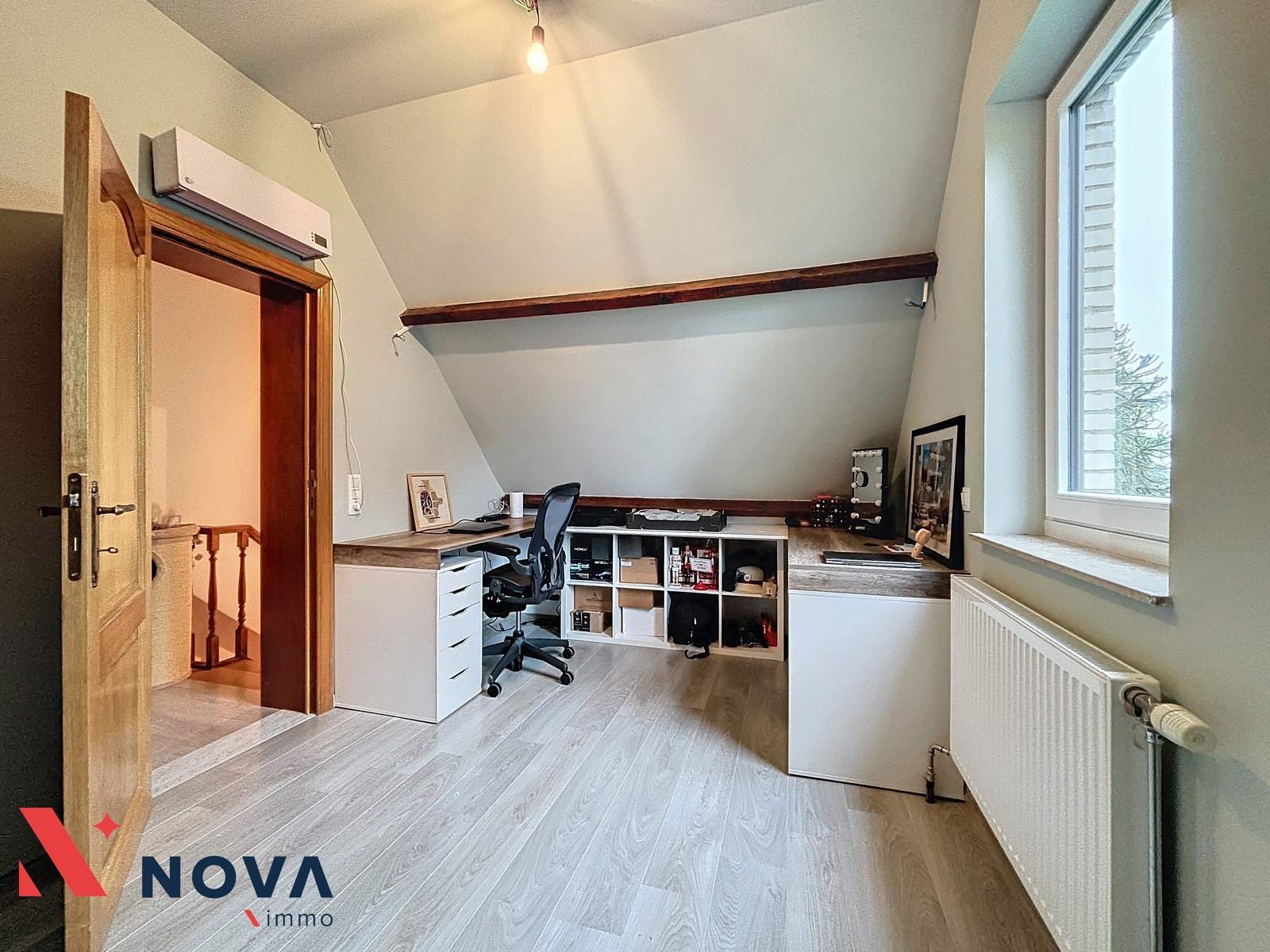 Hennuyères – Située dans un quartier résidentiel prisé, Nova-Immo vous propose cette superbe villa 4 chambres, avec jardin et garage. Au rez, la maison se compose d’un vaste hall d’entrée avec WC séparé et vestiaire encastré ouvrant sur le lumineux séjour de 35 m², avec cassette à bois. La cuisine, entièrement équipée, bénéficie d’une belle luminosité. Un grand garage, accessible directement depuis la maison, complète ce niveau. A l’étage, le hall de nuit dessert 4 belles chambres de 13, 10, 10 et 8m², ainsi qu’un bureau ou une cinquième chambre de 7 m². La salle de bain, spacieuse et fonctionnelle, comprend une baignoire, une douche, et un meuble double vasque. Atouts énergétiques : Cette maison est équipée de châssis en double vitrage récents, une chaudière moderne, un boiler thermodynamique, et des panneaux photovoltaïques. Elle affiche un excellent PEB B ! Extérieur : À l’avant, un espace parking pratique, et à l’arrière, un charmant jardin et une terrasse. Installation électrique conforme. 420.000€ ou meilleure offre. Contactez nous pour organiser une visite au 067/85.67.67.
