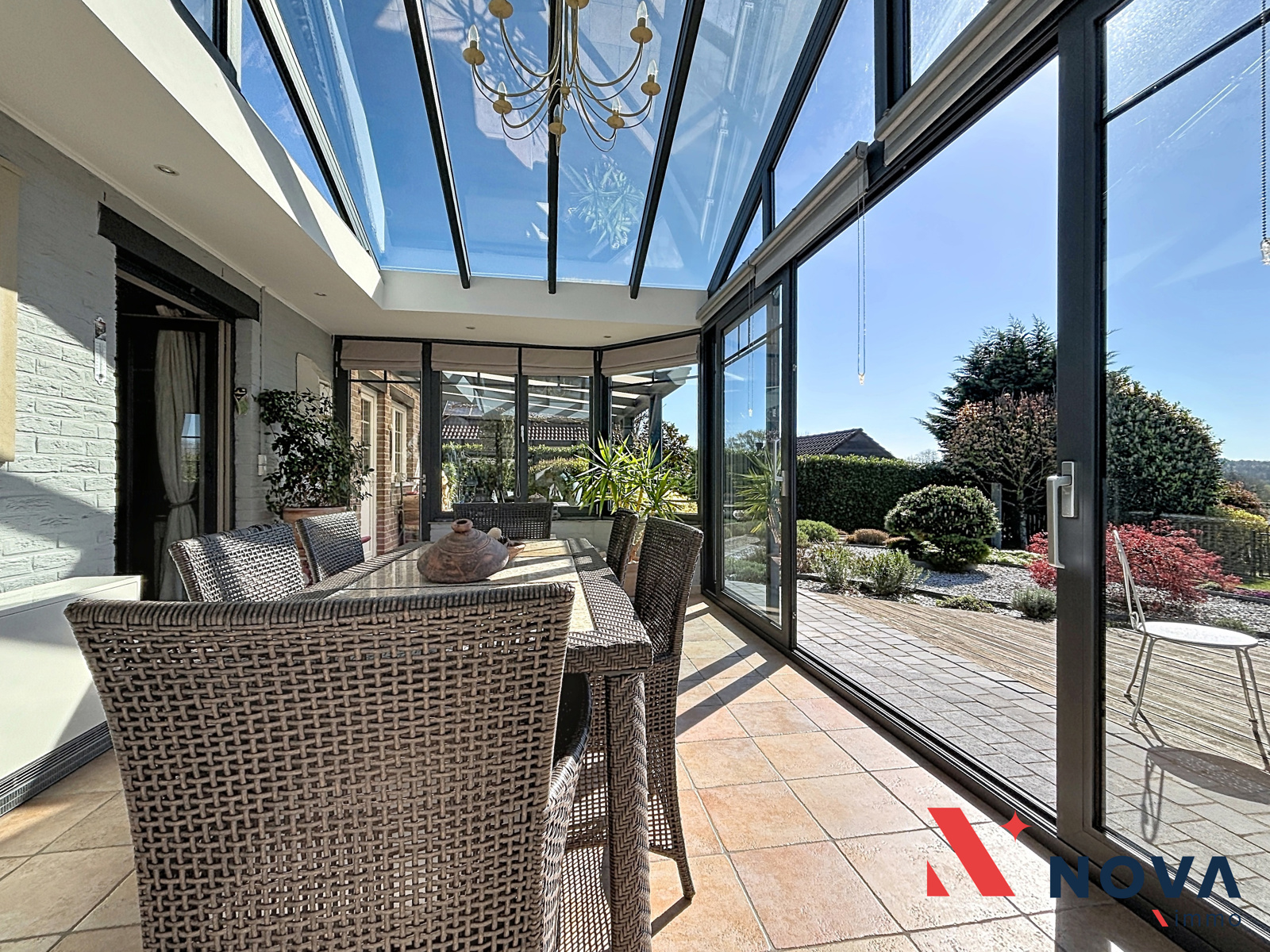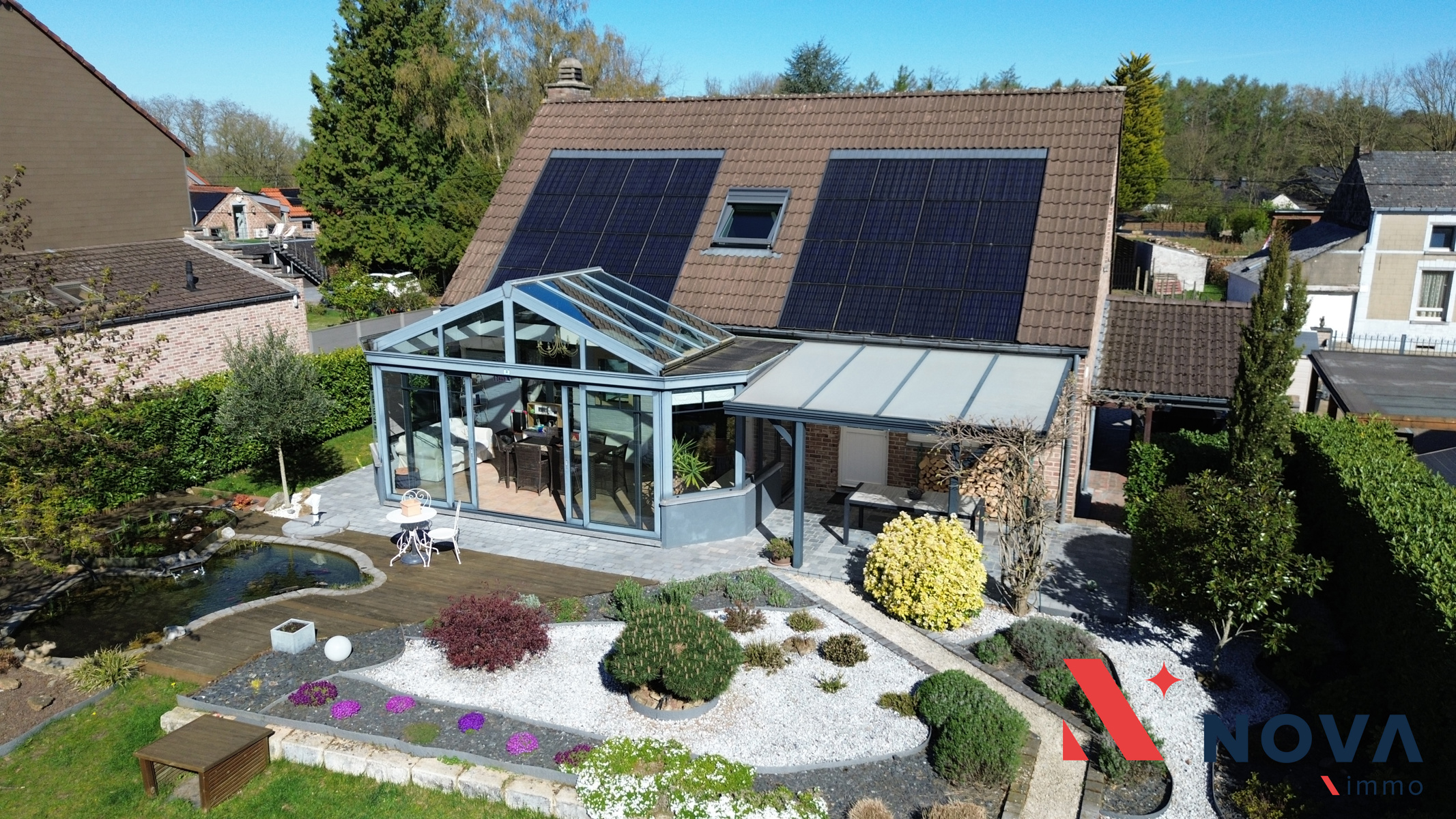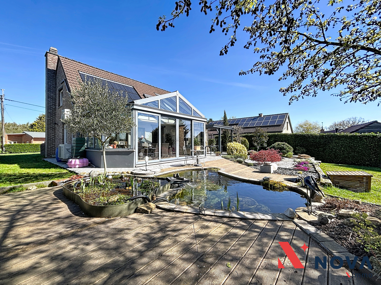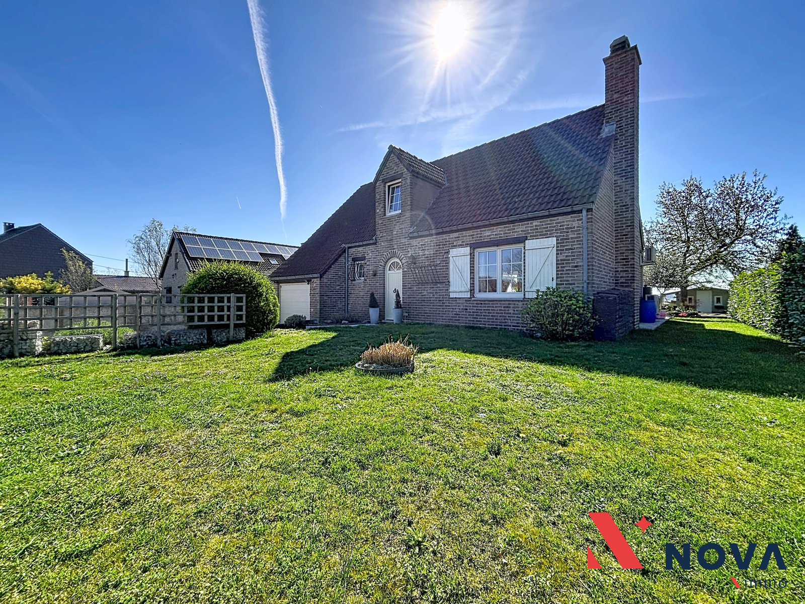 Située dans un environnement exceptionnel, verdoyant et paisible, sur les hauteurs prisées d’Oisquercq, cette belle villa vous séduira par son cadre de vie privilégié et ses prestations de qualité. Dès l’entrée, vous découvrez un hall accueillant avec WC invités, menant également vers un garage avec espace buanderie. Le séjour, lumineux ouvrant sur superbe véranda baignée de lumière, offrant une vue imprenable sur le jardin orienté plein Sud et convivial, un agréable coin salon avec une cassette à bois et la cuisine équipée. À l’étage, la maison propose trois belles chambres ainsi qu’une salle de bain. À l’extérieur, vous profiterez d’un magnifique jardin clôturé, soigneusement aménagé, comprenant un étang et offrant une vue dégagée sur la campagne environnante, un véritable havre de paix. Un chalet de jardin complète cet espace extérieur. La maison est équipée de 32 panneaux photovoltaïques(PEB D – 301 kWh/m²/an), ainsi que de châssis en double vitrage. Faire offre à partir de 450.000€. Informations et visites au 067/85.67.67.