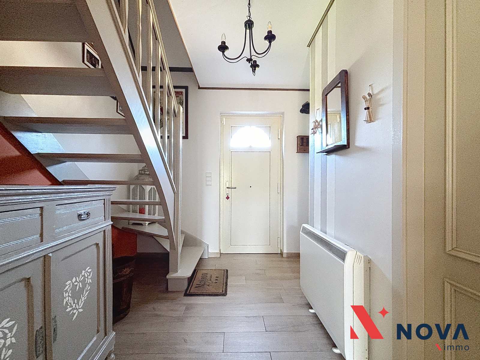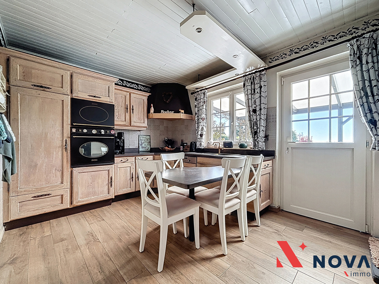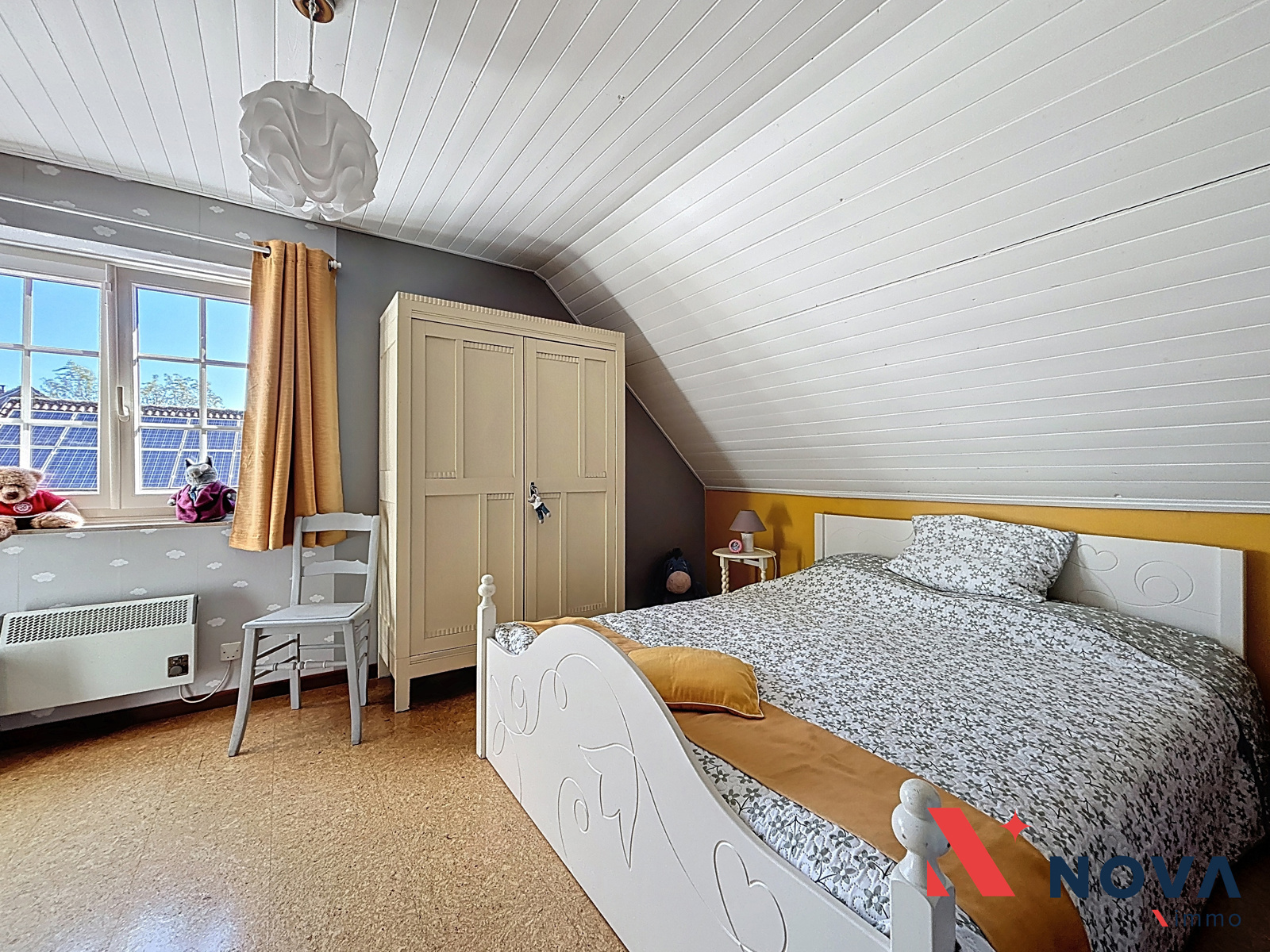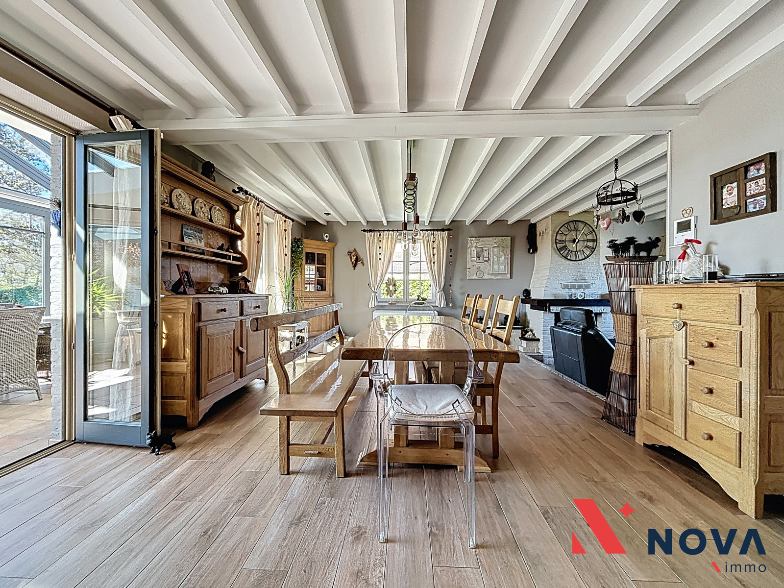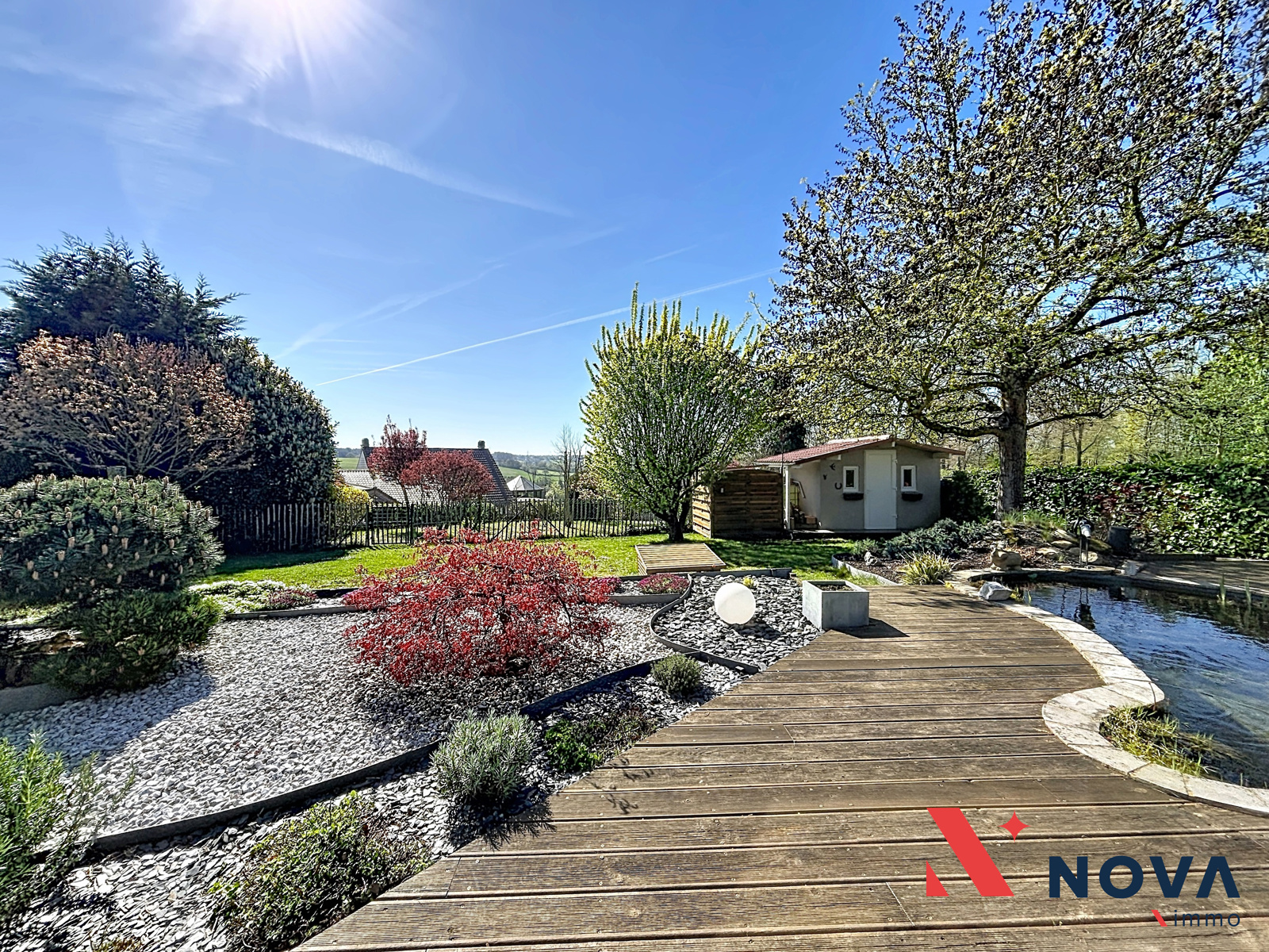 Située dans un environnement exceptionnel, verdoyant et paisible, sur les hauteurs prisées d’Oisquercq, cette belle villa vous séduira par son cadre de vie privilégié et ses prestations de qualité. Dès l’entrée, vous découvrez un hall accueillant avec WC invités, menant également vers un garage avec espace buanderie. Le séjour, lumineux ouvrant sur superbe véranda baignée de lumière, offrant une vue imprenable sur le jardin orienté plein Sud et convivial, un agréable coin salon avec une cassette à bois et la cuisine équipée. À l’étage, la maison propose trois belles chambres ainsi qu’une salle de bain. À l’extérieur, vous profiterez d’un magnifique jardin clôturé, soigneusement aménagé, comprenant un étang et offrant une vue dégagée sur la campagne environnante, un véritable havre de paix. Un chalet de jardin complète cet espace extérieur. La maison est équipée de 32 panneaux photovoltaïques(PEB D – 301 kWh/m²/an), ainsi que de châssis en double vitrage. Faire offre à partir de 450.000€. Informations et visites au 067/85.67.67.