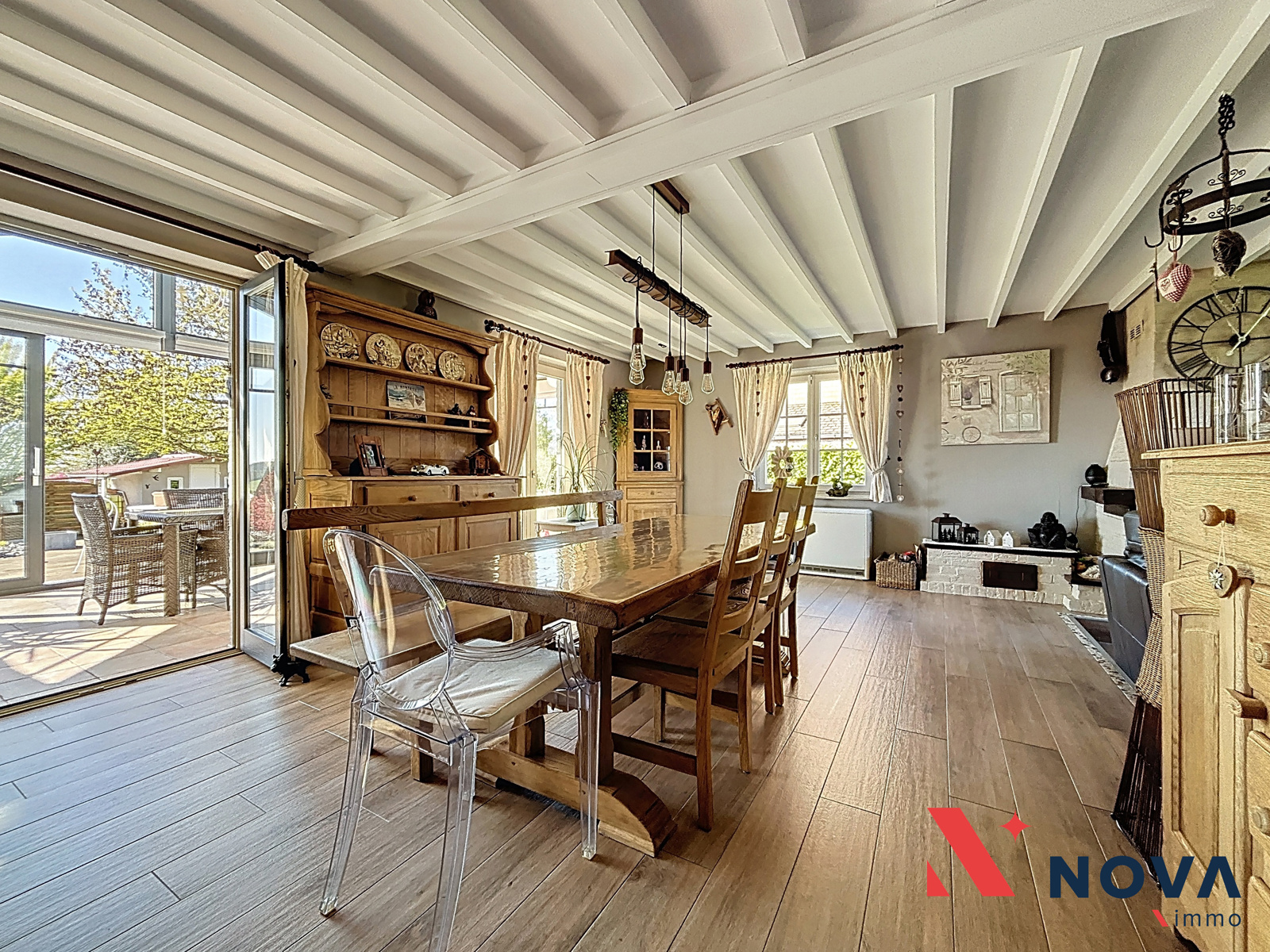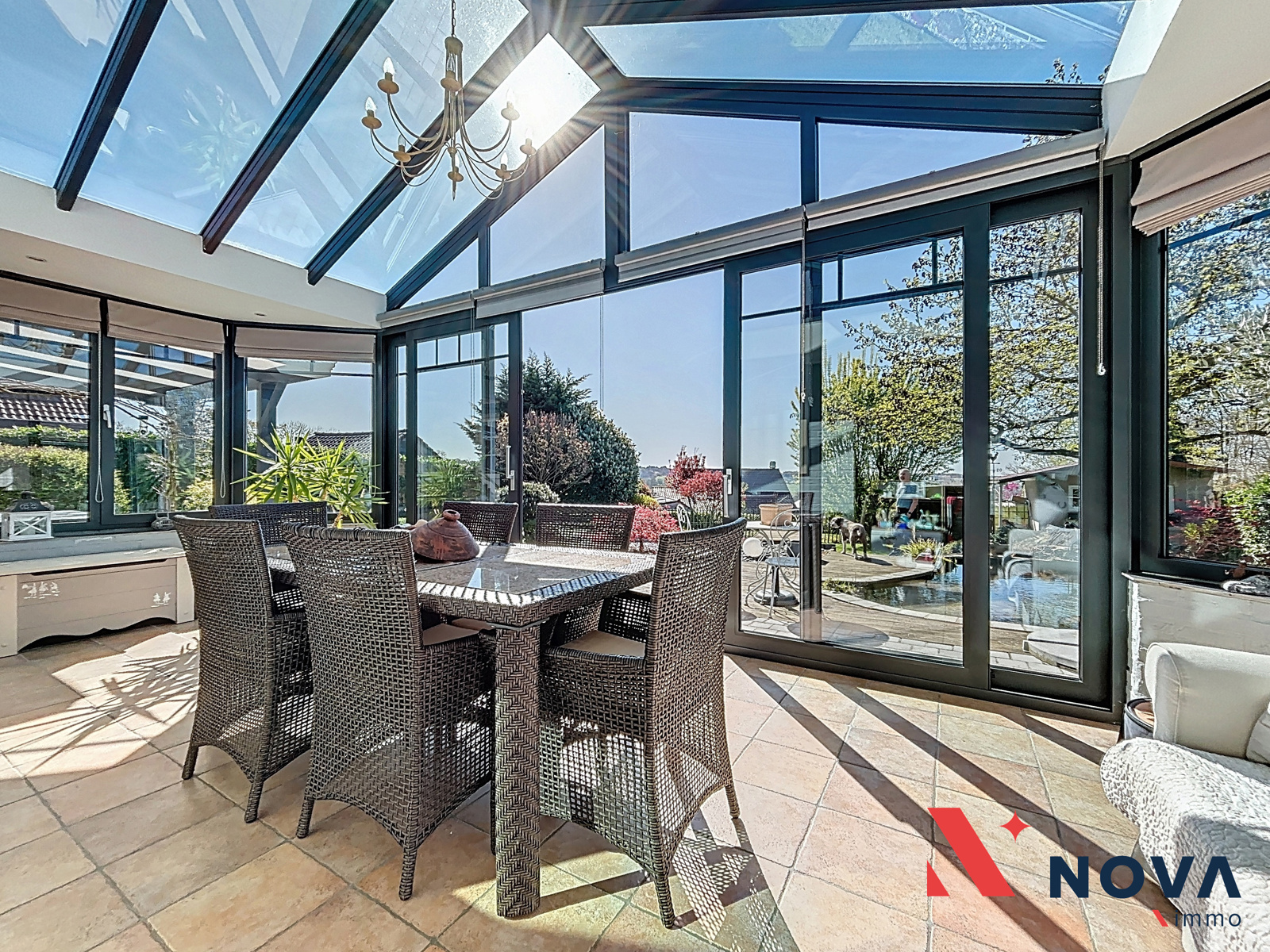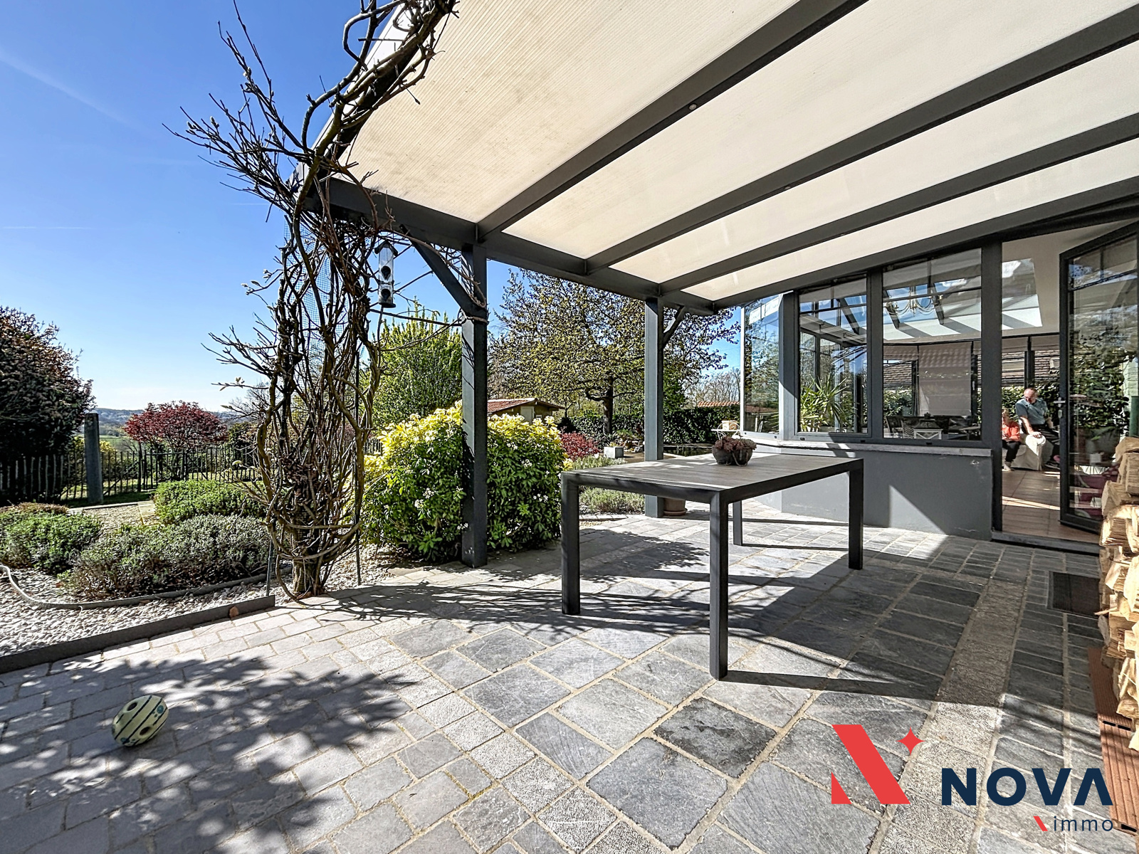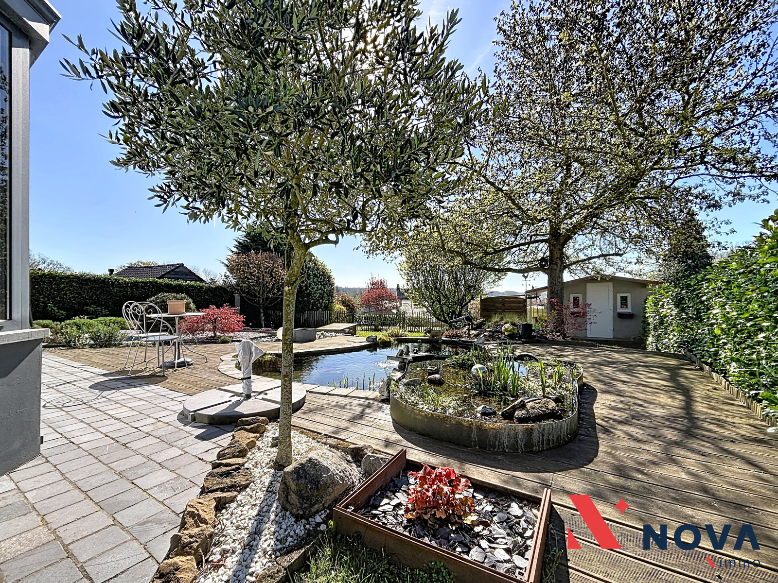 Située dans un environnement exceptionnel, verdoyant et paisible, sur les hauteurs prisées d’Oisquercq, cette belle villa vous séduira par son cadre de vie privilégié et ses prestations de qualité. Dès l’entrée, vous découvrez un hall accueillant avec WC invités, menant également vers un garage avec espace buanderie. Le séjour, lumineux ouvrant sur superbe véranda baignée de lumière, offrant une vue imprenable sur le jardin orienté plein Sud et convivial, un agréable coin salon avec une cassette à bois et la cuisine équipée. À l’étage, la maison propose trois belles chambres ainsi qu’une salle de bain. À l’extérieur, vous profiterez d’un magnifique jardin clôturé, soigneusement aménagé, comprenant un étang et offrant une vue dégagée sur la campagne environnante, un véritable havre de paix. Un chalet de jardin complète cet espace extérieur. La maison est équipée de 32 panneaux photovoltaïques(PEB D – 301 kWh/m²/an), ainsi que de châssis en double vitrage. Faire offre à partir de 450.000€. Informations et visites au 067/85.67.67.
